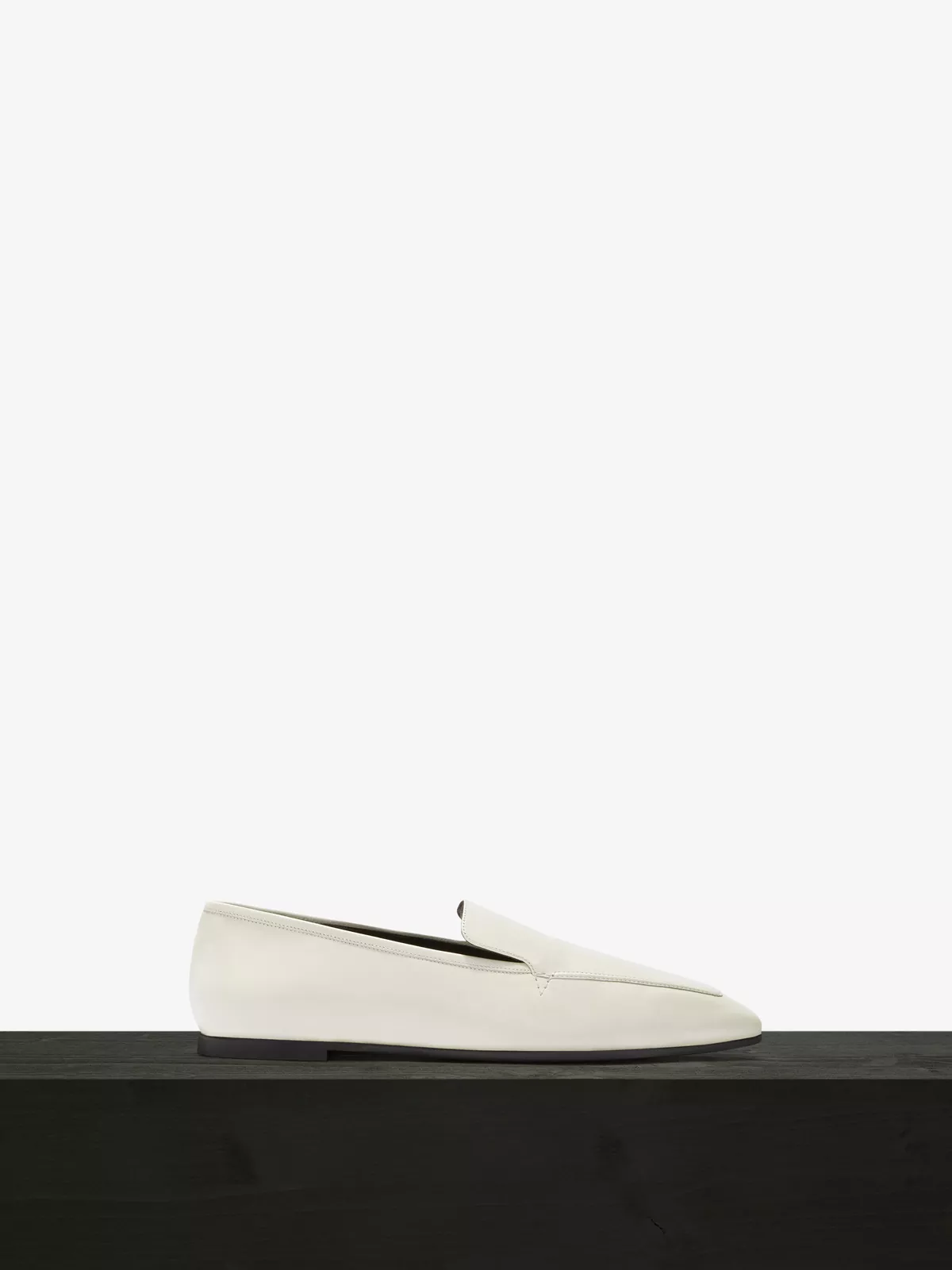 Handmade from a soft kidskin leather, these minimal slip-on shoes have modern topstitching details, a softly pointed toe and a simple shape for everyday wear.