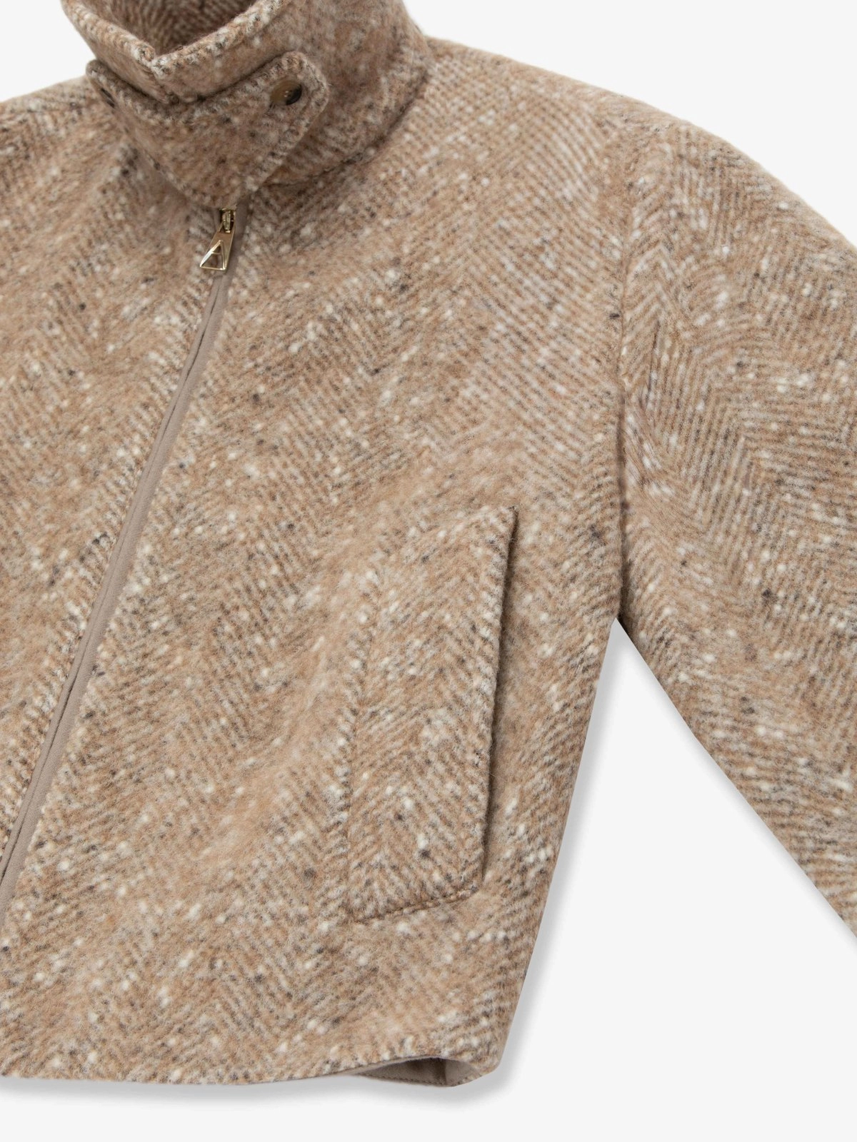 HARRINGBONE BABY ALPACA WOOL BLEND BLOUSON IN MILK COGNAC MELANGE「3 PCS LIMITED」