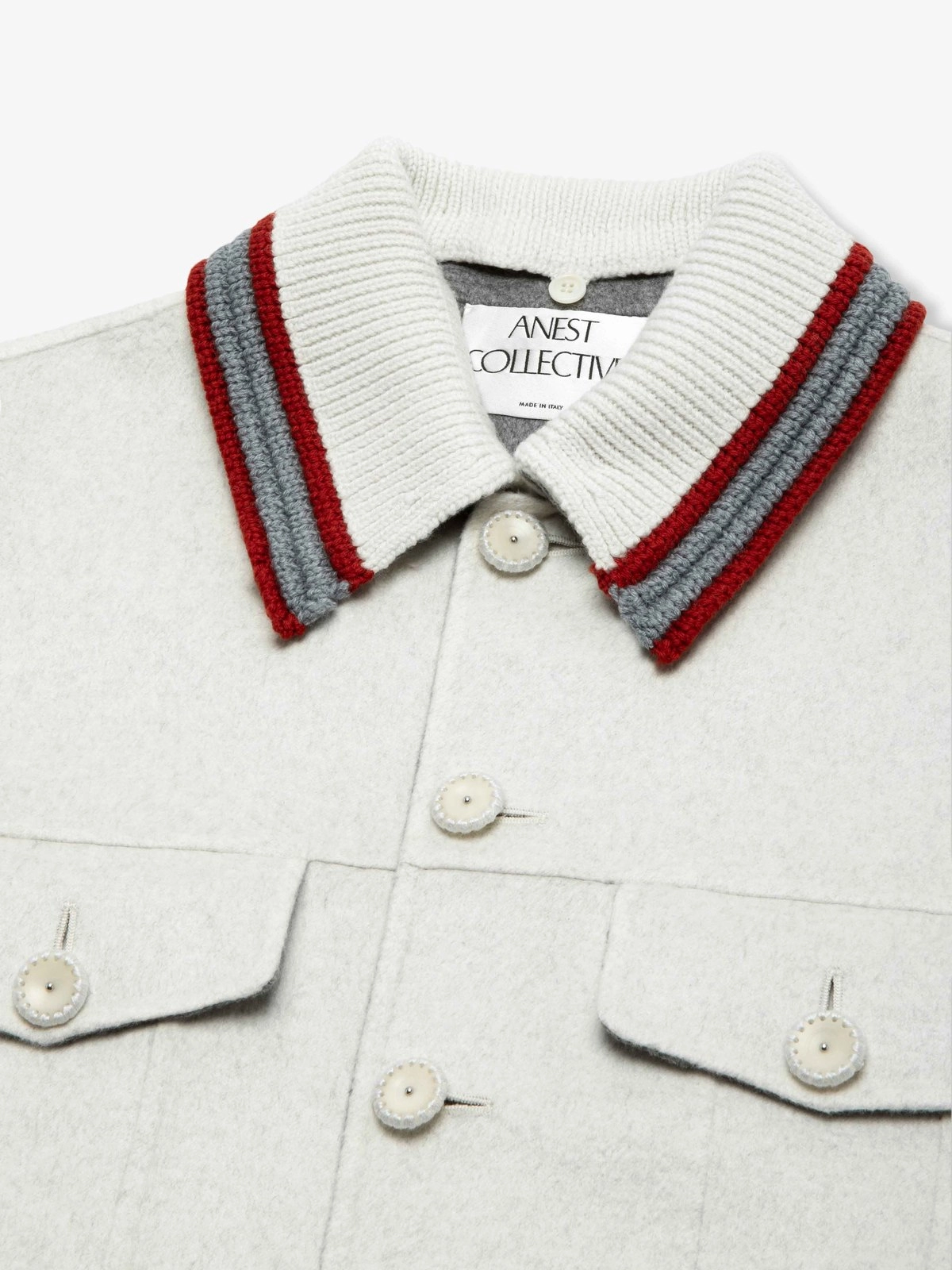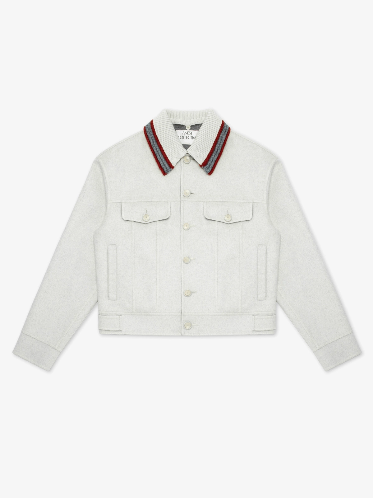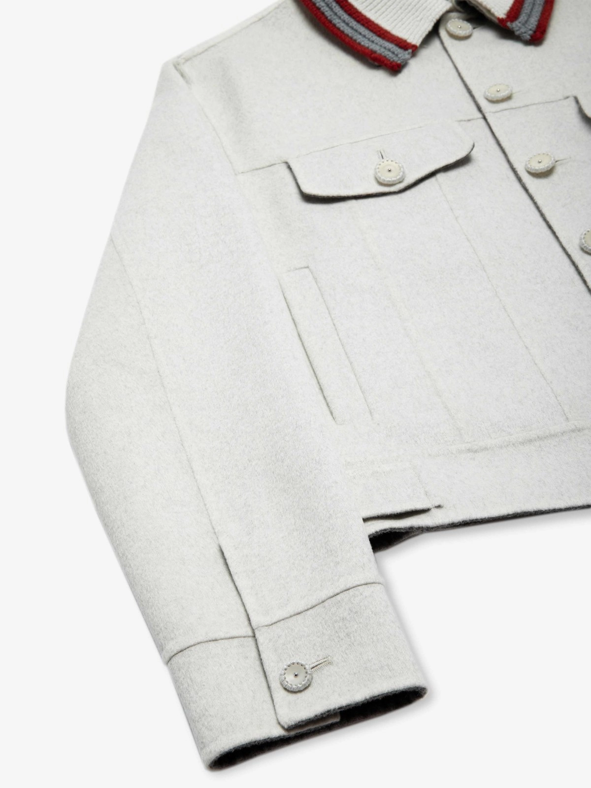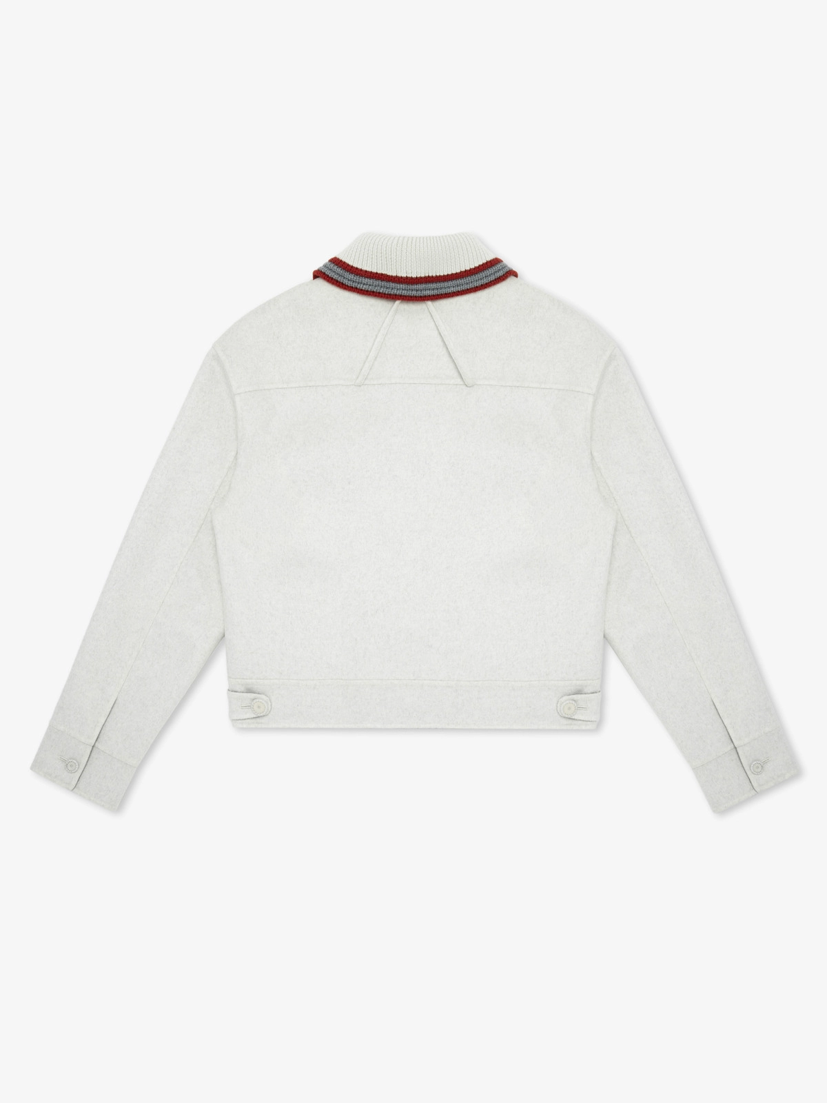 DOUBLE FACE CASHMERE BLOUSON WITH KNITTED COLLAR IN GREY PEARL「5 PCS LIMITED」
