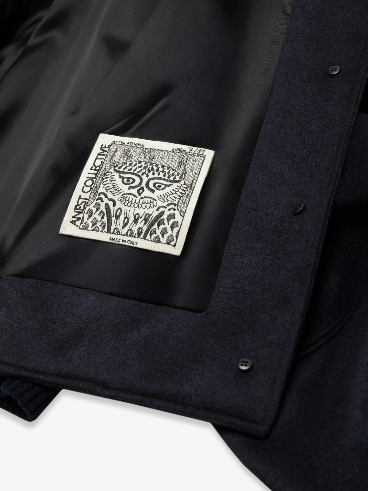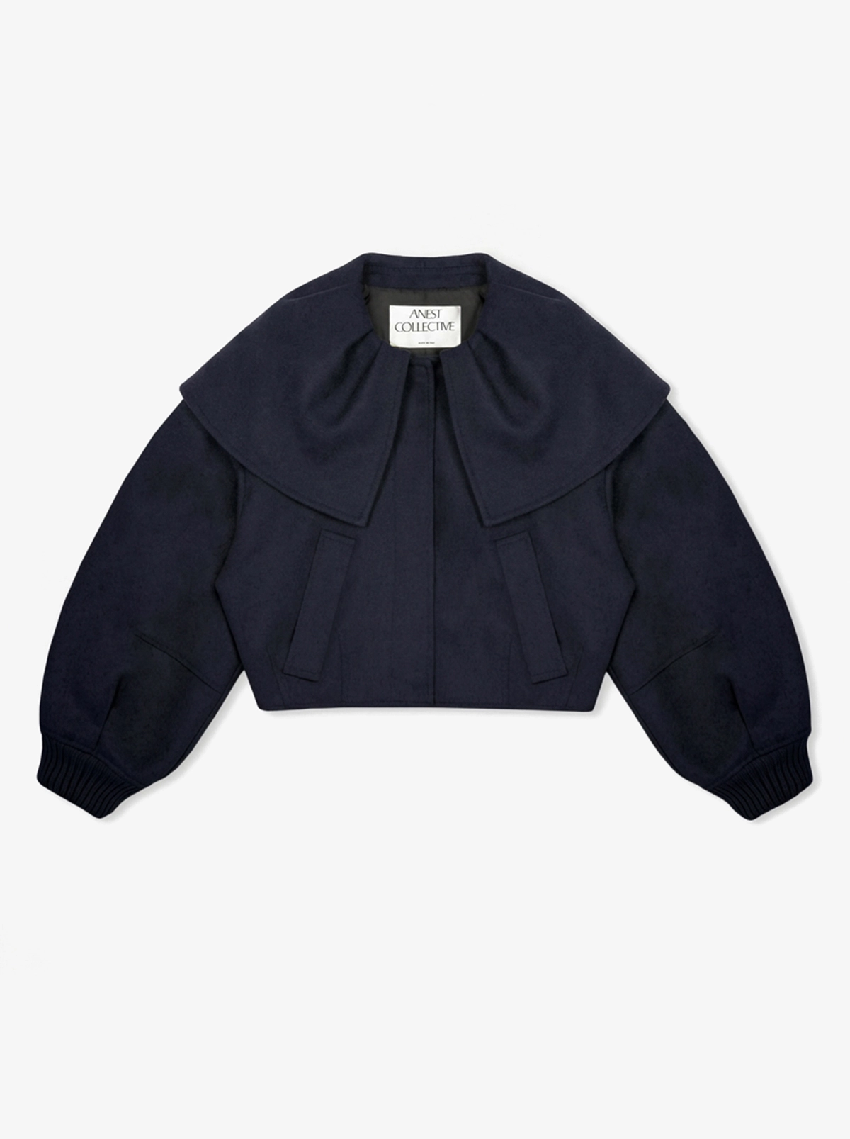 DOUBLE FACE CASHMERE COCOON BLOUSON WITH KNITTED COLLAR IN BLACK NAVY「6 PCS LIMITED」