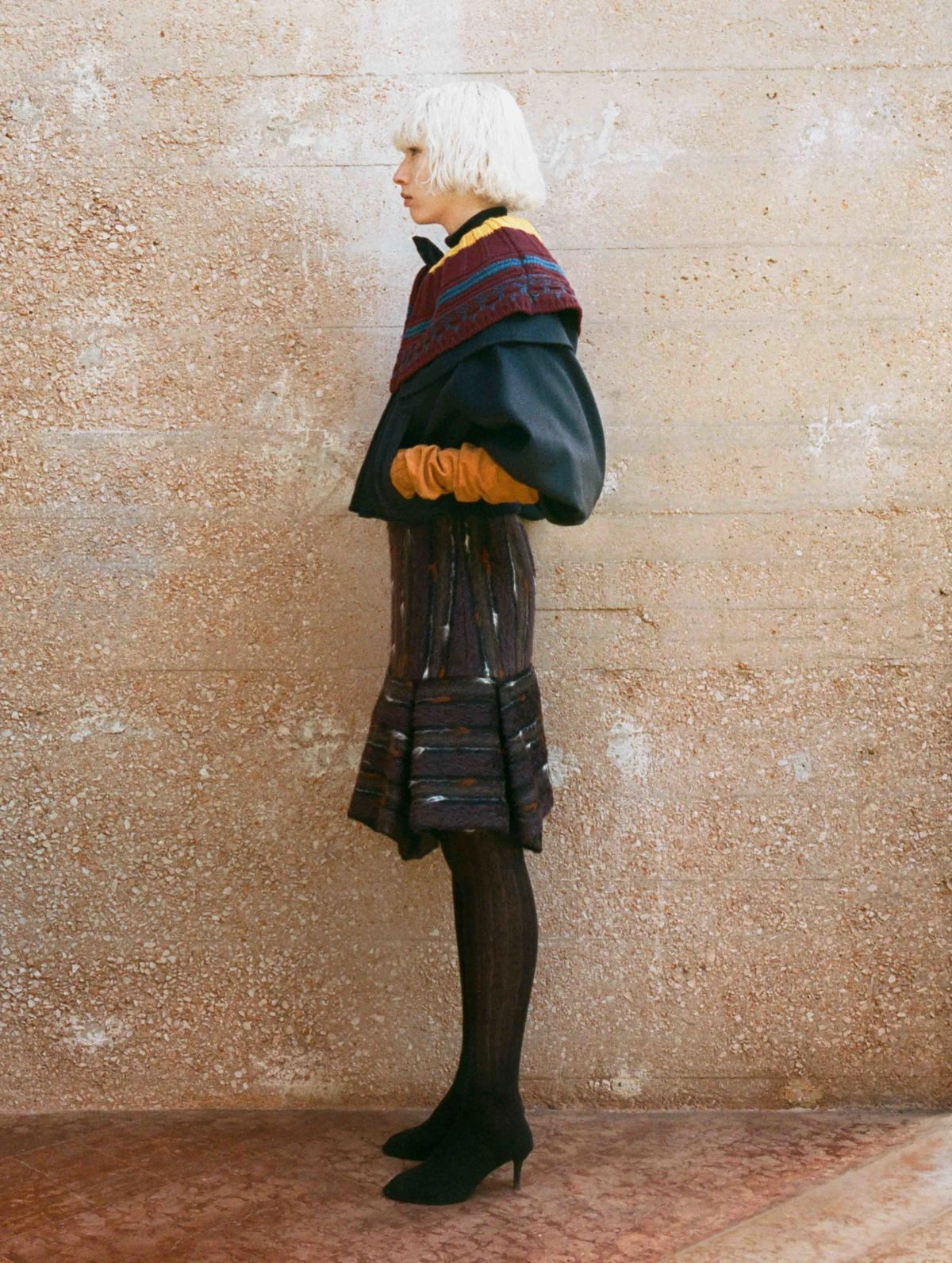 This blouson is designed as a versatile outerwear piece that transitions effortlessly from day to evening. Its cropped silhouette makes it ideal for layering over dresses, tailored trousers, or high-waisted skirts, offering a refined yet modern touch. The detachable knitted collar in contrasting colors introduces a playful versatility, allowing the piece to shift from casual chic to polished refinement. Perfect for city wear, weekend escapes, or informal evening gatherings, it combines warmth with understated elegance.