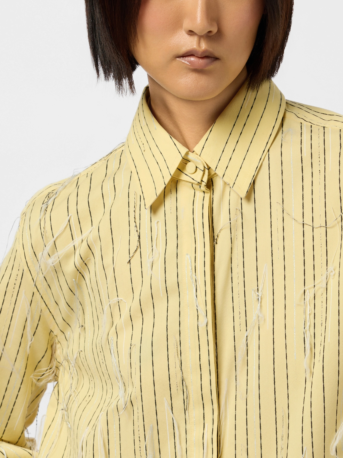 closure for a seamless look, it boasts elegantly open undersleeves secured with covered buttons. Thoughtfully crafted, it