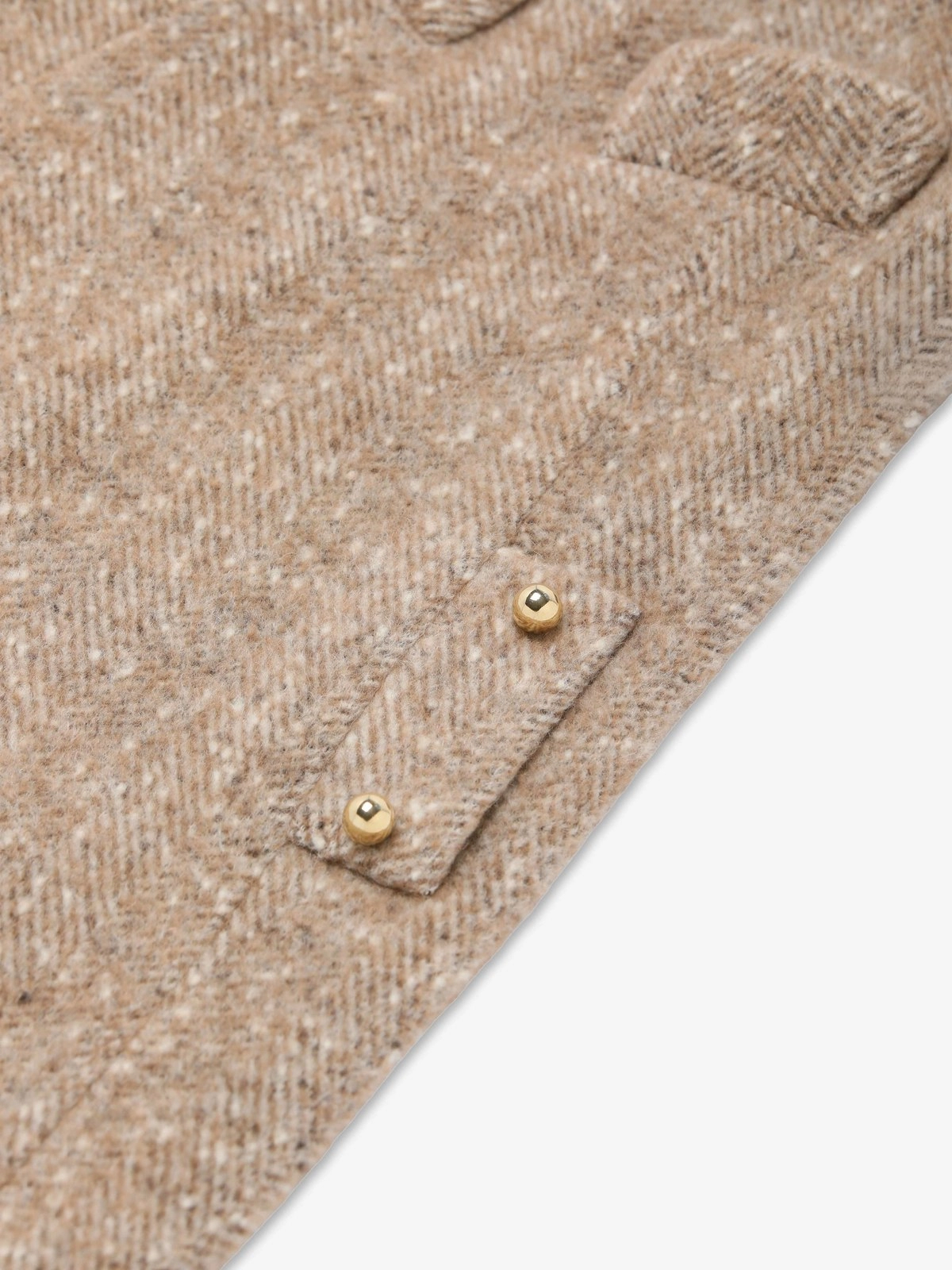 HARRINGBONE BABY ALPACA WOOL BLEND MINIDRESS IN MILK COGNAC MELANGE「12 PCS LIMITED」