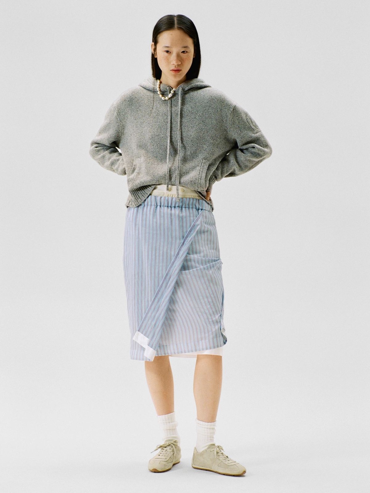 This double-layer skirt artfully blends the airy lightness of silkcotton voile with the crisp texture of cotton poplin. It merges