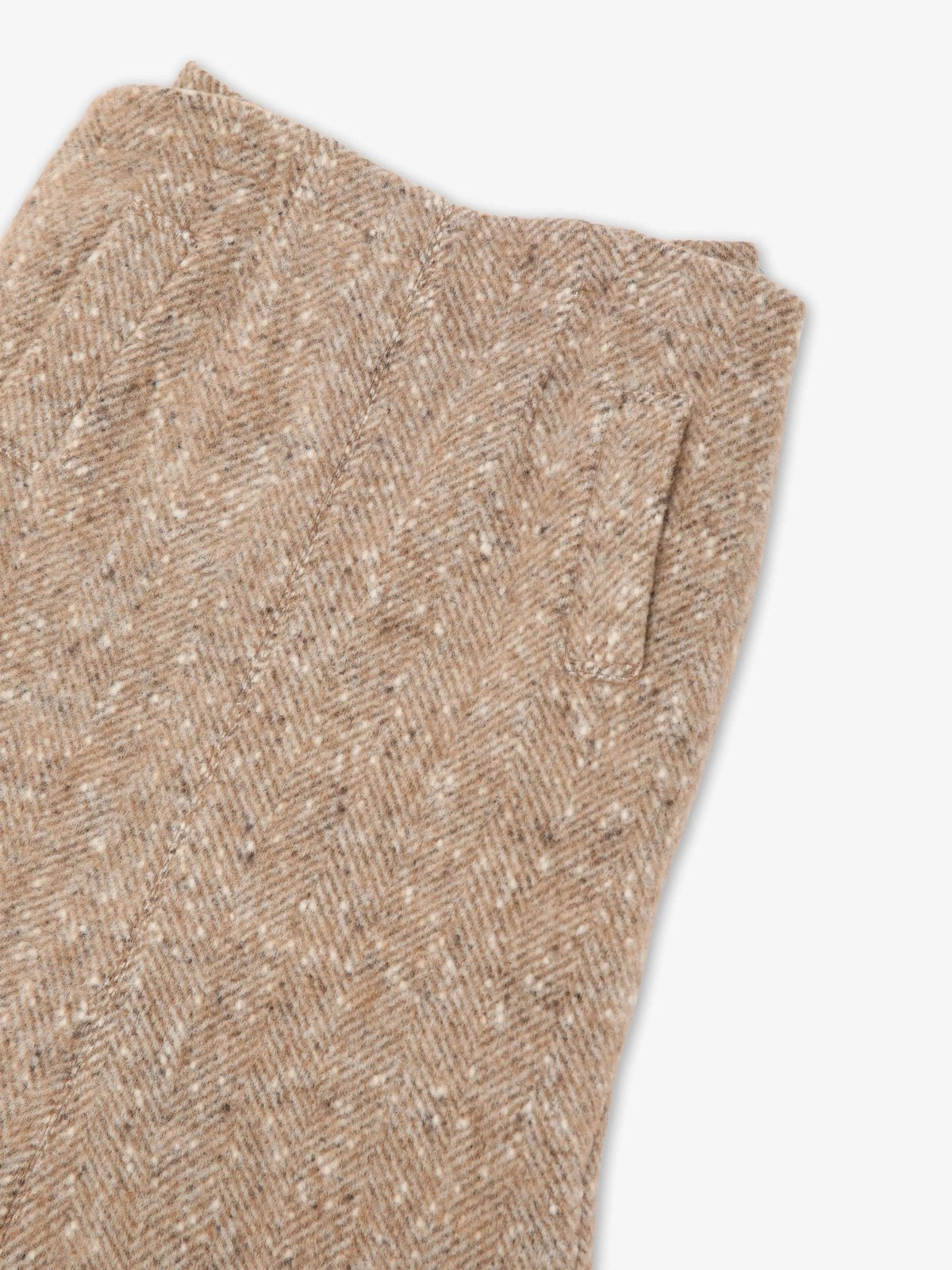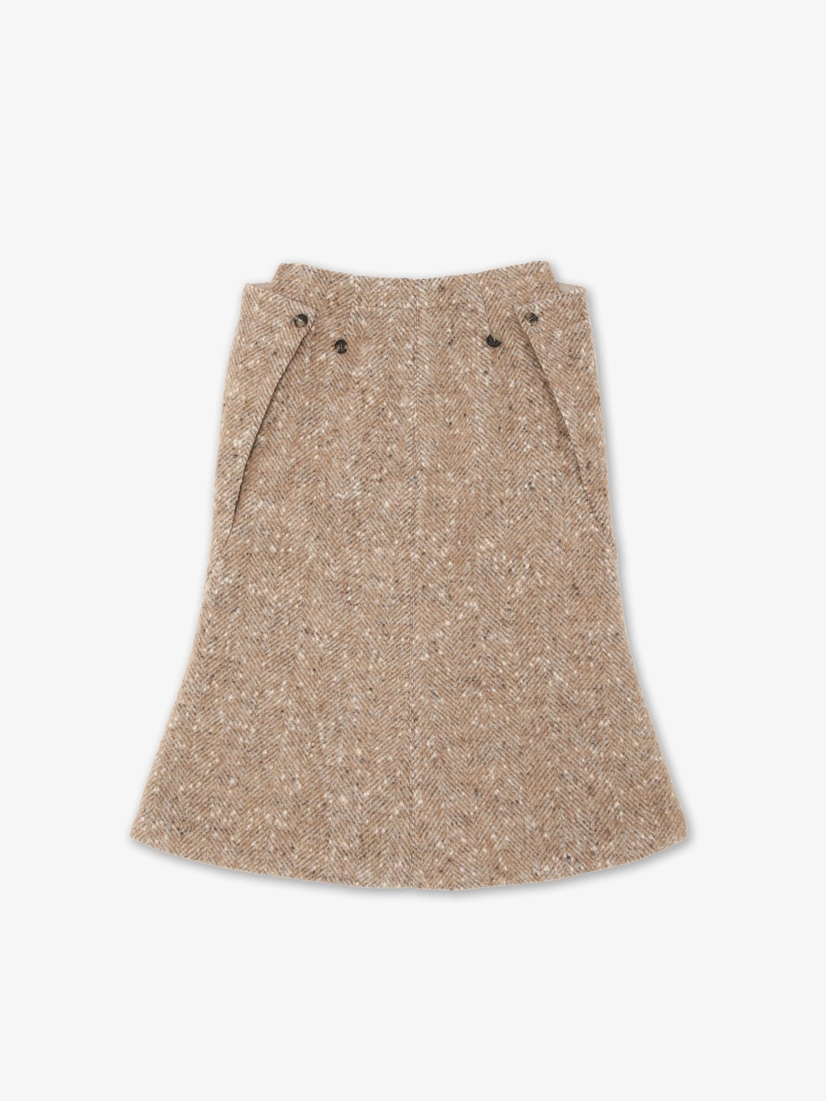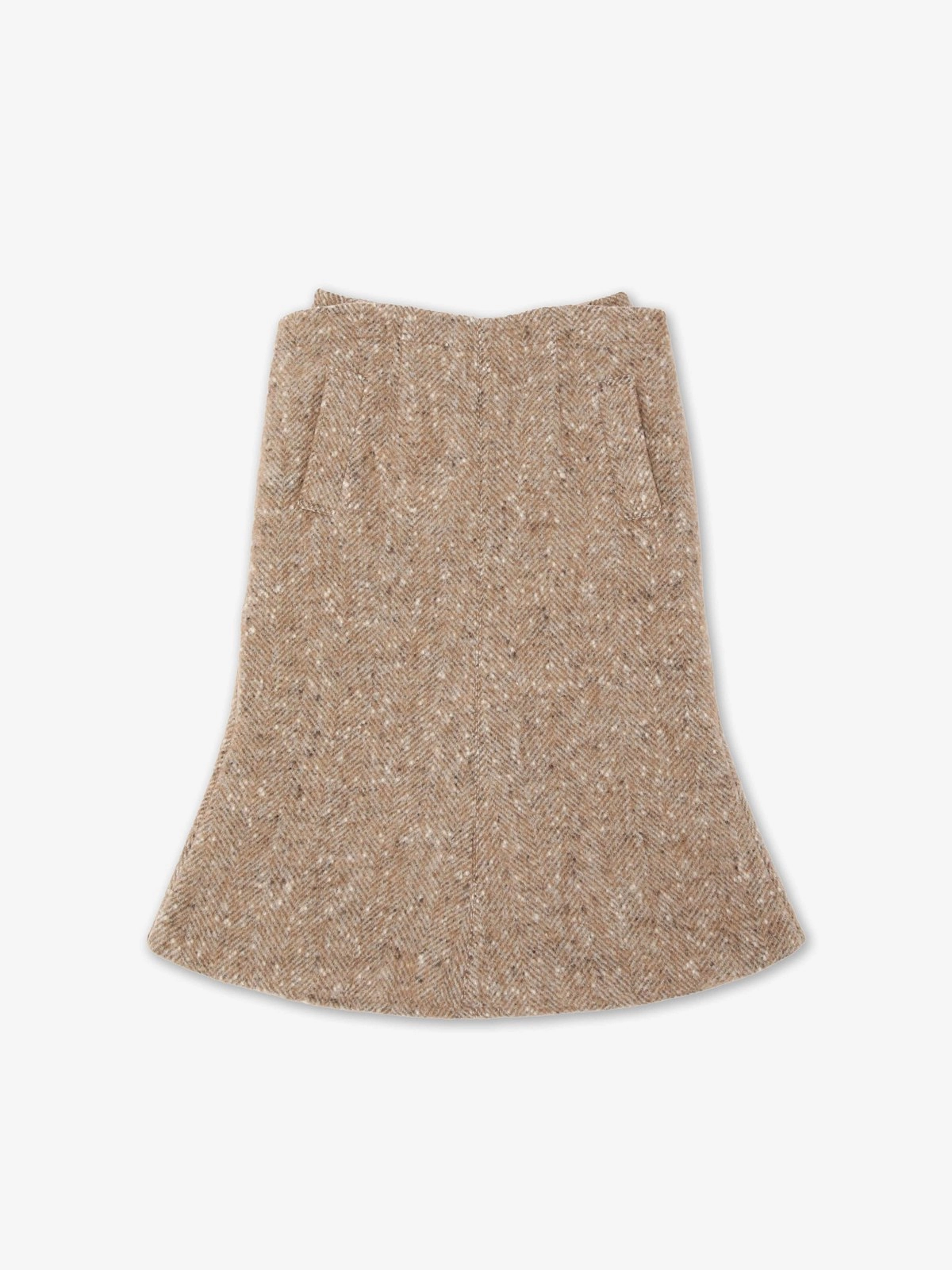 HERRINGBONE ALPACA WOOL BLEND SKIRT IN MILK COGNAC MELANGE「4 PCS LIMITED」