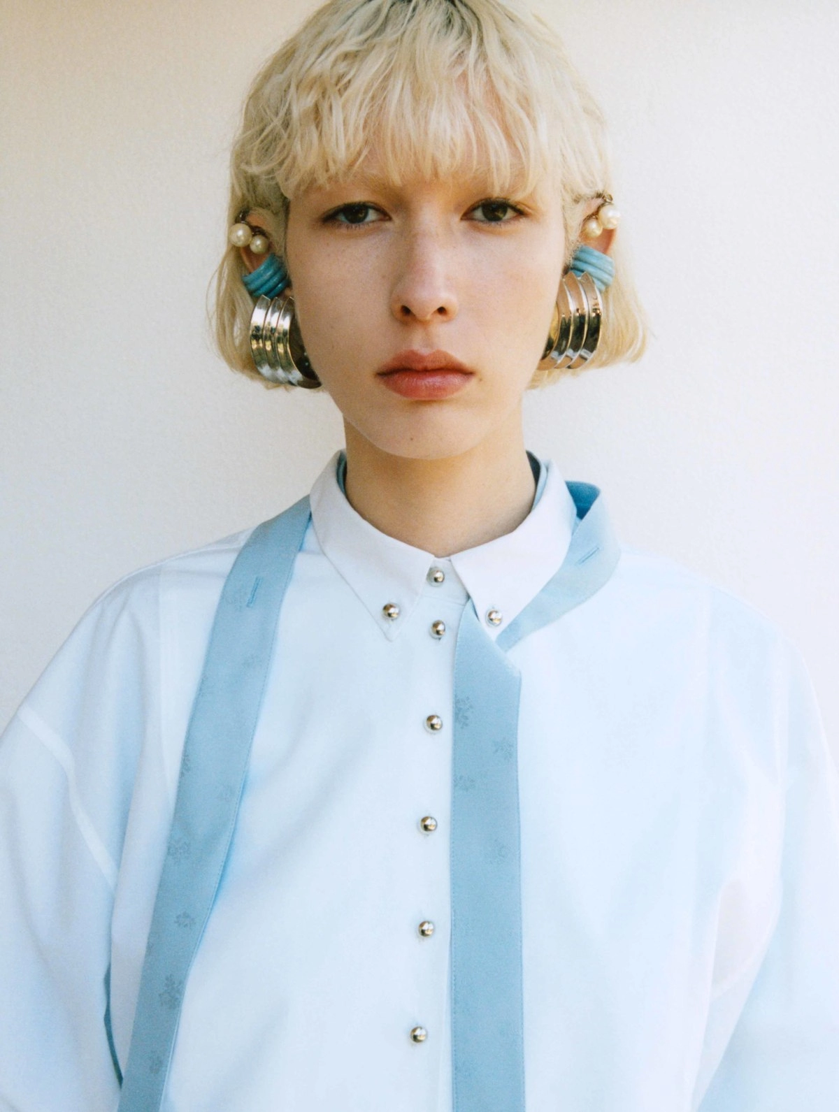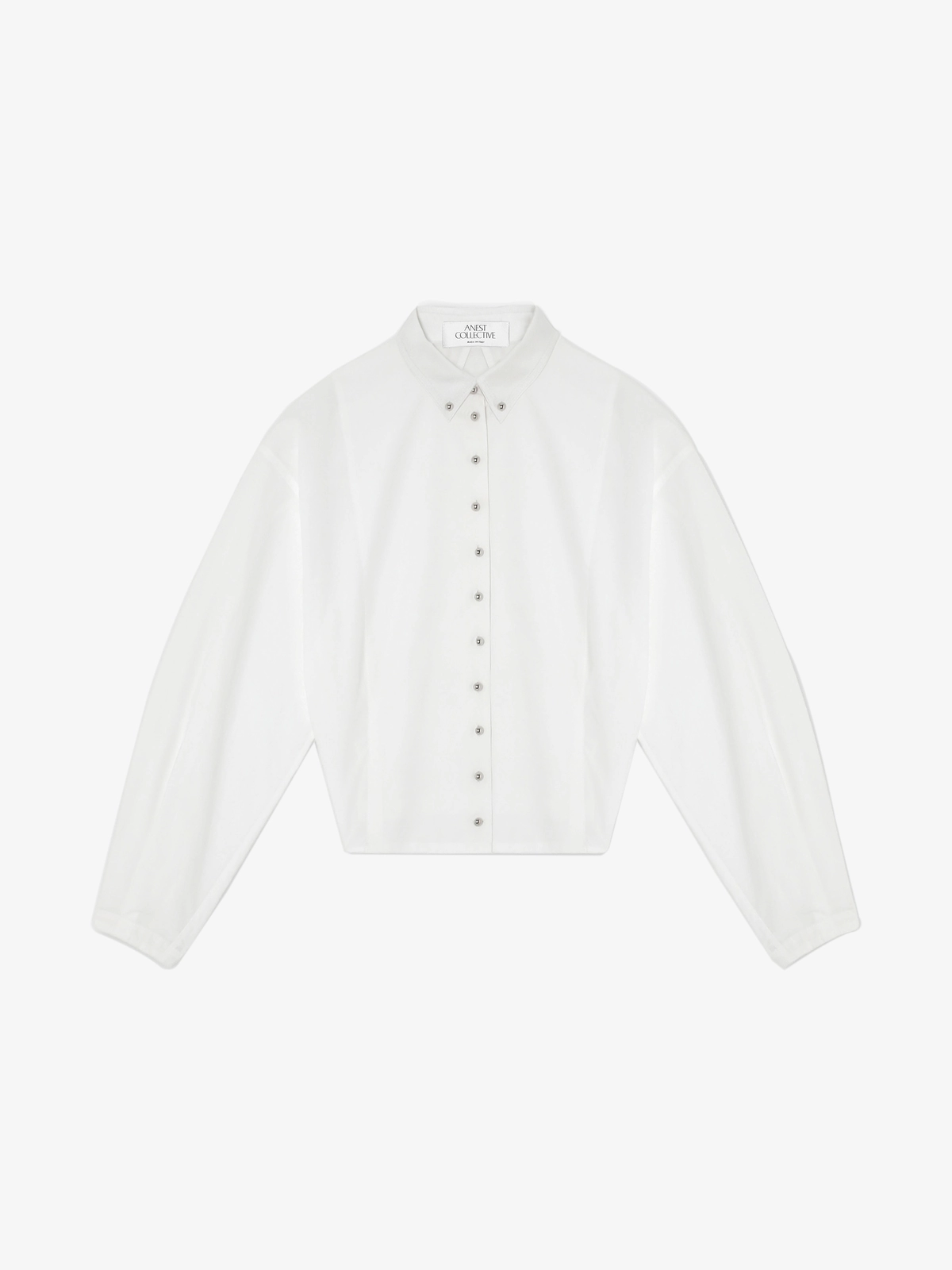 This shirt is a versatile wardrobe piece, refined enough for formal settings yet distinctive enough to stand out in more creative or evening occasions. Perfect under a tailored blazer for professional wear, it also transitions seamlessly into cocktail hours or social gatherings, where its unique detailing becomes the focal point. Crafted from a soft cotton-blend, the shirt reinterprets the classic button-down with sculptural elements. This shirt is designed for women who seek elegance with a distinctive twist.