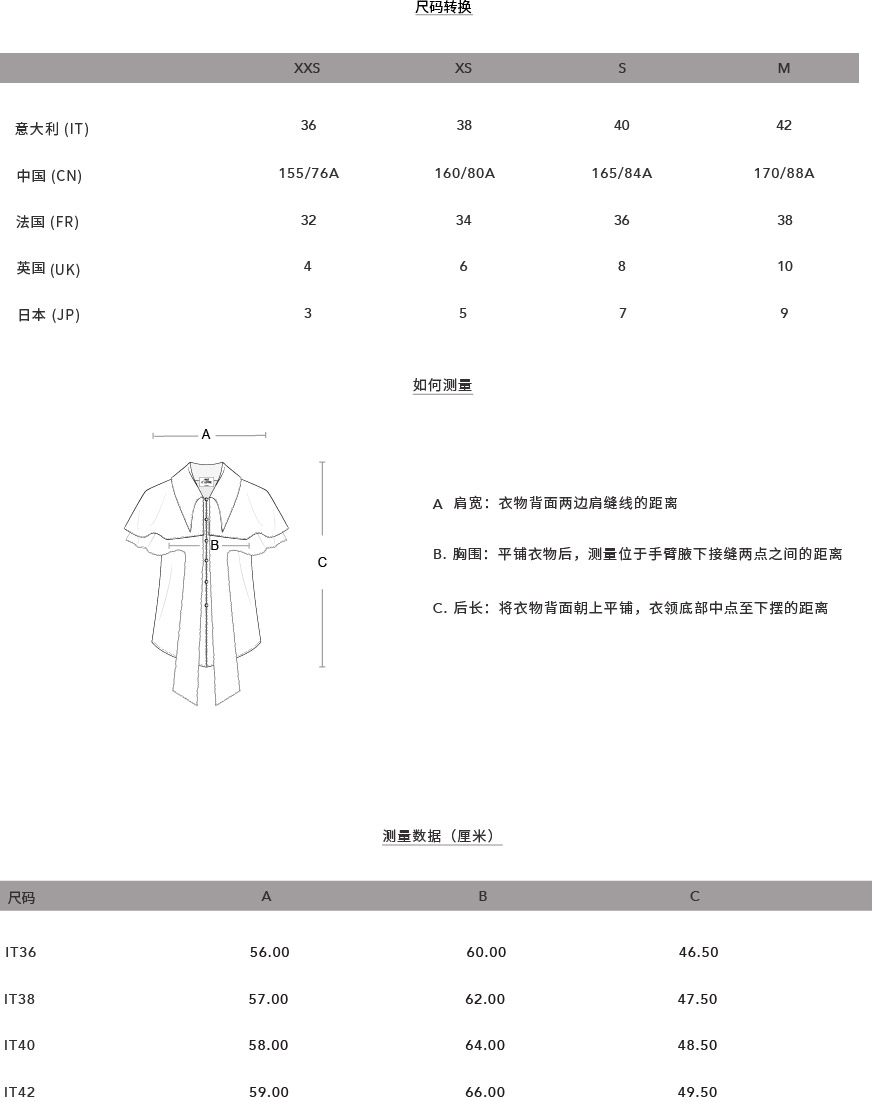 设计上配备夸张的衬衫领与雕塑感肩部披风,在经典剪裁中融入现代元素,廓形独特。衣身边缘采用娃娃针缝线工艺收尾,为整体设计增添精致的手工制作质感。