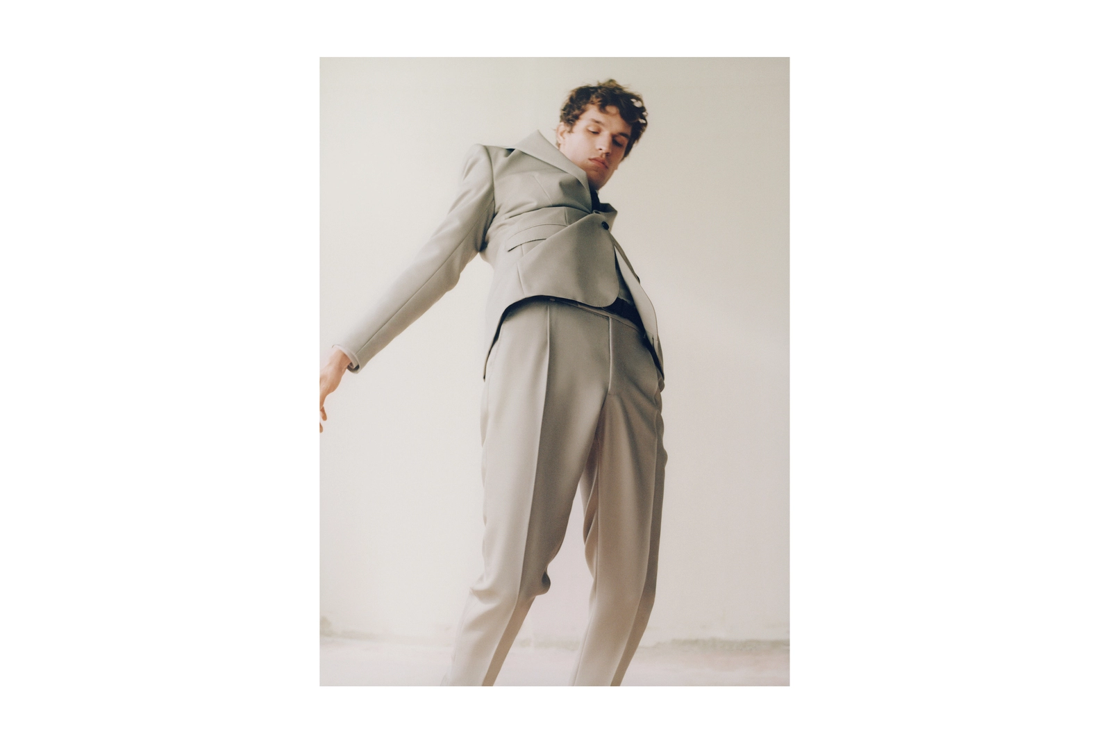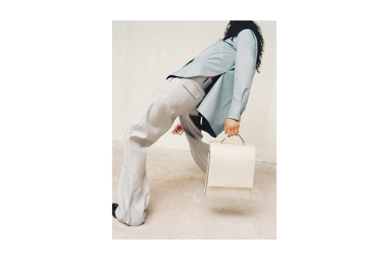 In order to create a Brutalist-style "non-place", the ivory-white walls and cement floor are in an unfinished state. In the poetry of "non-place", the two dancers magnify the poses of contemporary dance to show the human body in each silhouette. Engineering lines and the flexibility and freedom that come from it.Every stop that seems to be aimless is full of rich emotions, as if creating a soft sculpture together.