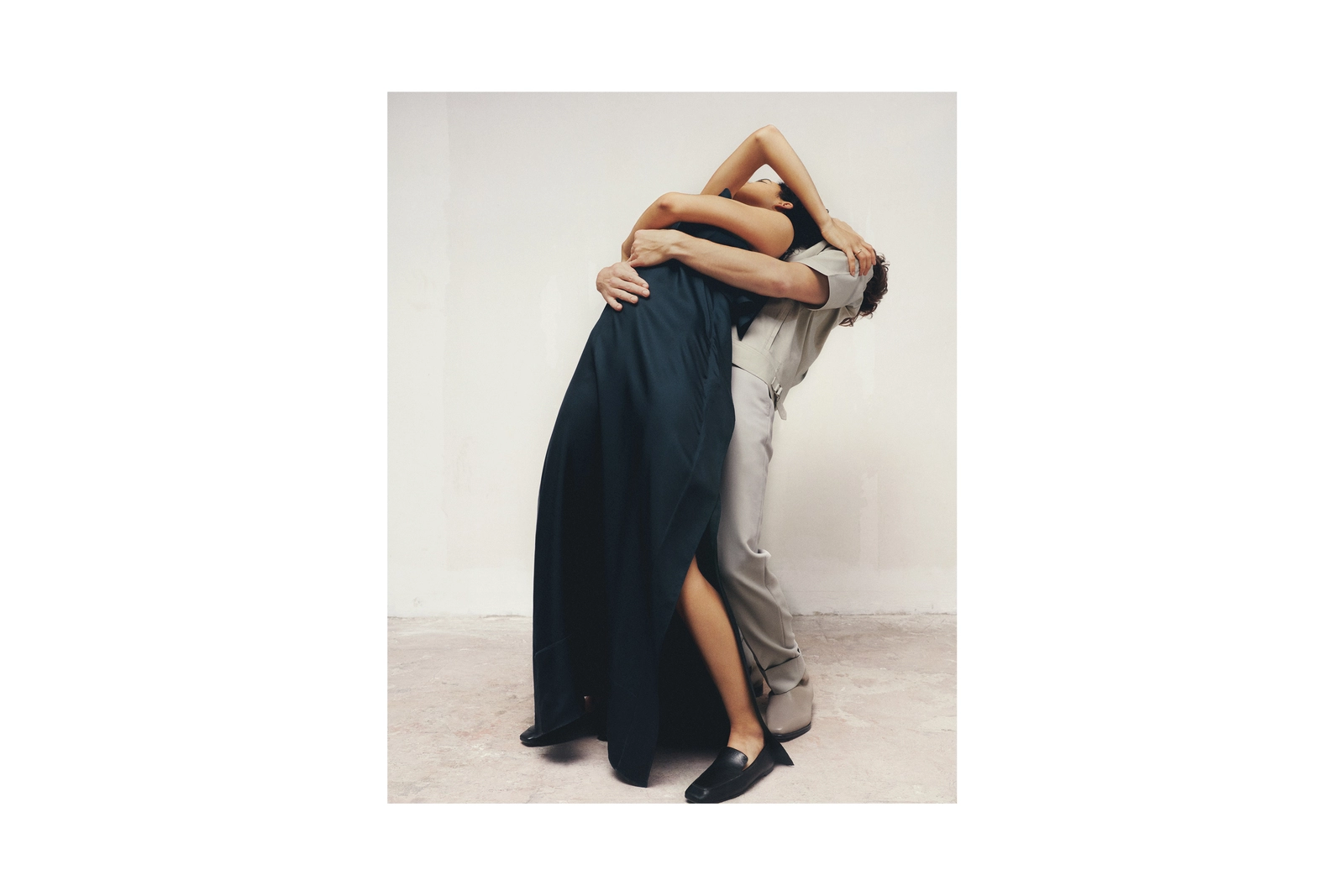 The two dancers walk in and out of the frame, exploring the boundaries of touch and negative space under the lens of Swiss photographer Senta Simond. The limbs carry emotions, and the rhythm without strings begins.The appropriate bandha participates in it, and the peeling hem makes a subtle transition, brewing the next stretch of tension without a trace.