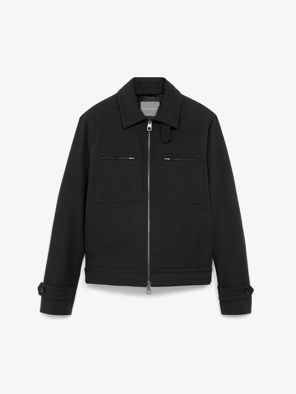 COTTON-POPLIN PATCH POCKET BLOUSON JACKET IN BLACK