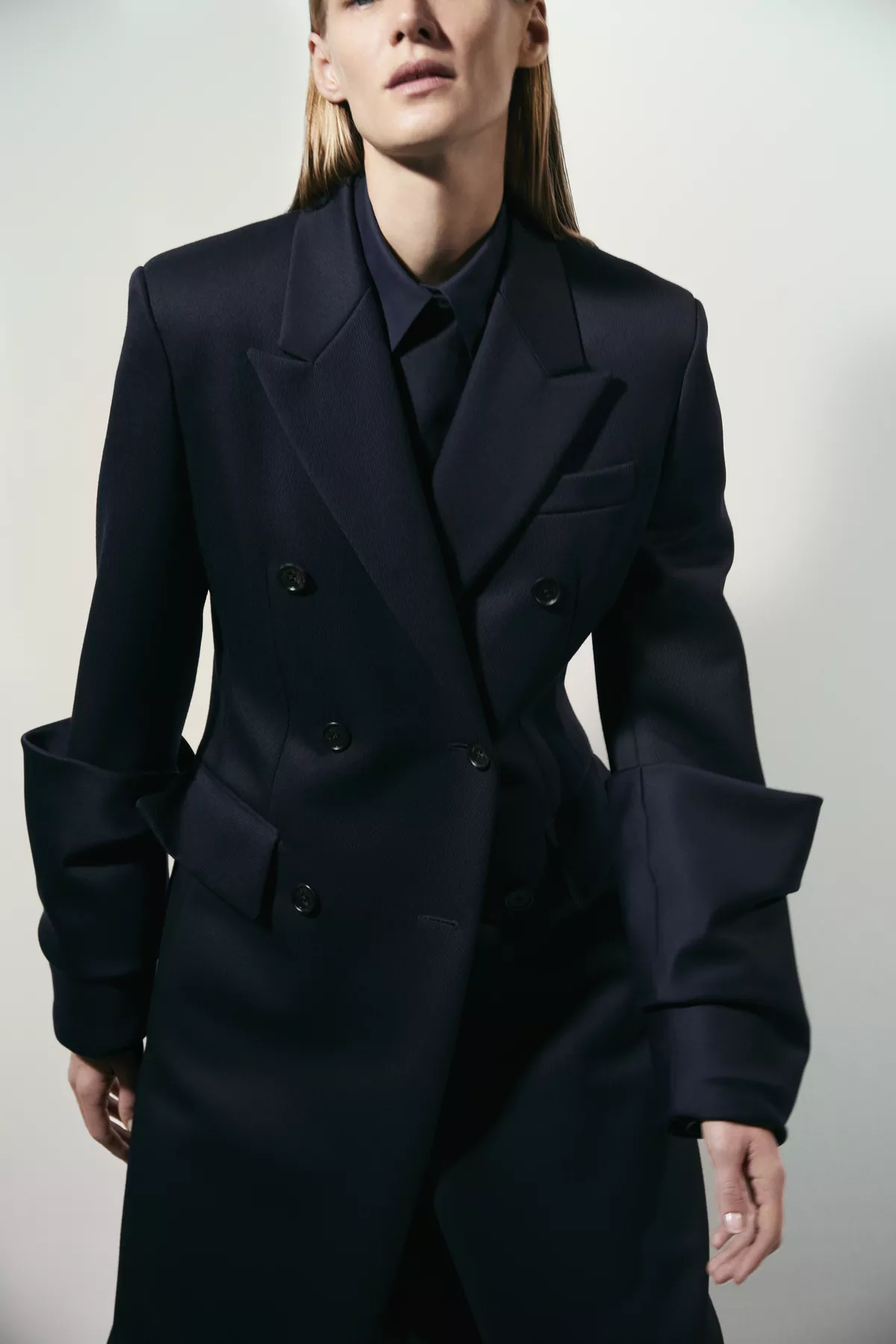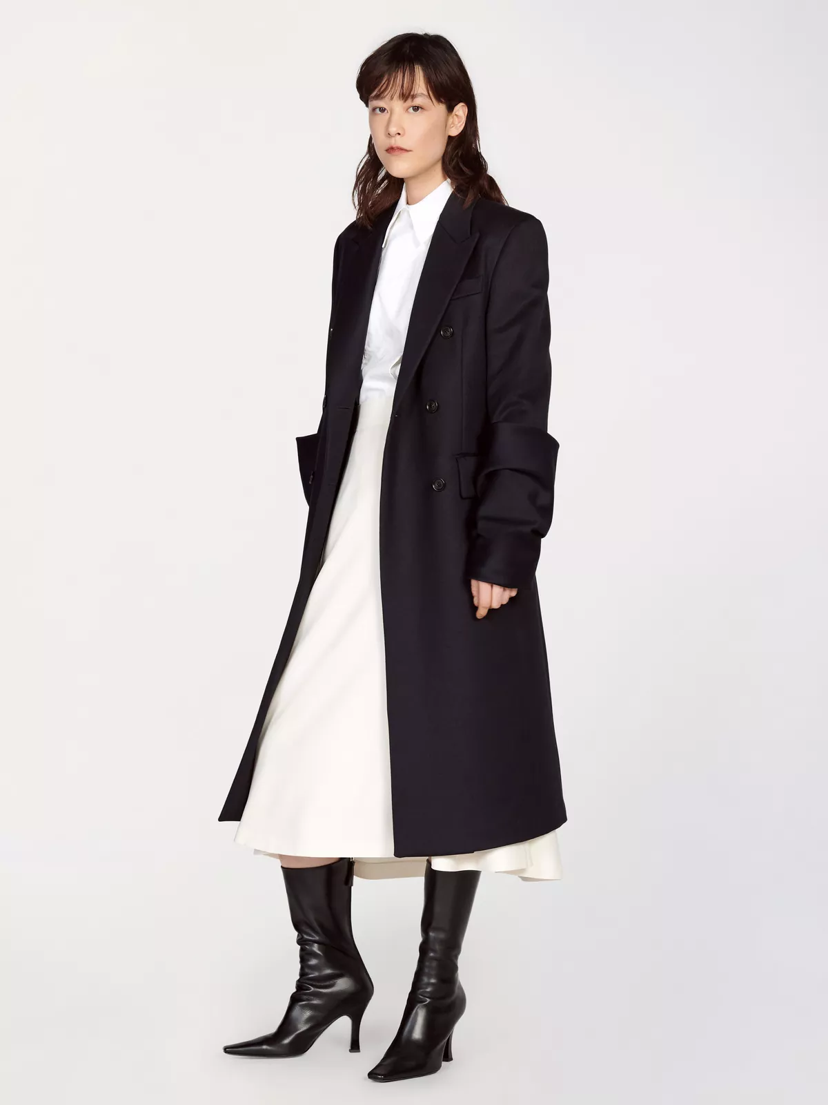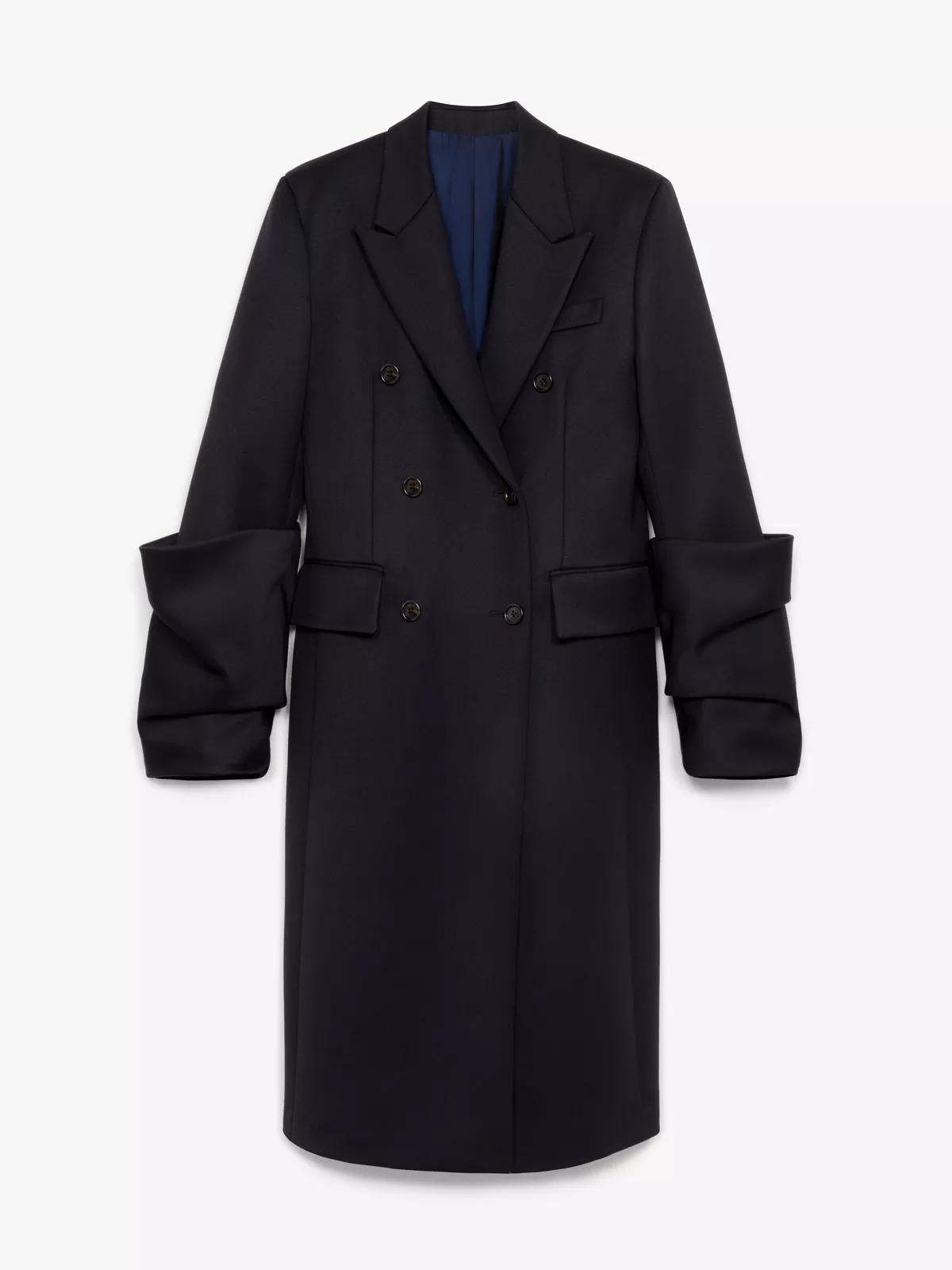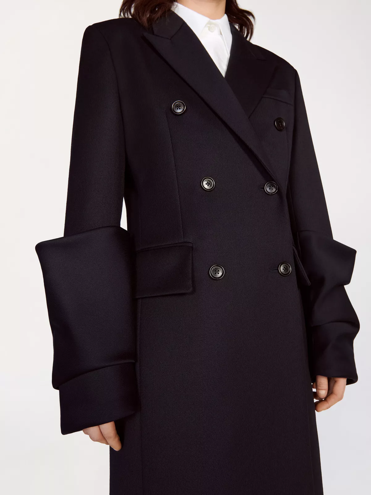WOOL COAT WITH OVERSIZED CUFFS IN NAVY BLUE