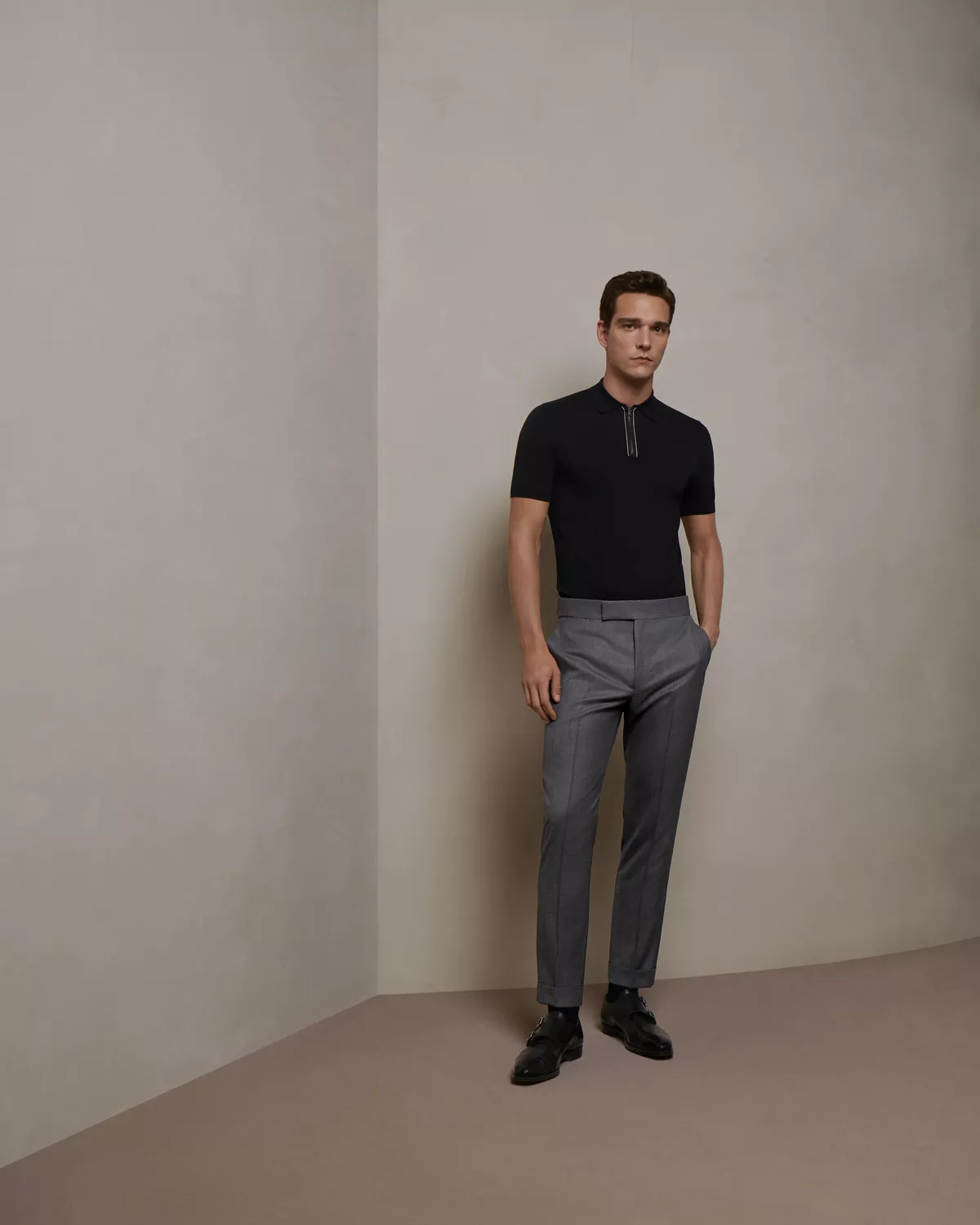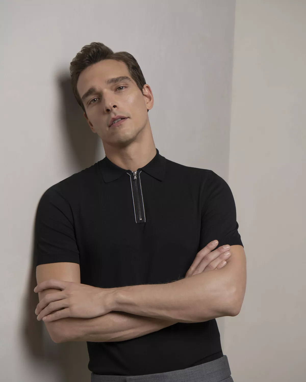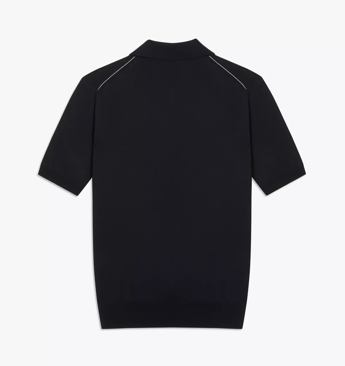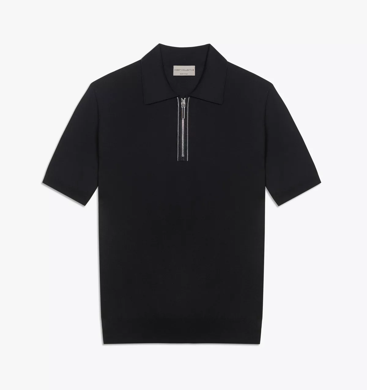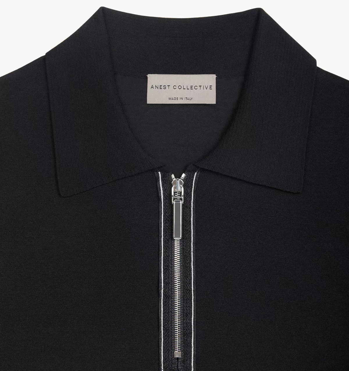 BLACK SUPERFINE COTTON ZIP POLO KNITWEAR