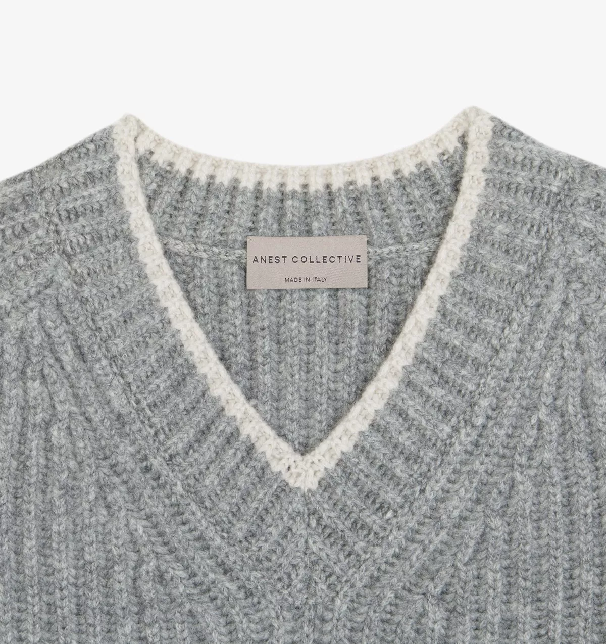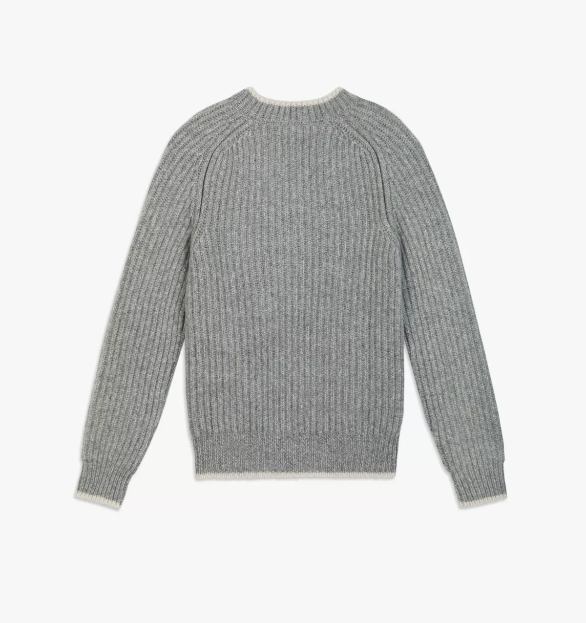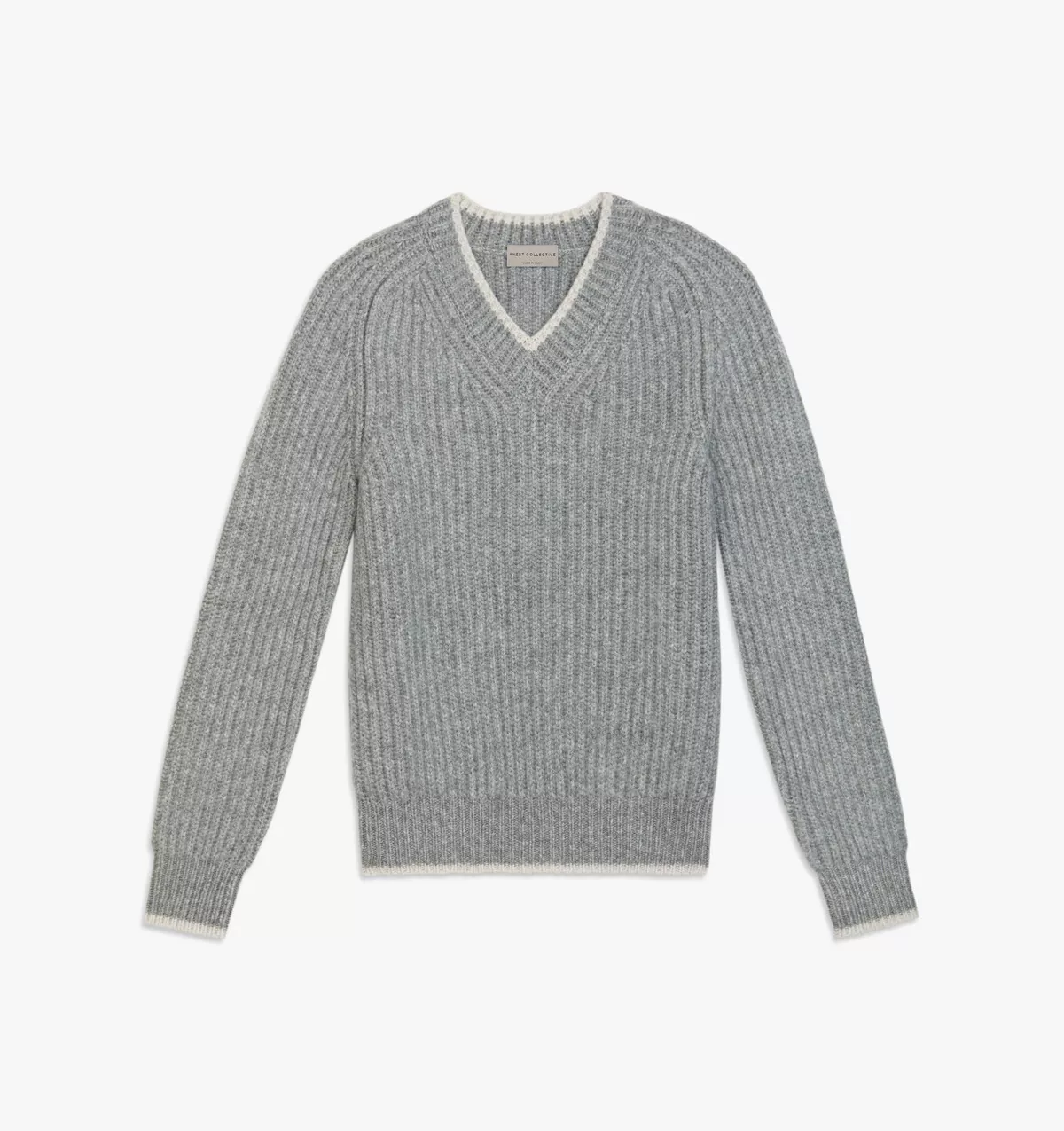 This Light Grey V-Neck sweater is knitted in a fisherman rib in pure cashmere for the ultimate warmth and comfort. It features an in-contrast trim on neck, hem and cuffs.