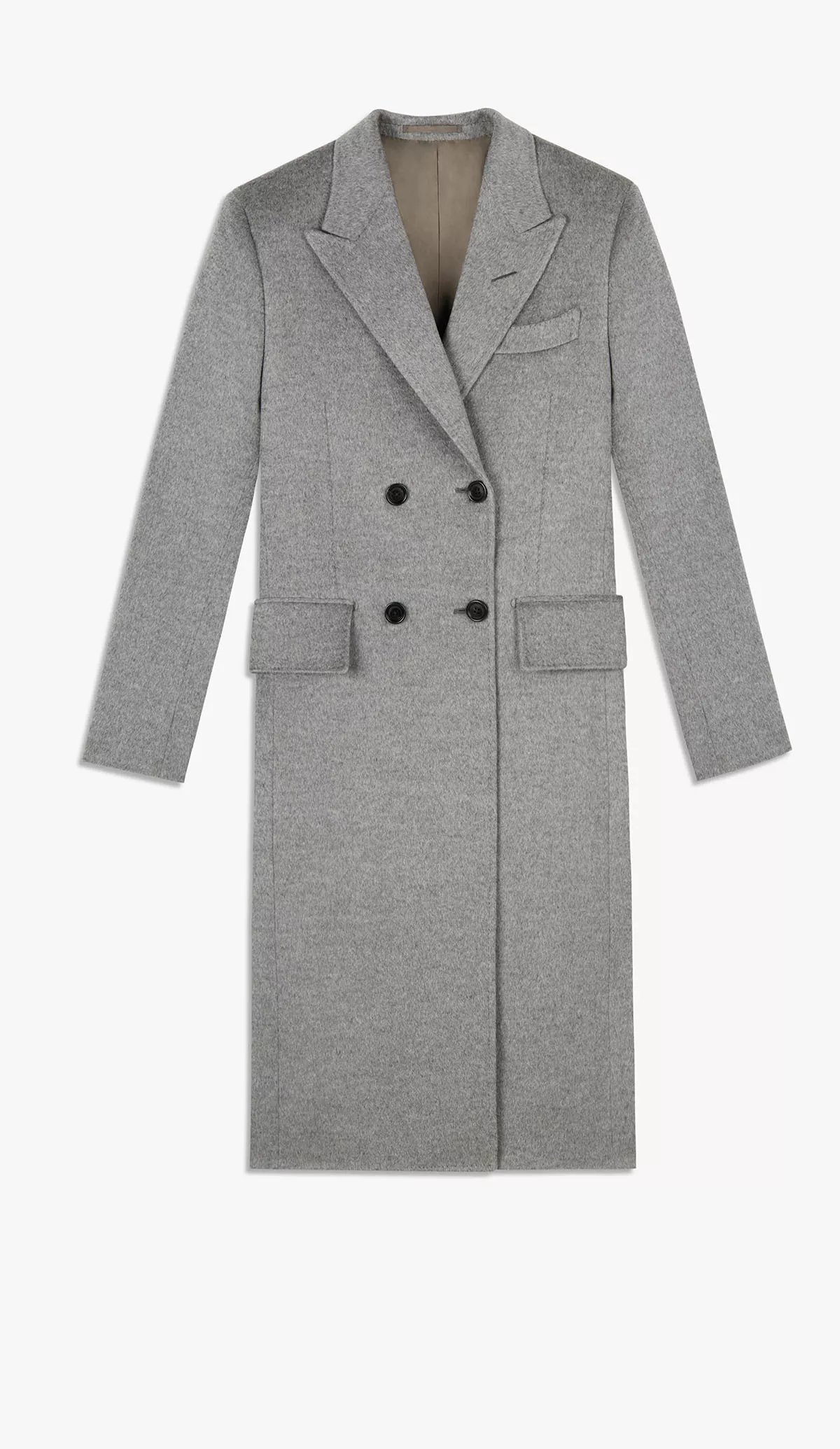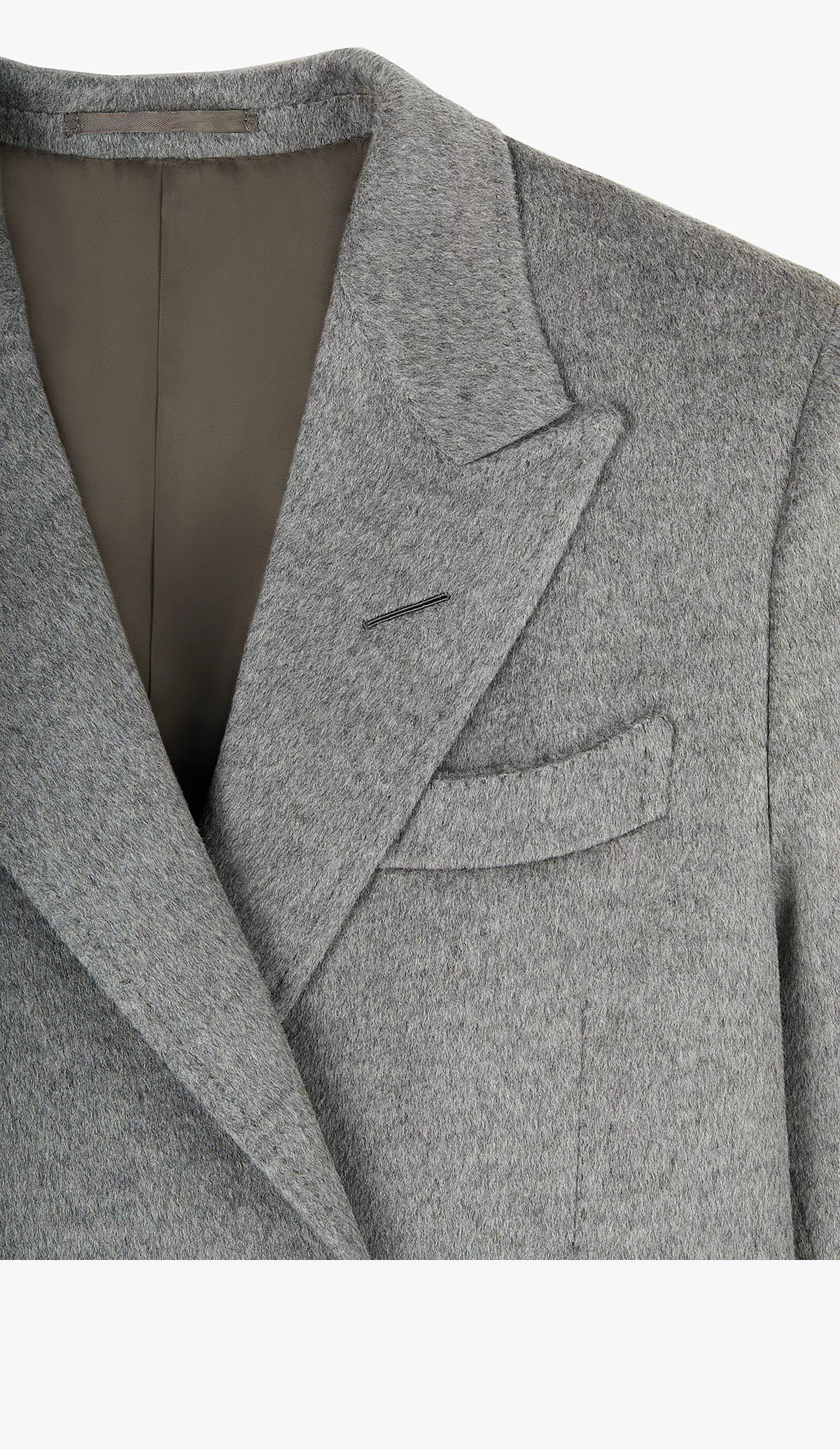 Crafted in Italy from the finest pure wool . This coat typifies timeless elegance with a classic cut. A notch Lapel Double Breasted tailored Coat with constructed shoulders ideal for every occasions.