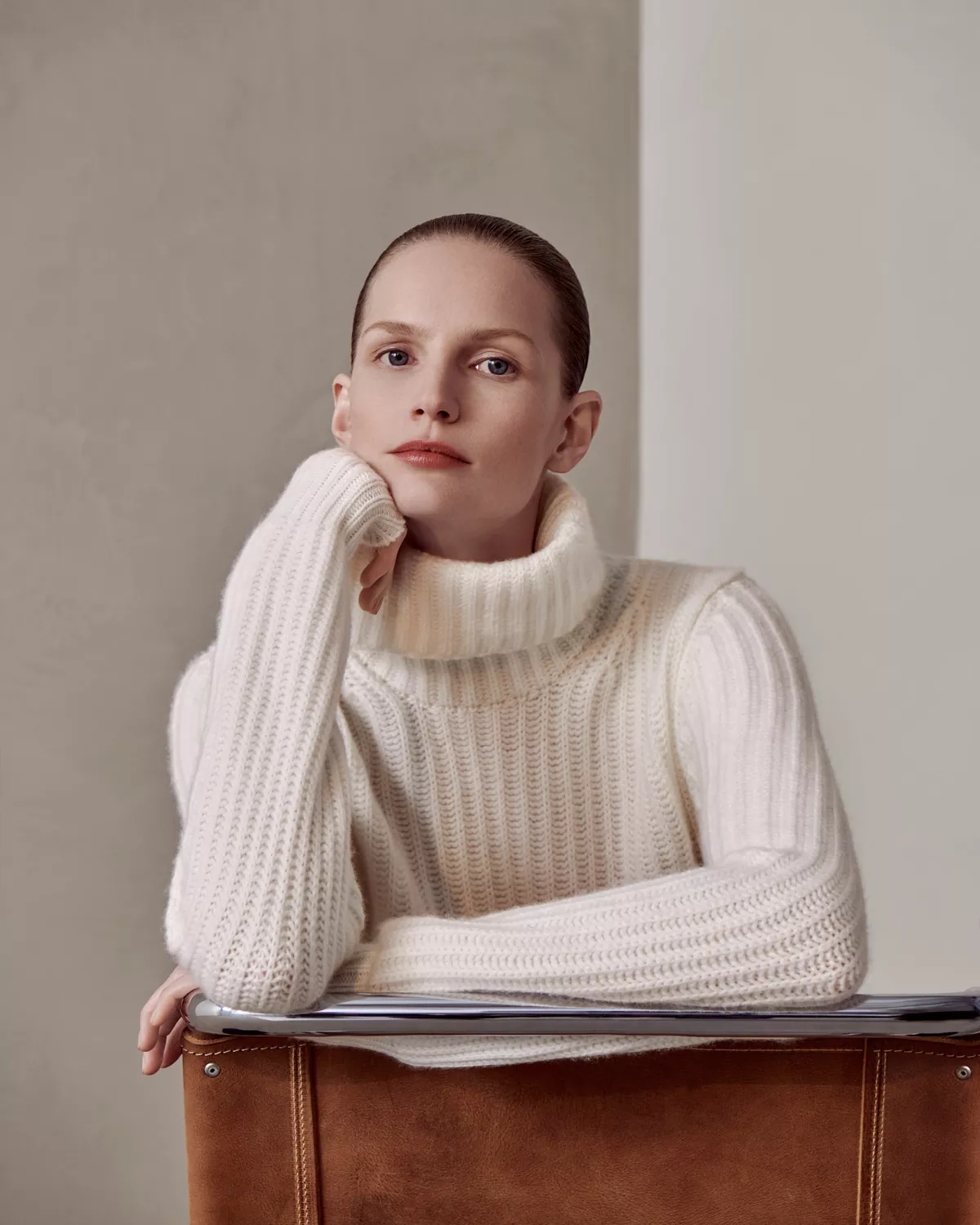 This turtleneck sweater has been expertly crafted in Italy from super- soft pure cashmere in white colorway. It is shaped into a subdued casual-chic silhouette with chunky ribbed knitting for added comfort.