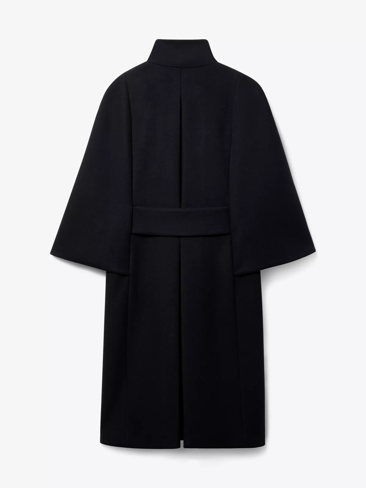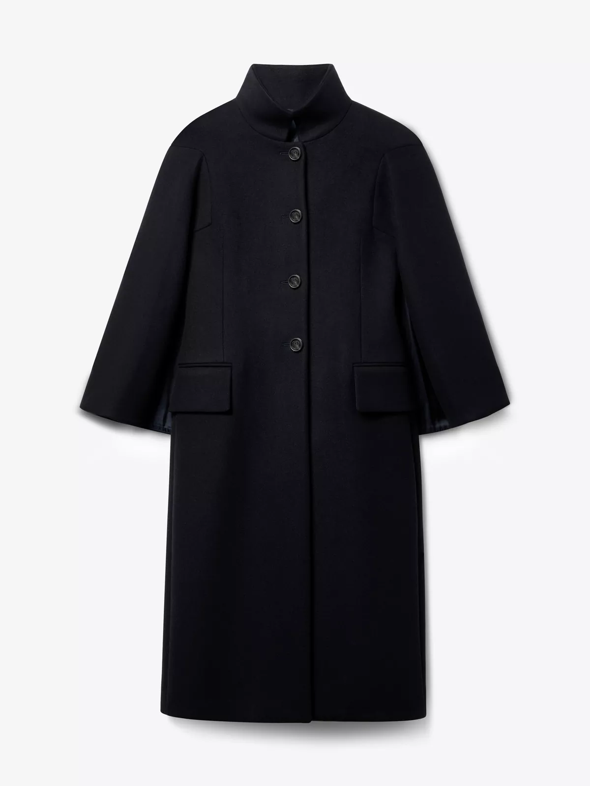 This wool mid-length cape coat has been cut to a slim silhouette with voluminous cape sleeves, a stand collar and discreet button closure.