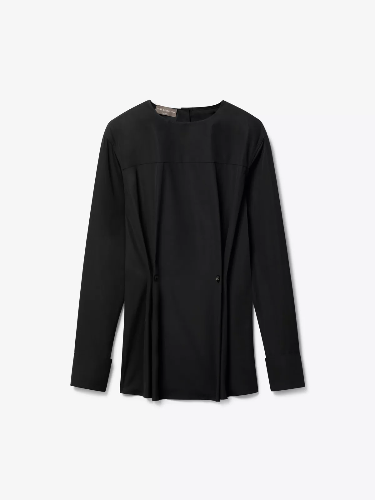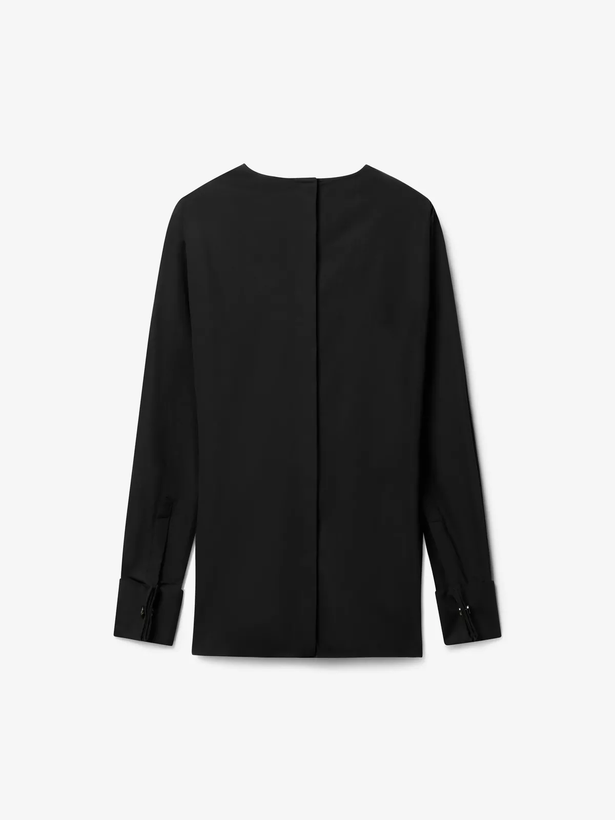 Made a from silk blend and cut to a relaxed-yet-elegant fit, this modern tunic top has a flattering round neckline and turned-up cuffs with metal cufflinks and a waist-cinching cufflink closure on the reverse.