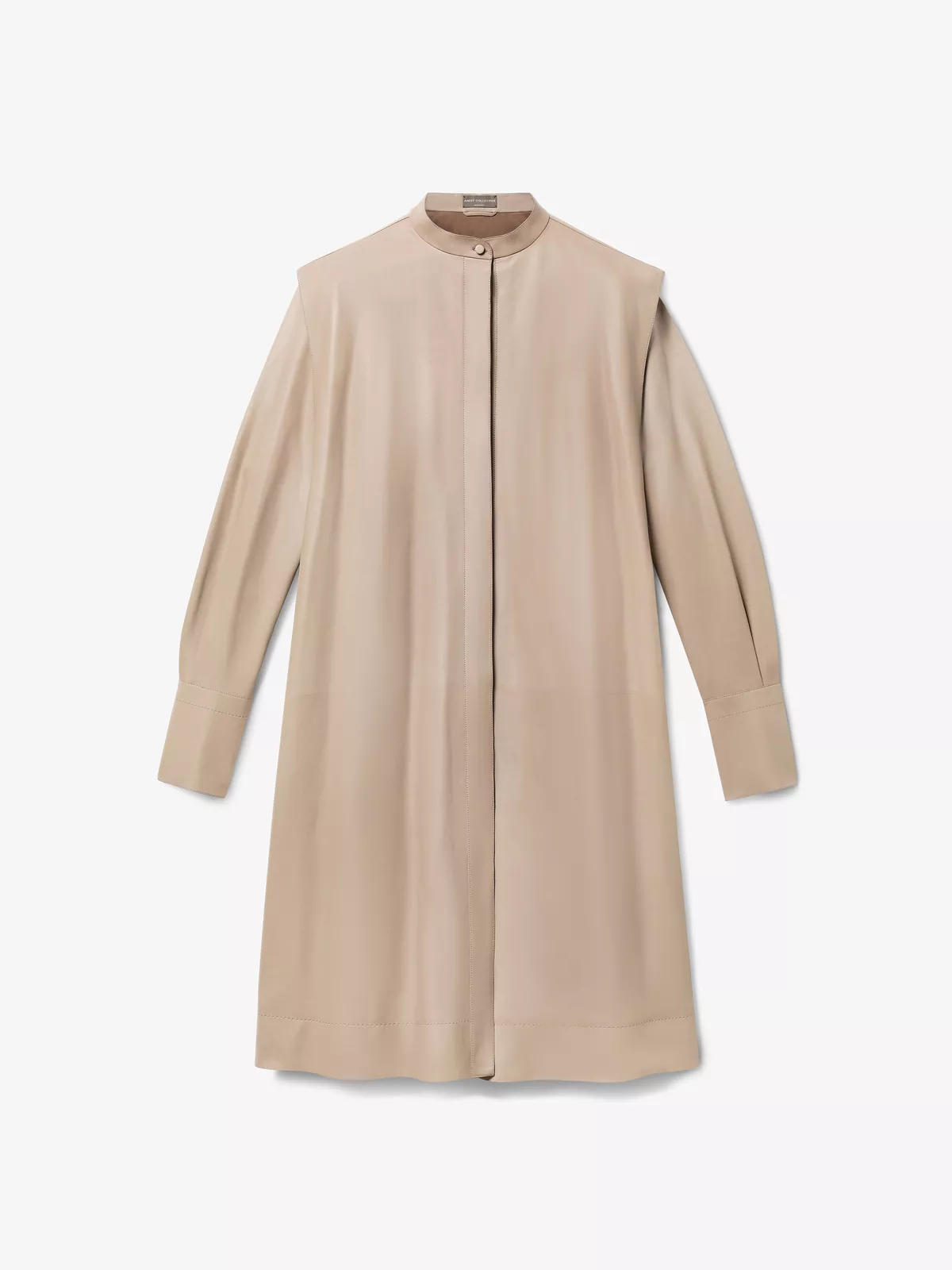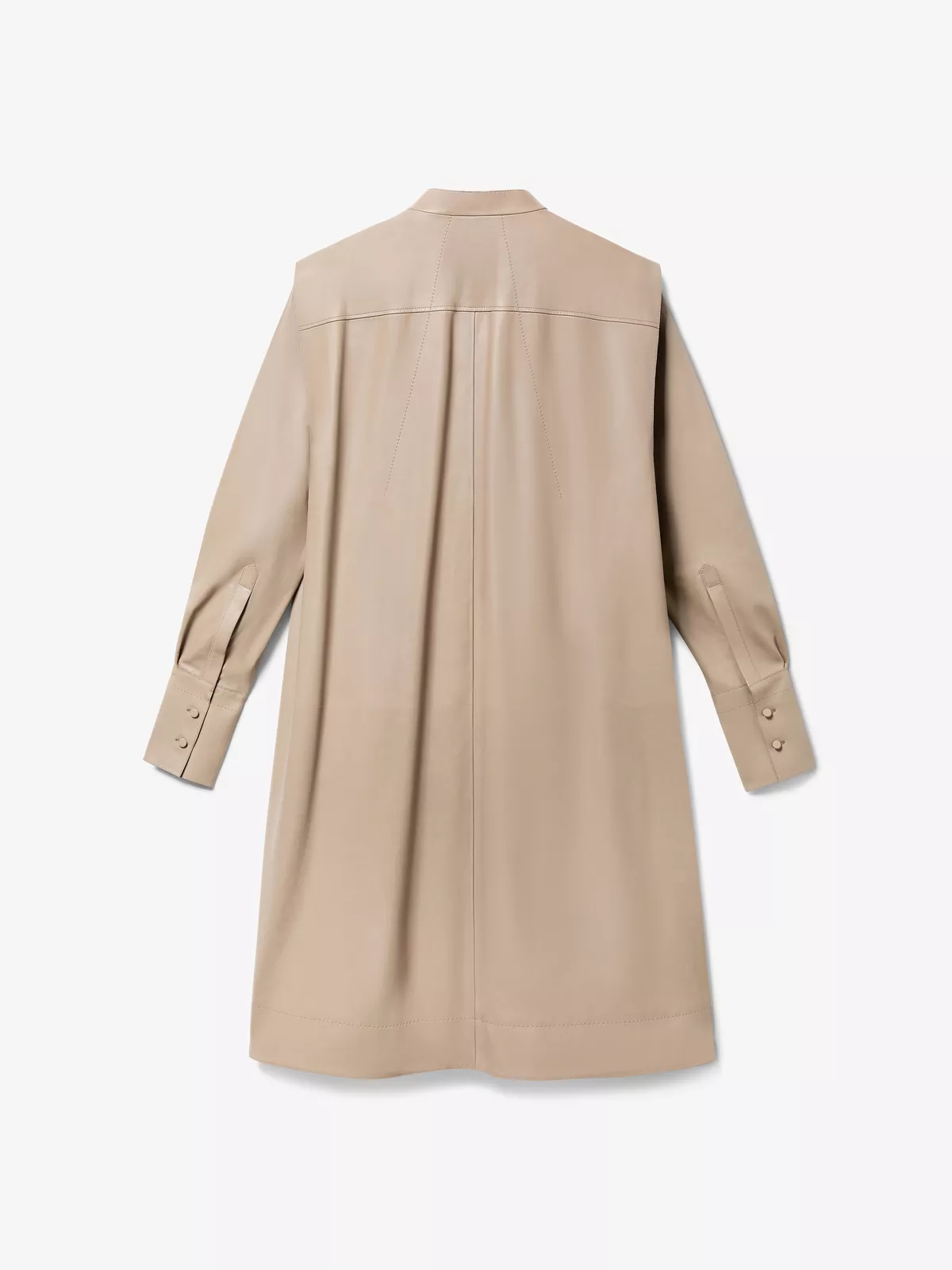 Made from a smooth, supple leather, this tunic dress has been cut to a boxy silhouette with exaggerated shoulder detailing, a concealed placket and cuffs with self-covered buttons.