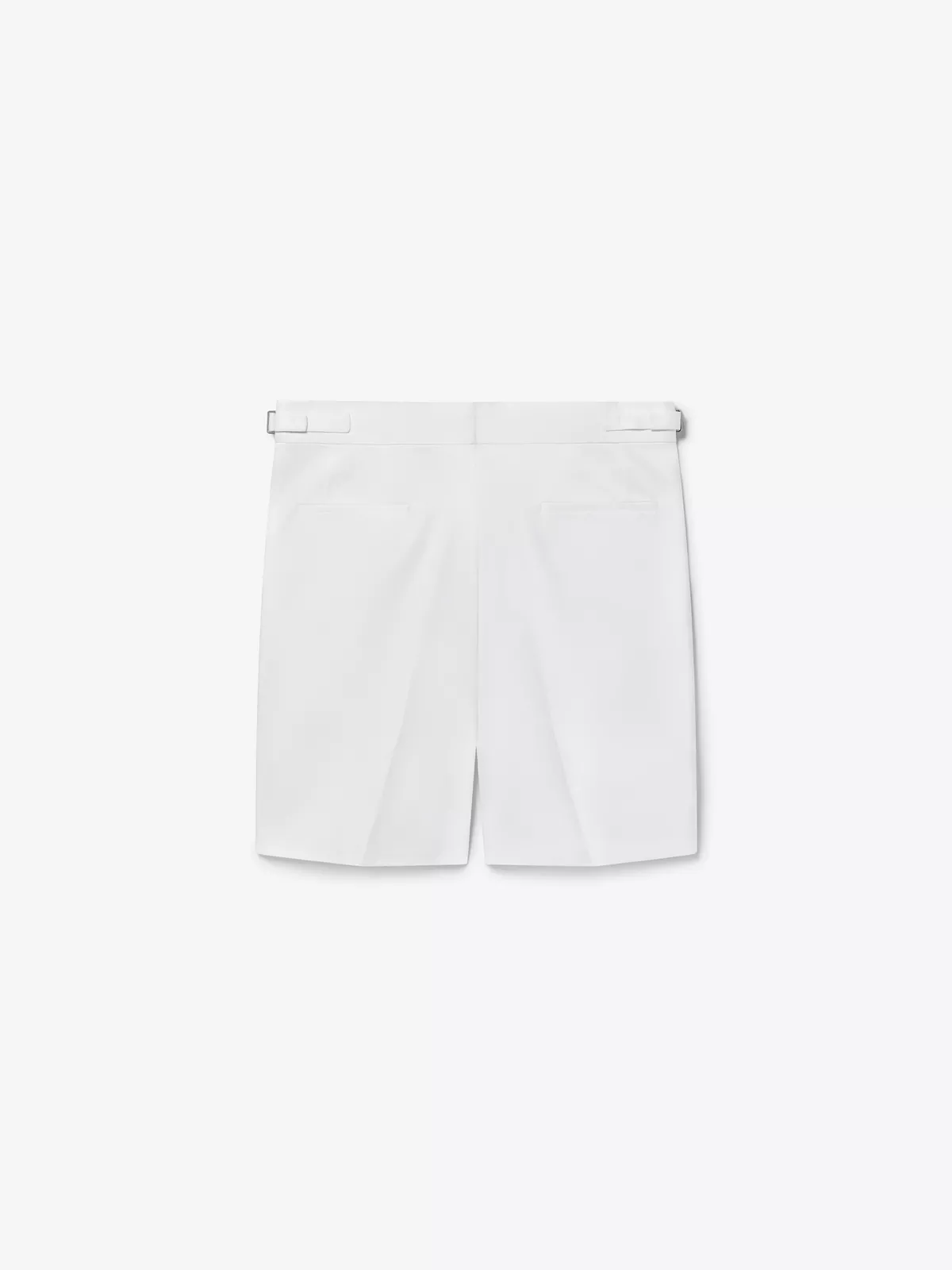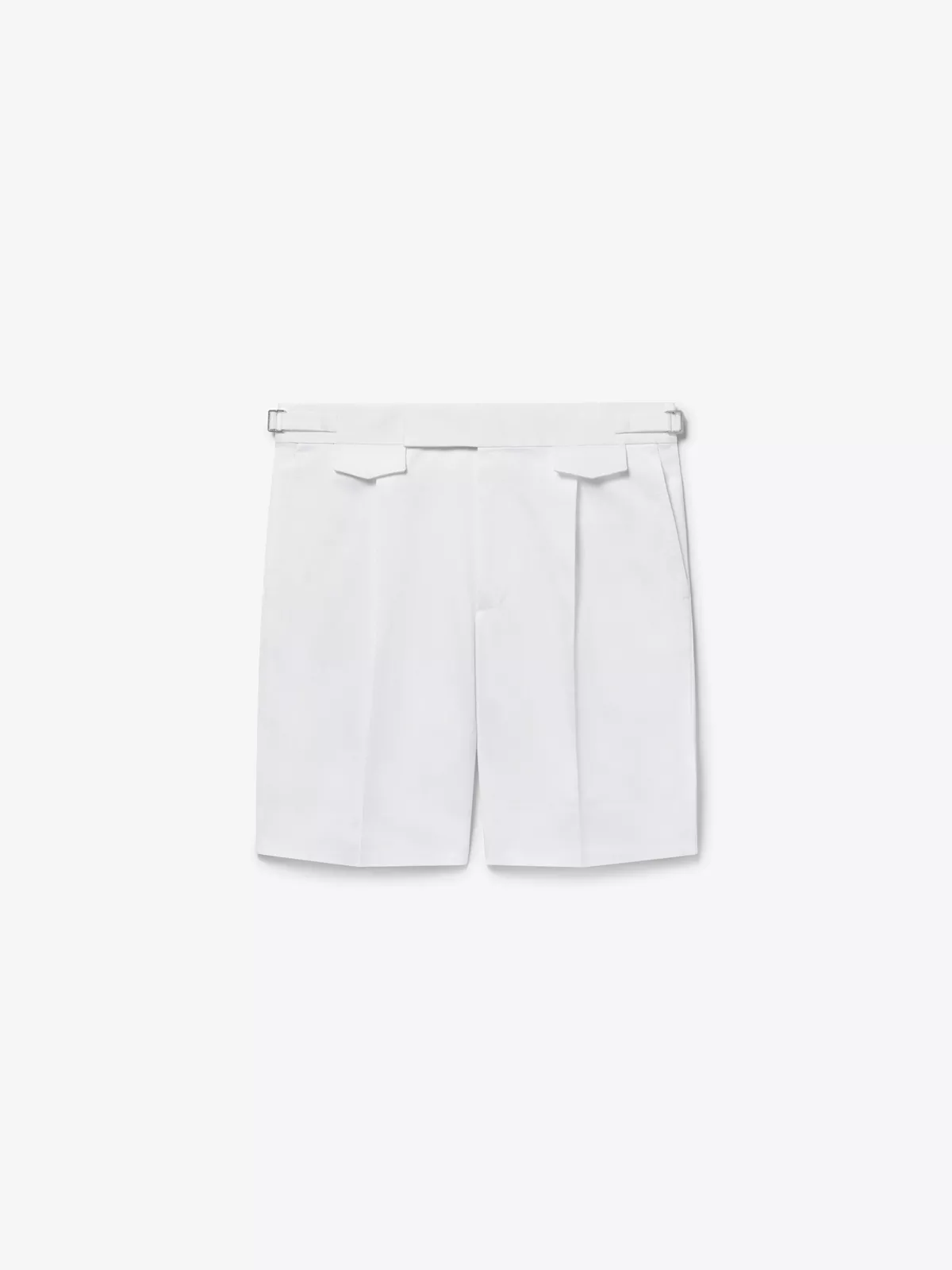 Cut from a luxury cotton gabardine, these shorts have a zip front closure, adjustable waist straps with buckle closures, and a partially concealed belt.