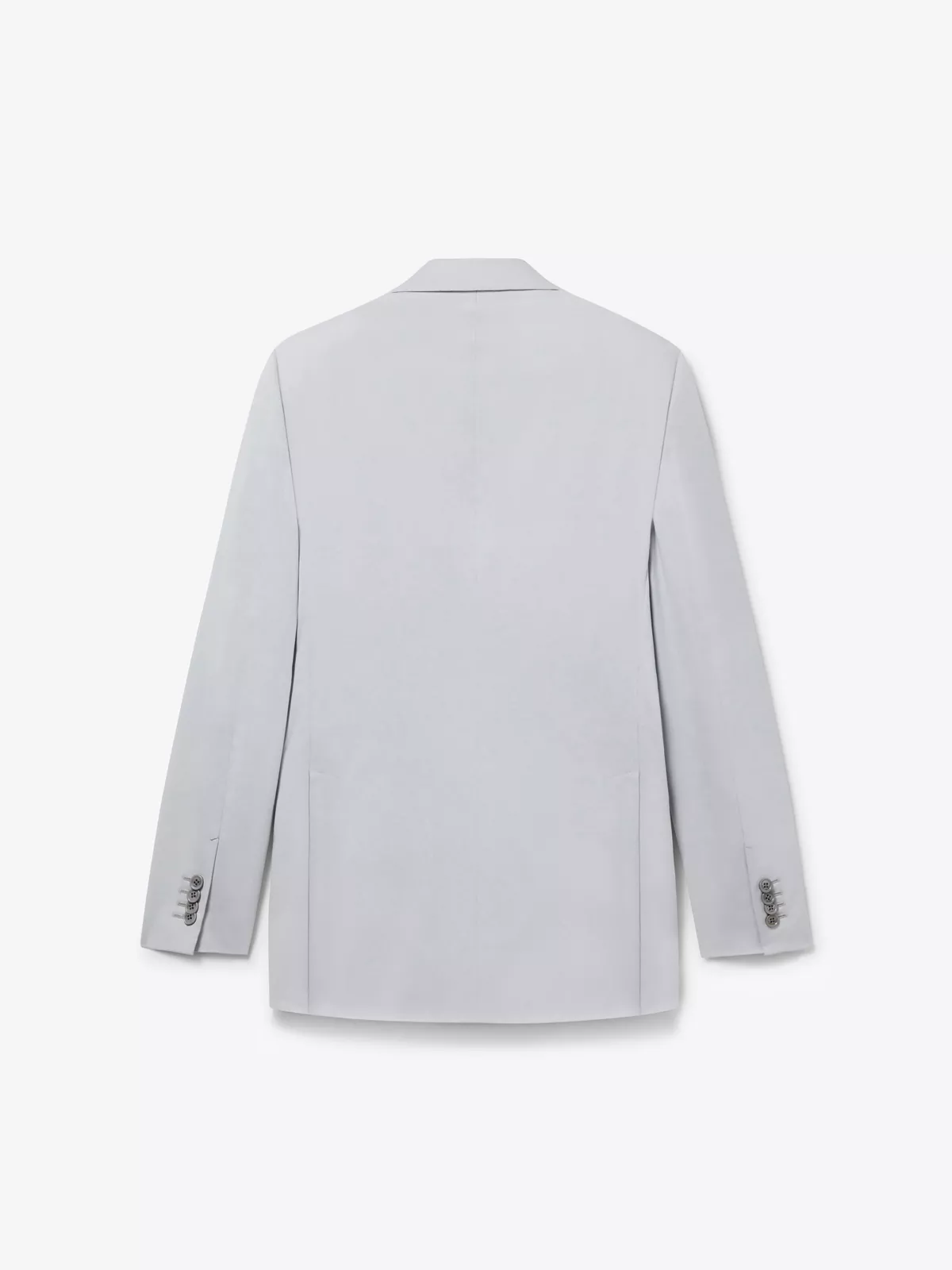 Expertly crafted from a stretch cotton blend, this suit jacket is shaped to a double-breasted silhouette, with notch lapels, saddle-stitch embroidery, and jetted side pockets and a welt chest pocket. Wear with matching cotton-blend suit trousers in stone grey.