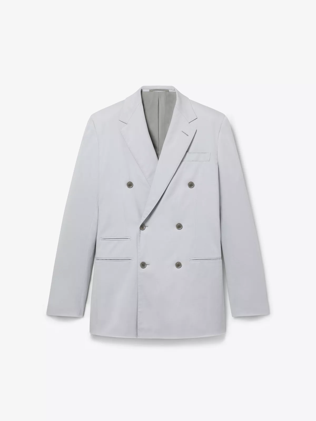 SILK-BLEND DOUBLE-BREASTED SUIT JACKET IN STONE GREY