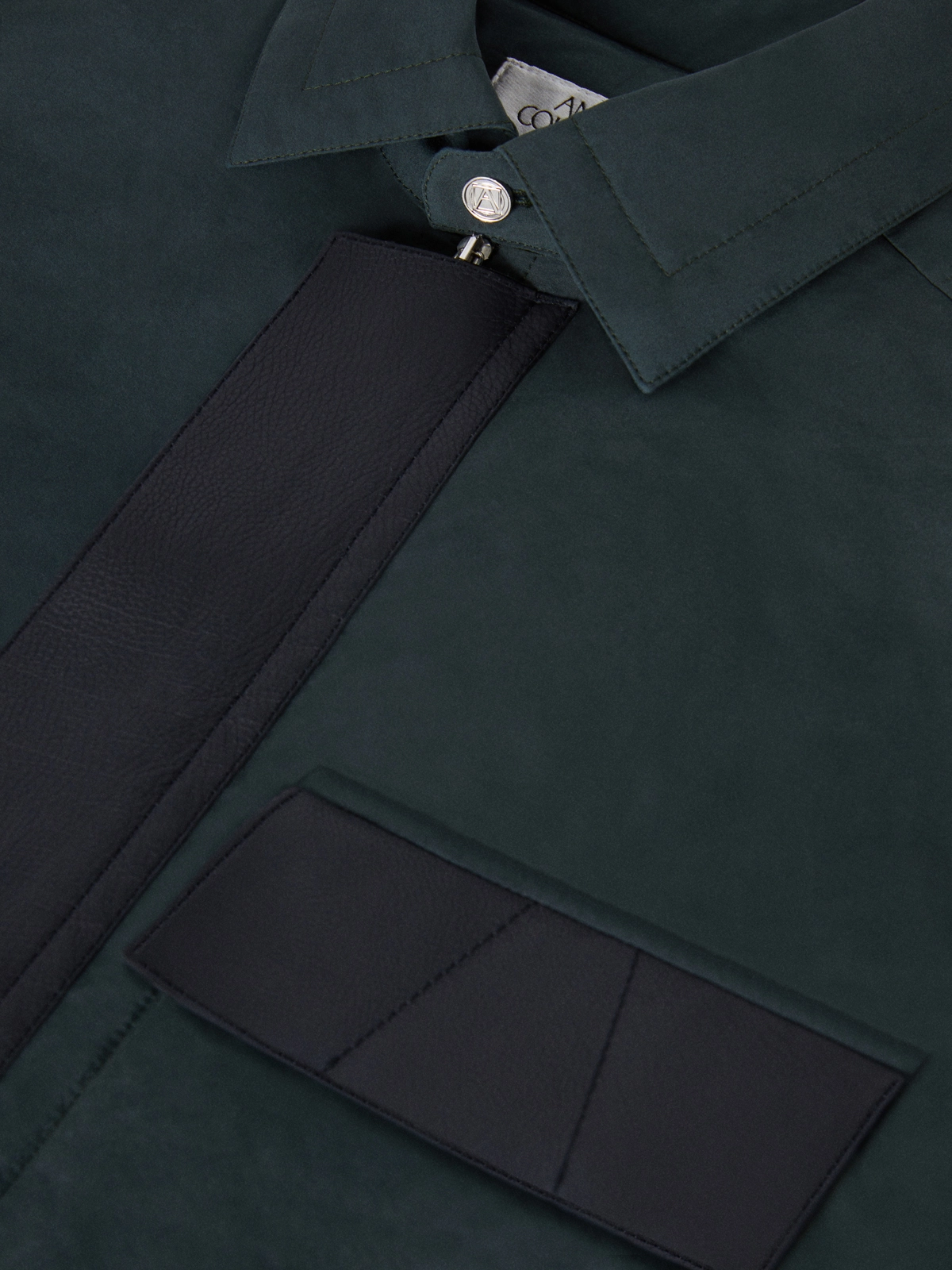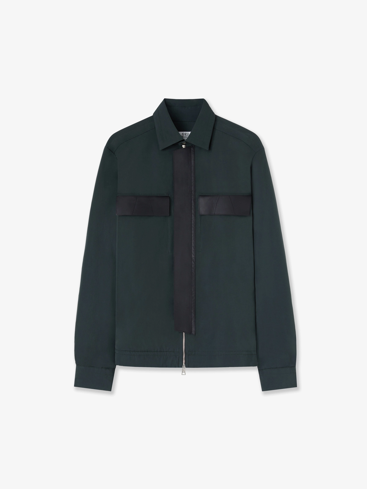 This padded shirt is crafted from cotton blend fabric with grainy calf-leather patch pockets and front-flap bonded details and a zipped closure.