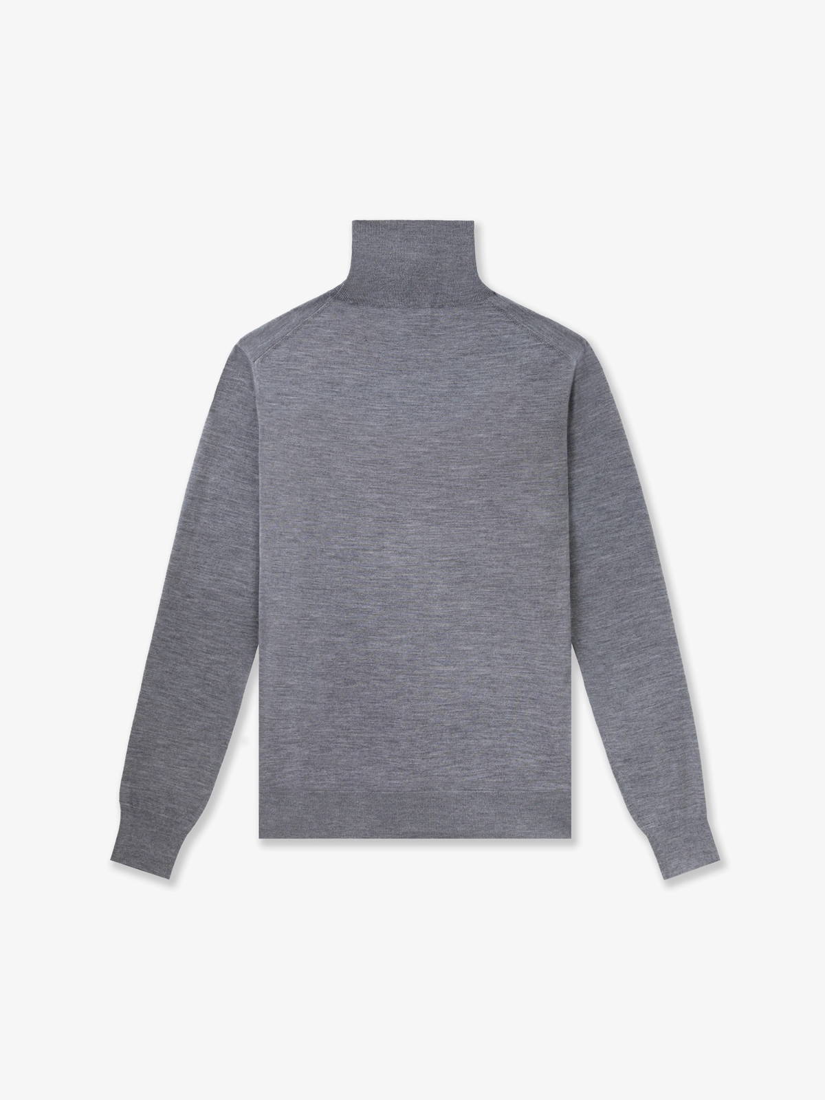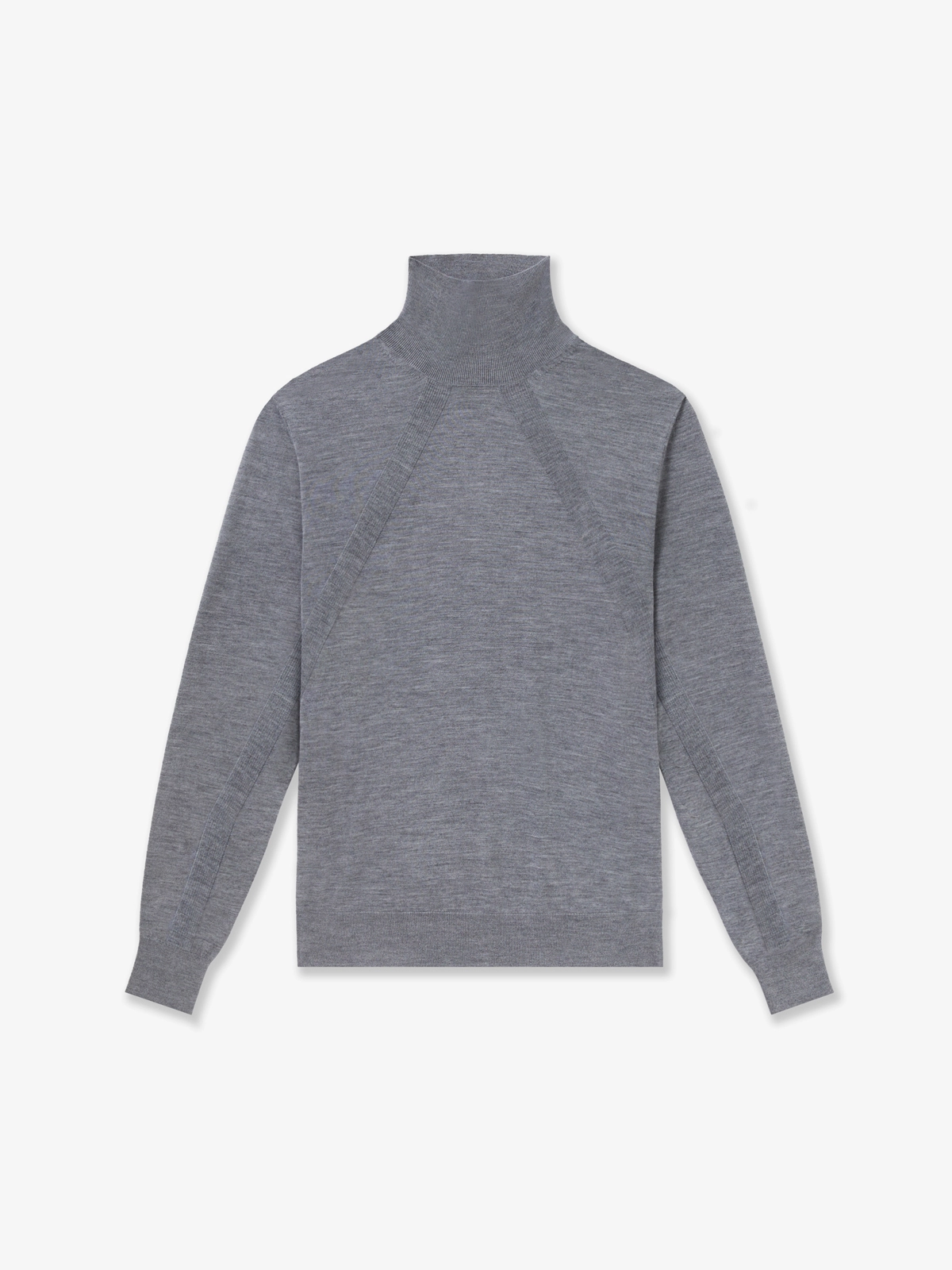 Revisited for FW22, this fine-gauge mock-neck sweater is made from a lightweight wool-silk-and-cashmere blend with a graphic ribbed detail on the arms and shoulder.