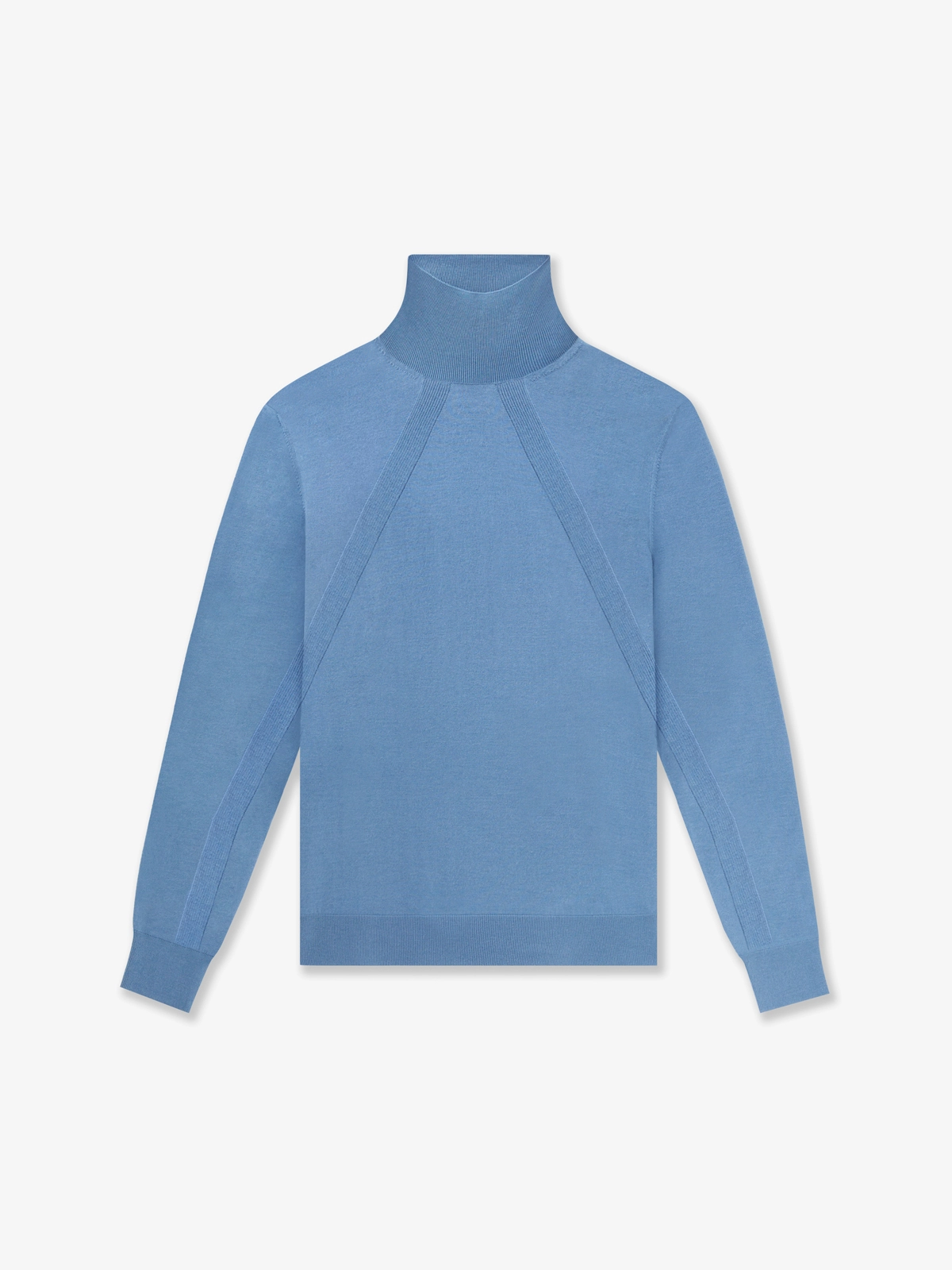 Revisited for FW22, this fine-gauge mock-neck sweater is made from a lightweight wool-silk-and-cashmere blend with a graphic ribbed detail on the arms and shoulder.