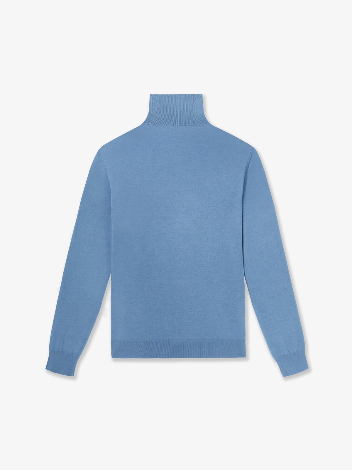 WOOL-BLEND MOCK-NECK KNIT TOP IN SMOKED PRUSSIAN
