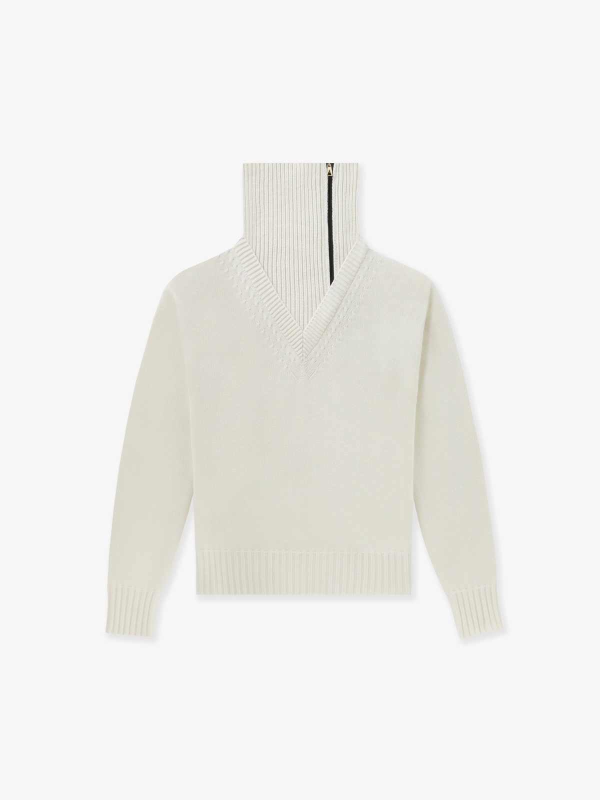 WOOL-BLEND DOUBLE-COLLAR SWEATER IN WINTER SNOW