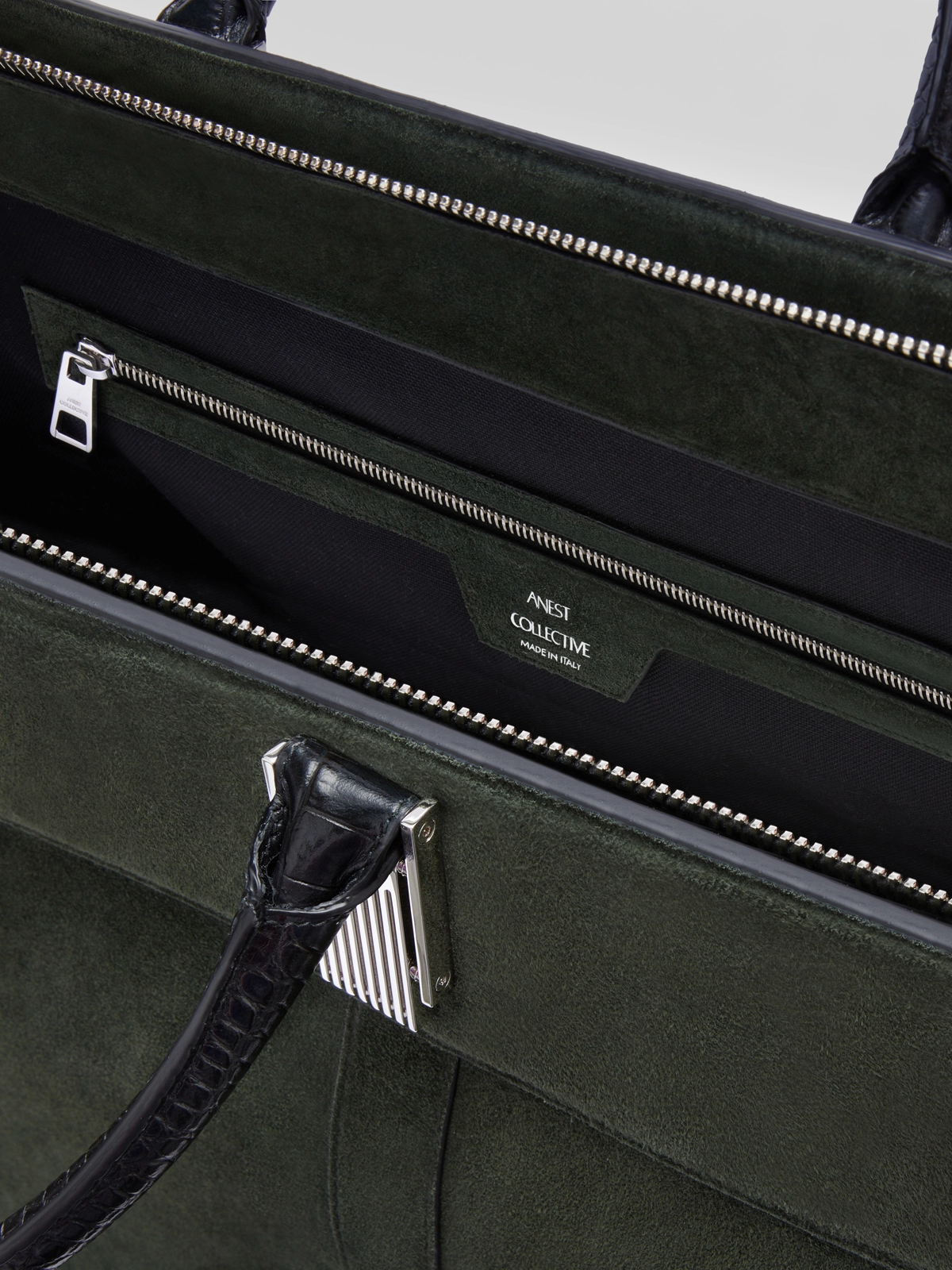 SUEDE LEATHER TRAVEL BAG IN FOREST GREEN & ANTHRACITE