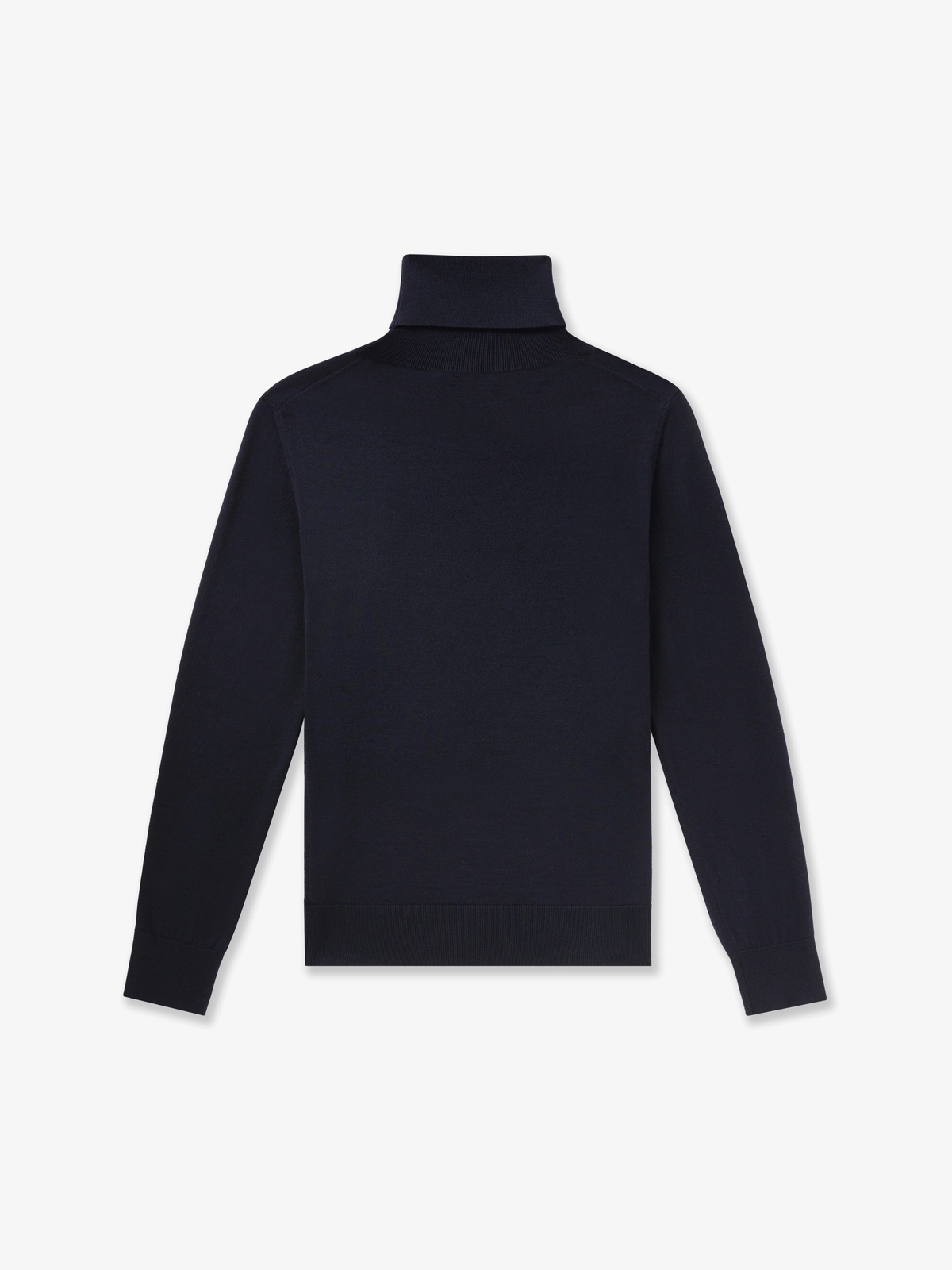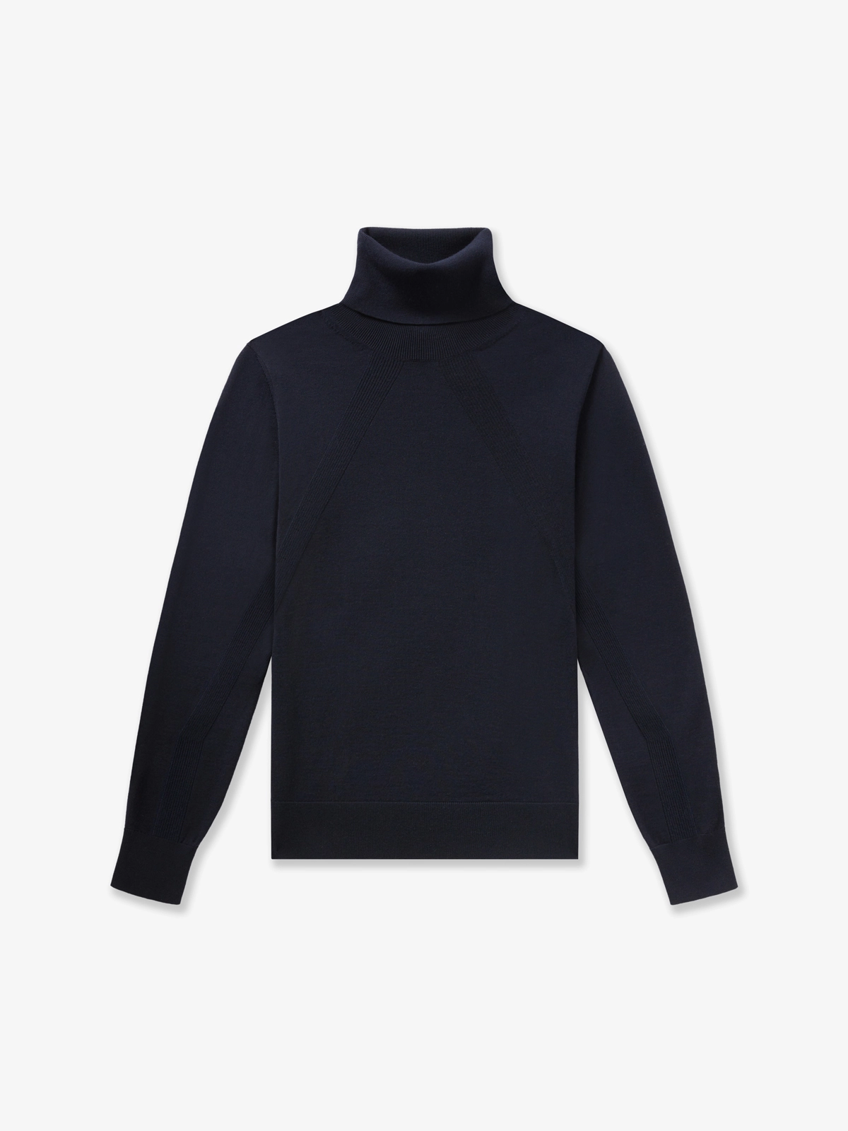 Revisited for FW22, this classic fine-gauge turtleneck top is made from a lightweight wool-silk-and-cashmere blend with rib-stitched details.