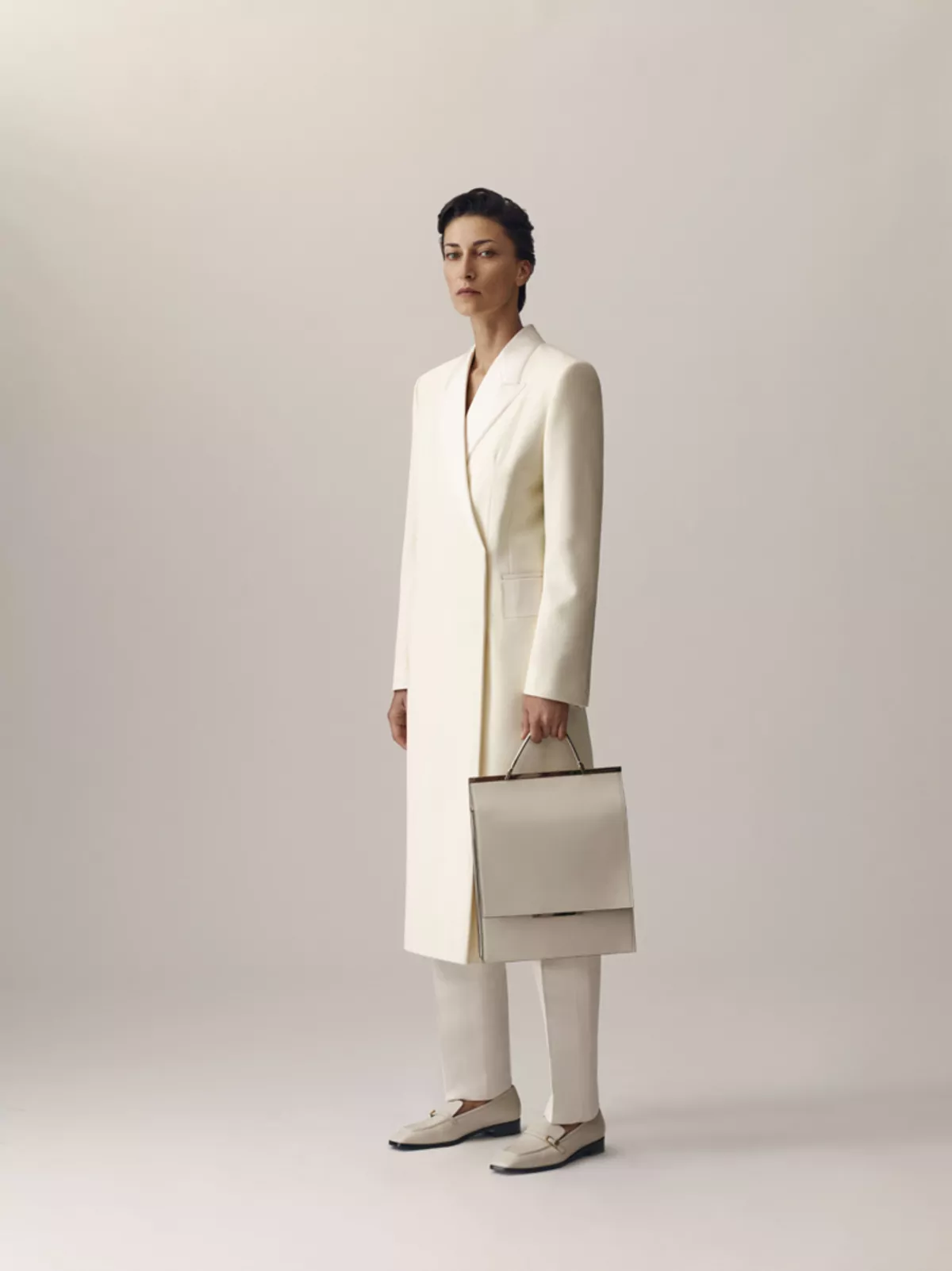 WOOL-BLEND DOUBLE- BREASTED COAT IN IVORY