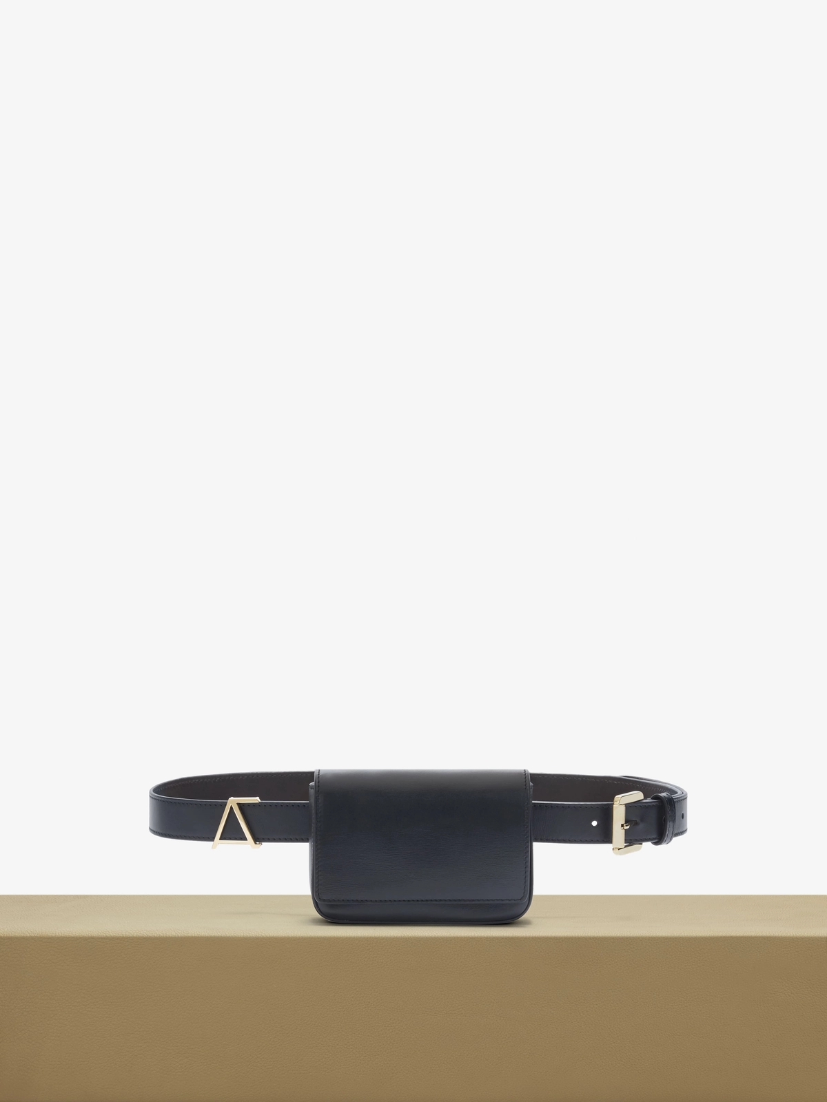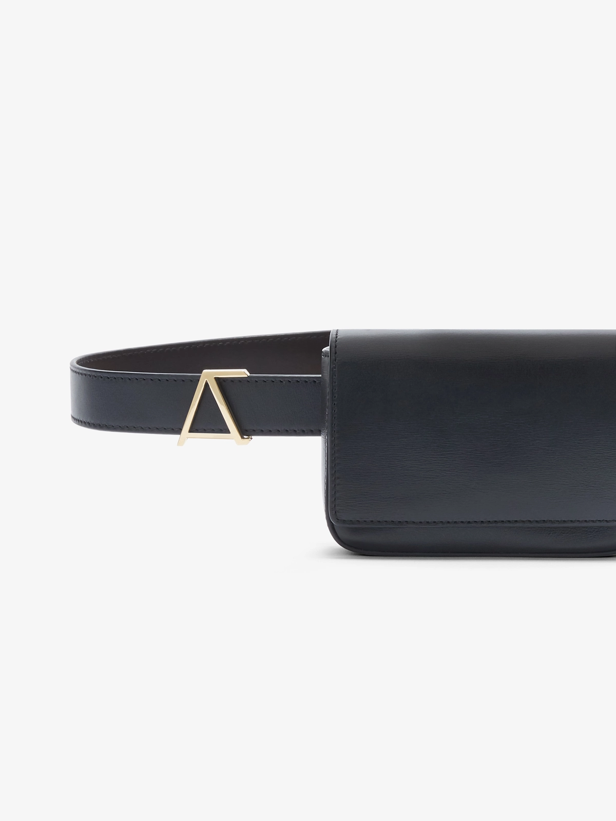 Crafted in Italy from smooth calfskin, this belt bag features a structured flap closure with a clean, compartment-free interior, secured by a buckle fastening.