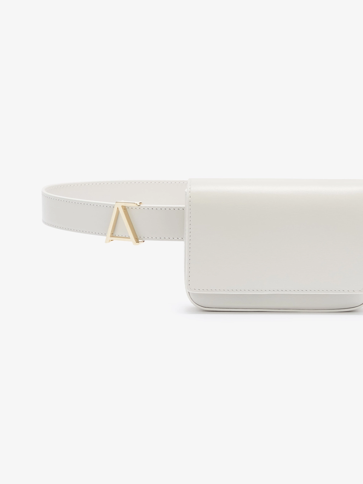 Crafted in Italy from smooth calfskin, this belt bag features a structured flap closure with a clean, compartment-free interior, secured by a buckle fastening.