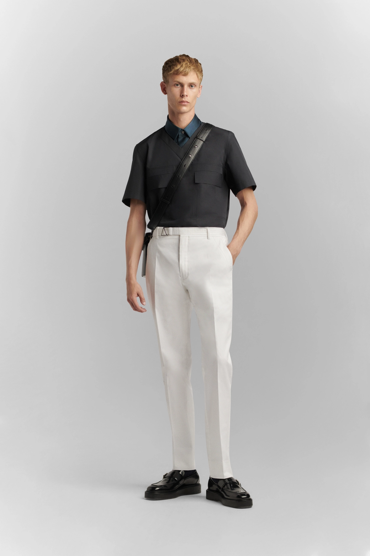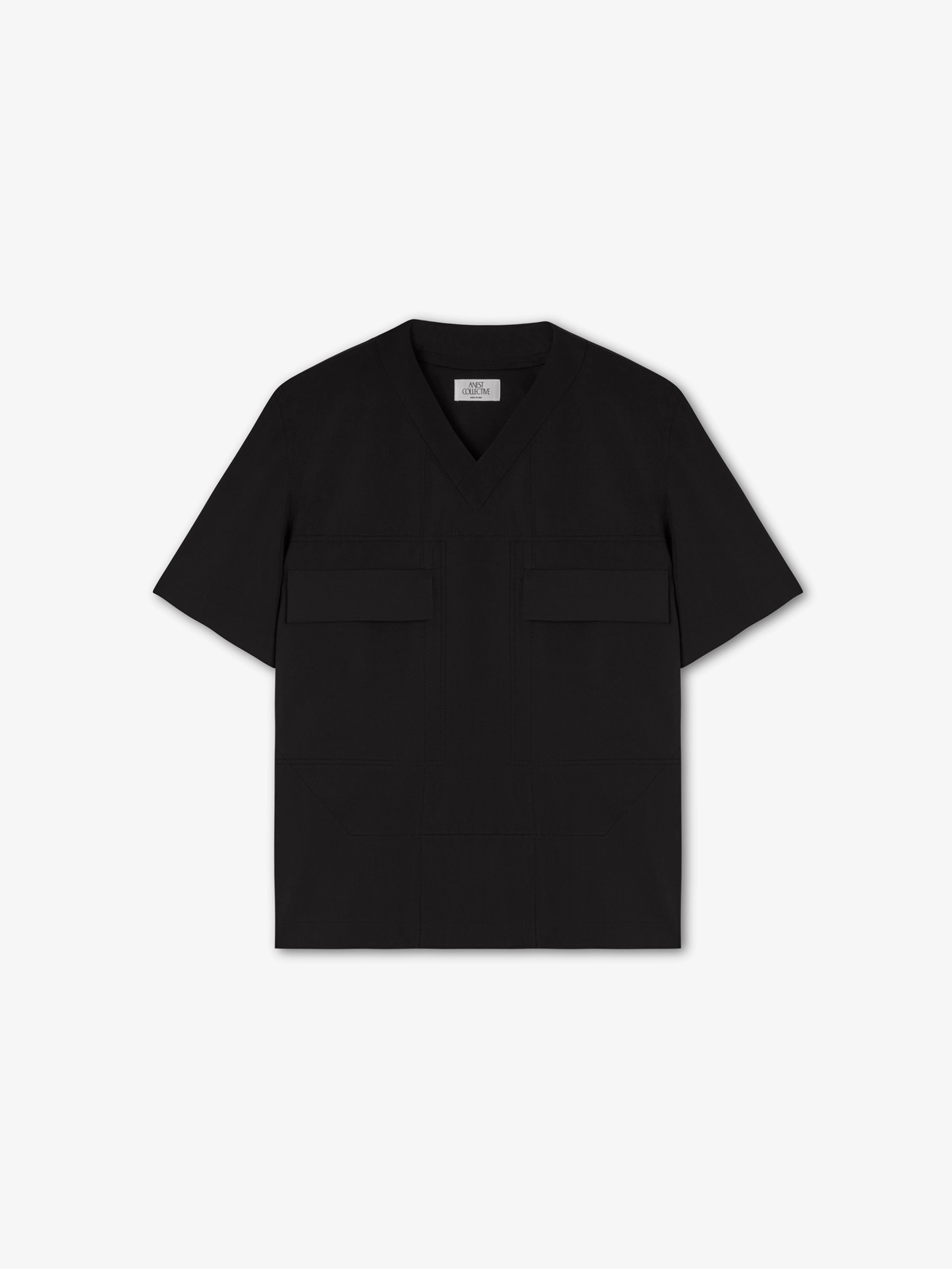 This V-Neck shirt is crafted from a fine cotton popeline, it has a boxy fit, a front pocket and a special silver top stitching with graphic design.