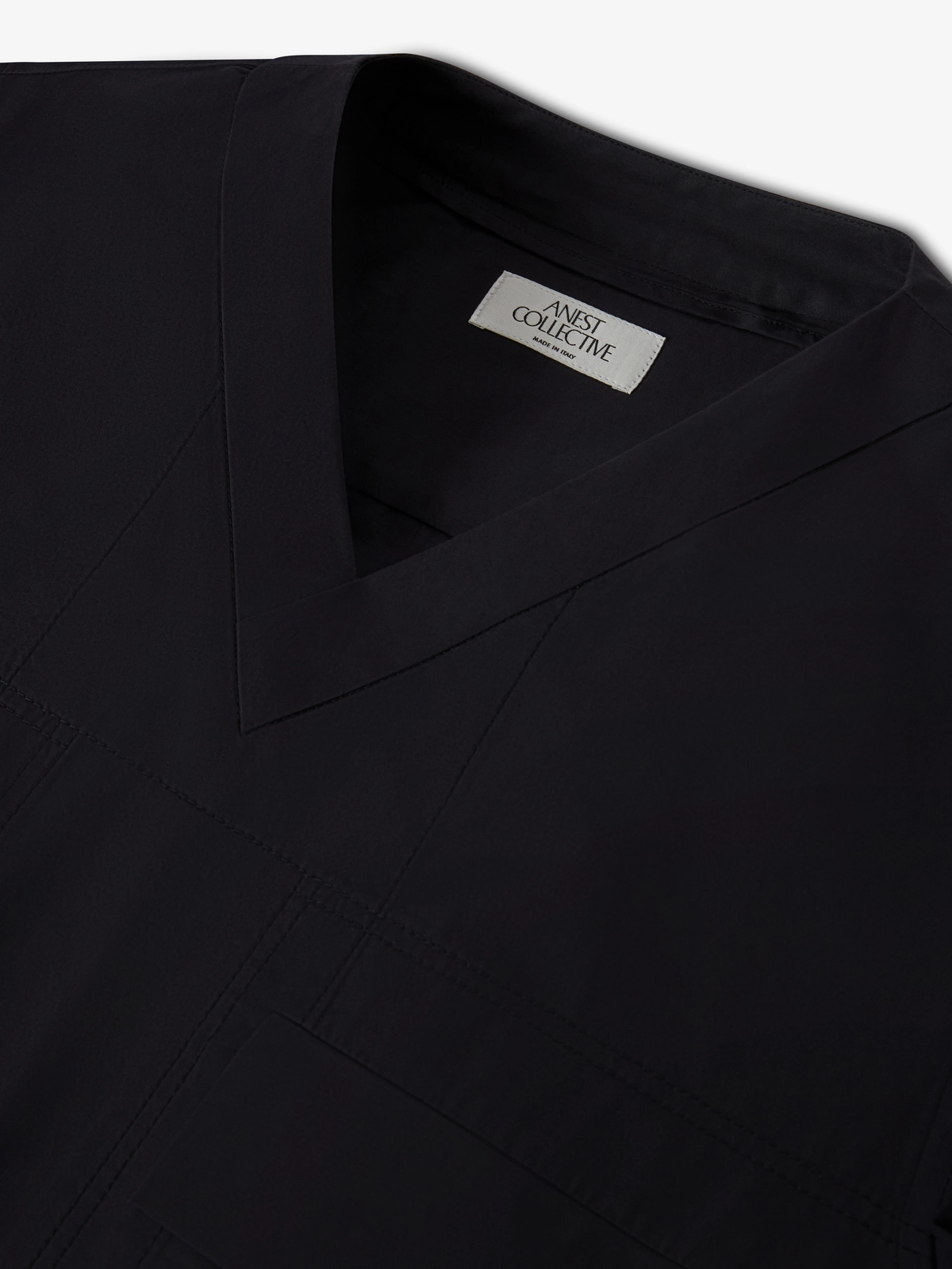 COTTON POPELINE V-NECK SHIRT (FARE PROVA CUCITURE ARGENTO) IN MIDNIGHT BLUE