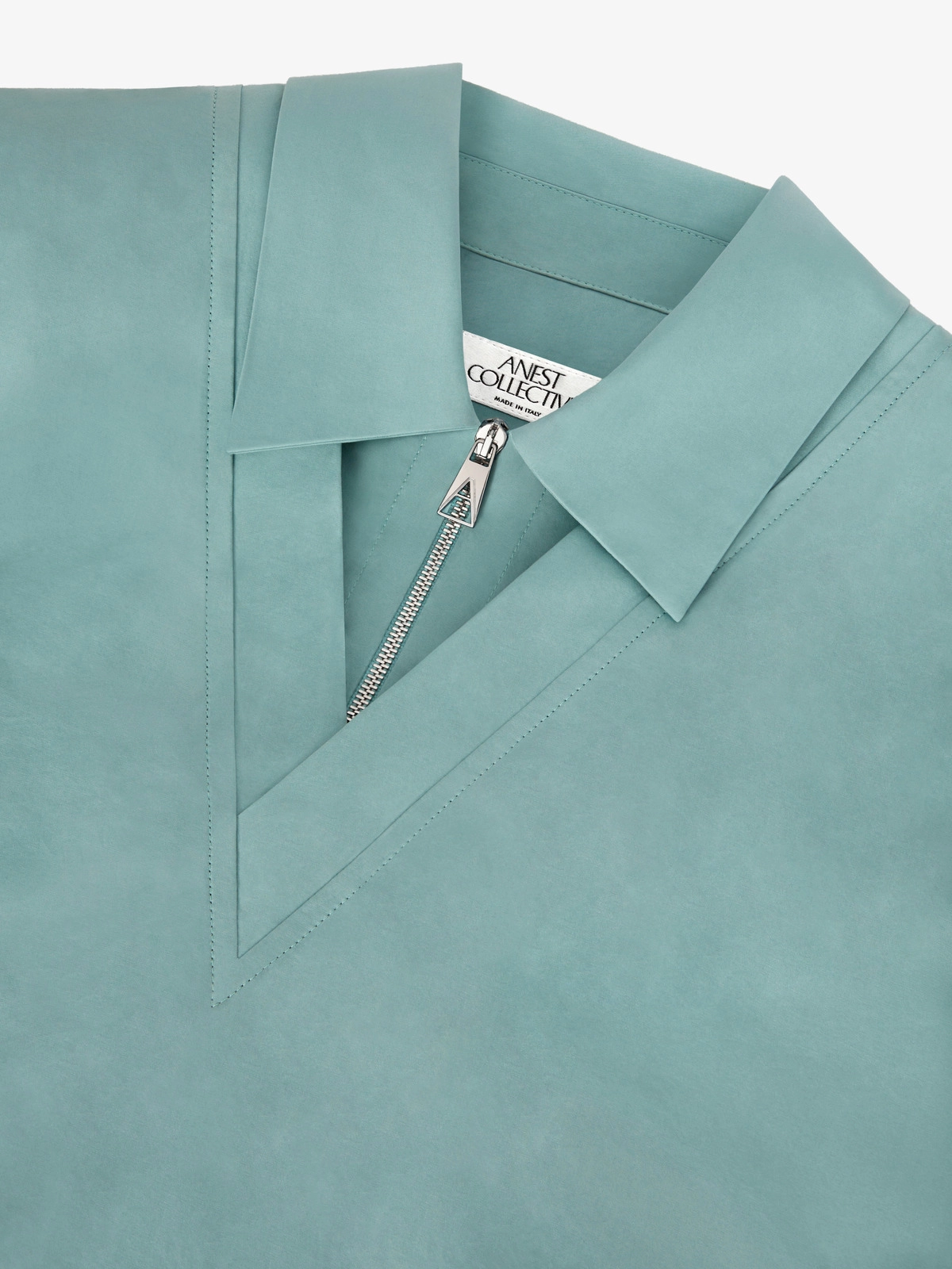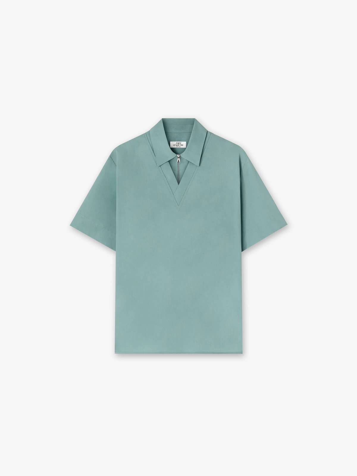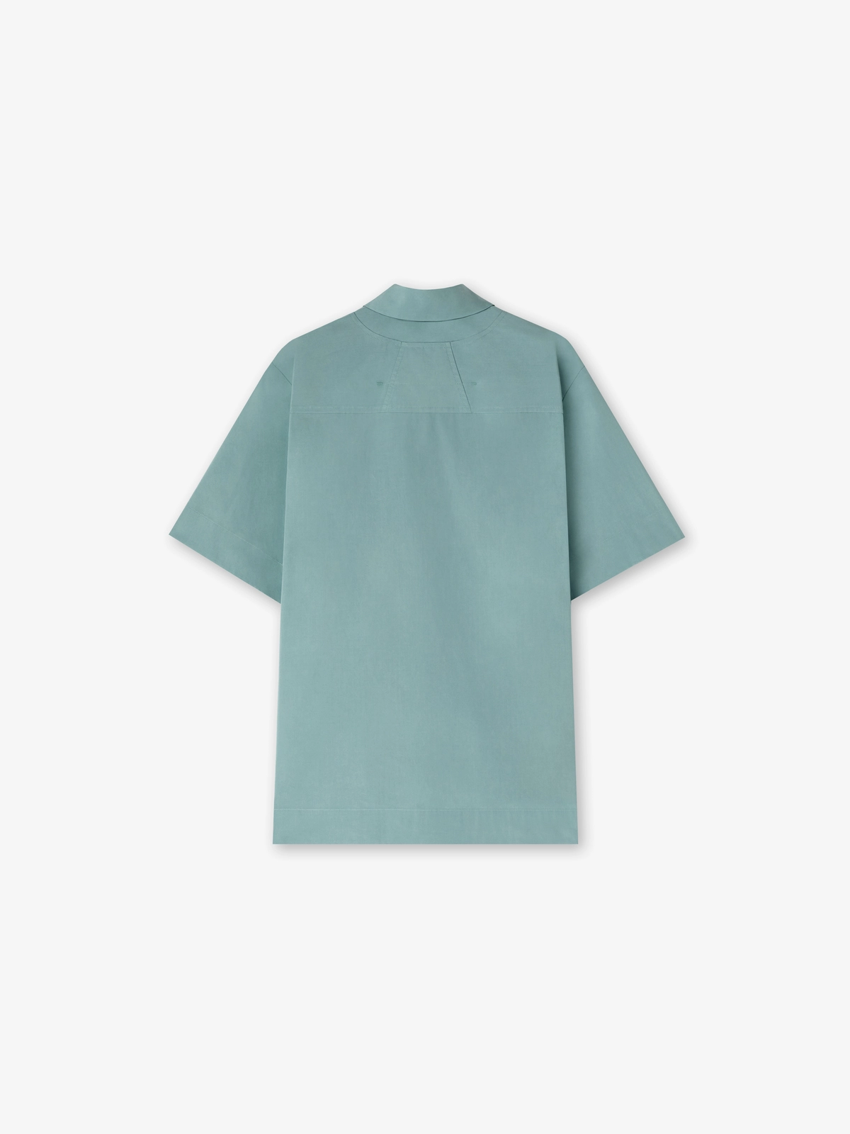 COTTON POPELINE DOUBLE COLLAR BOXY SHIRT IN EUCALIPTUS