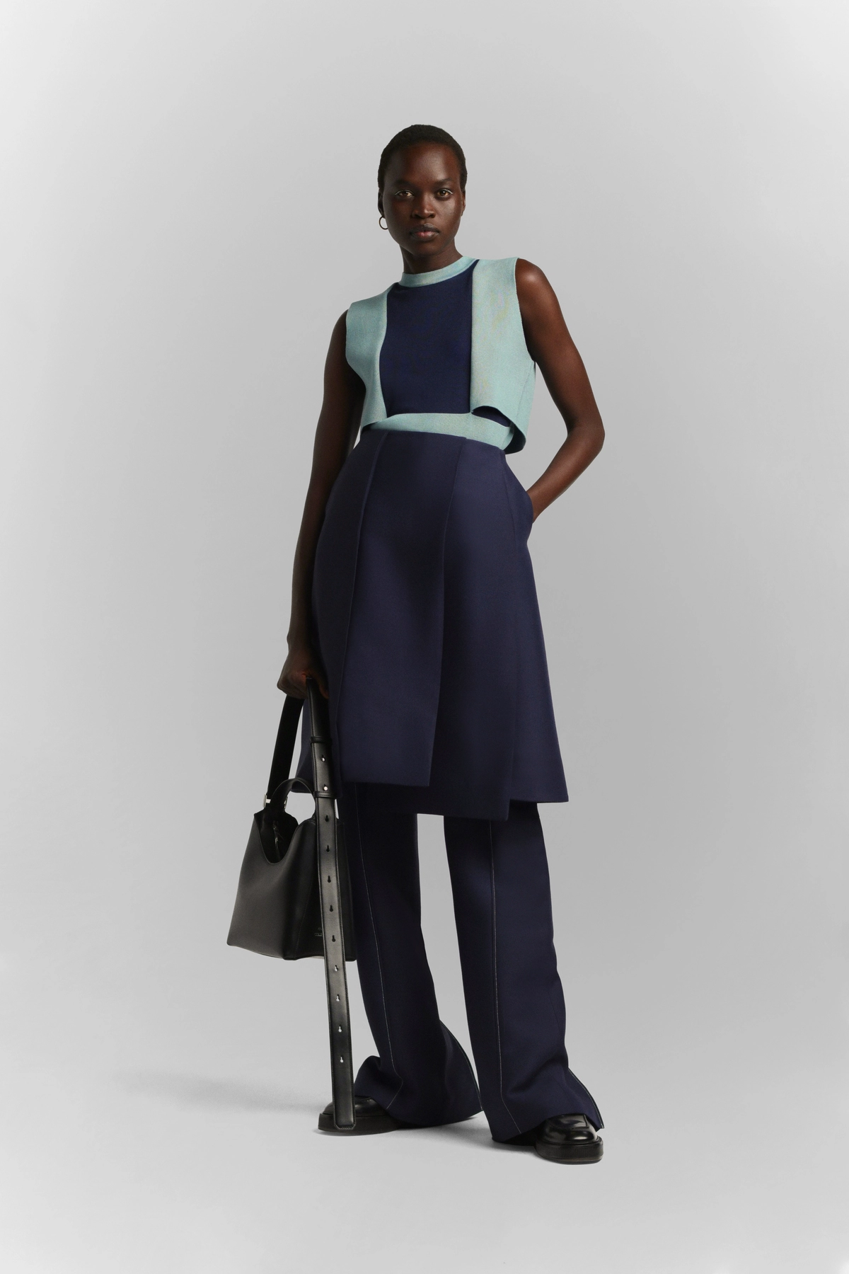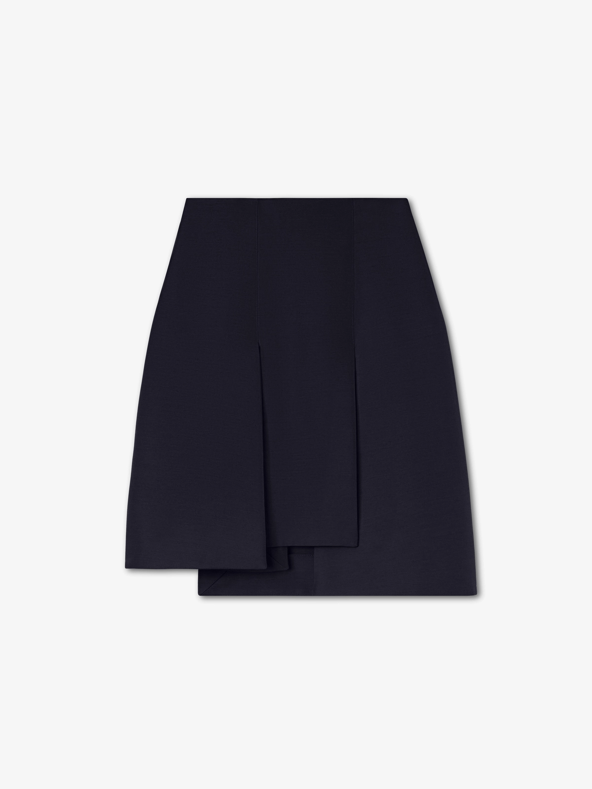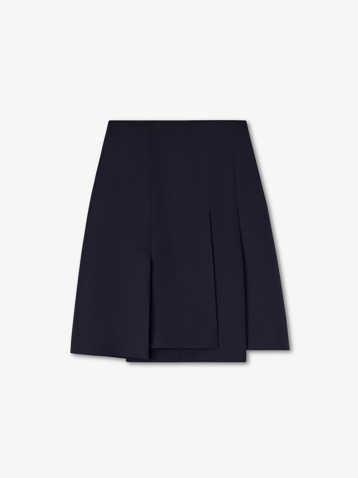 WOOL SILK CADI MULTI-PANEL SKIRT IN MIDNIGHT BLUE