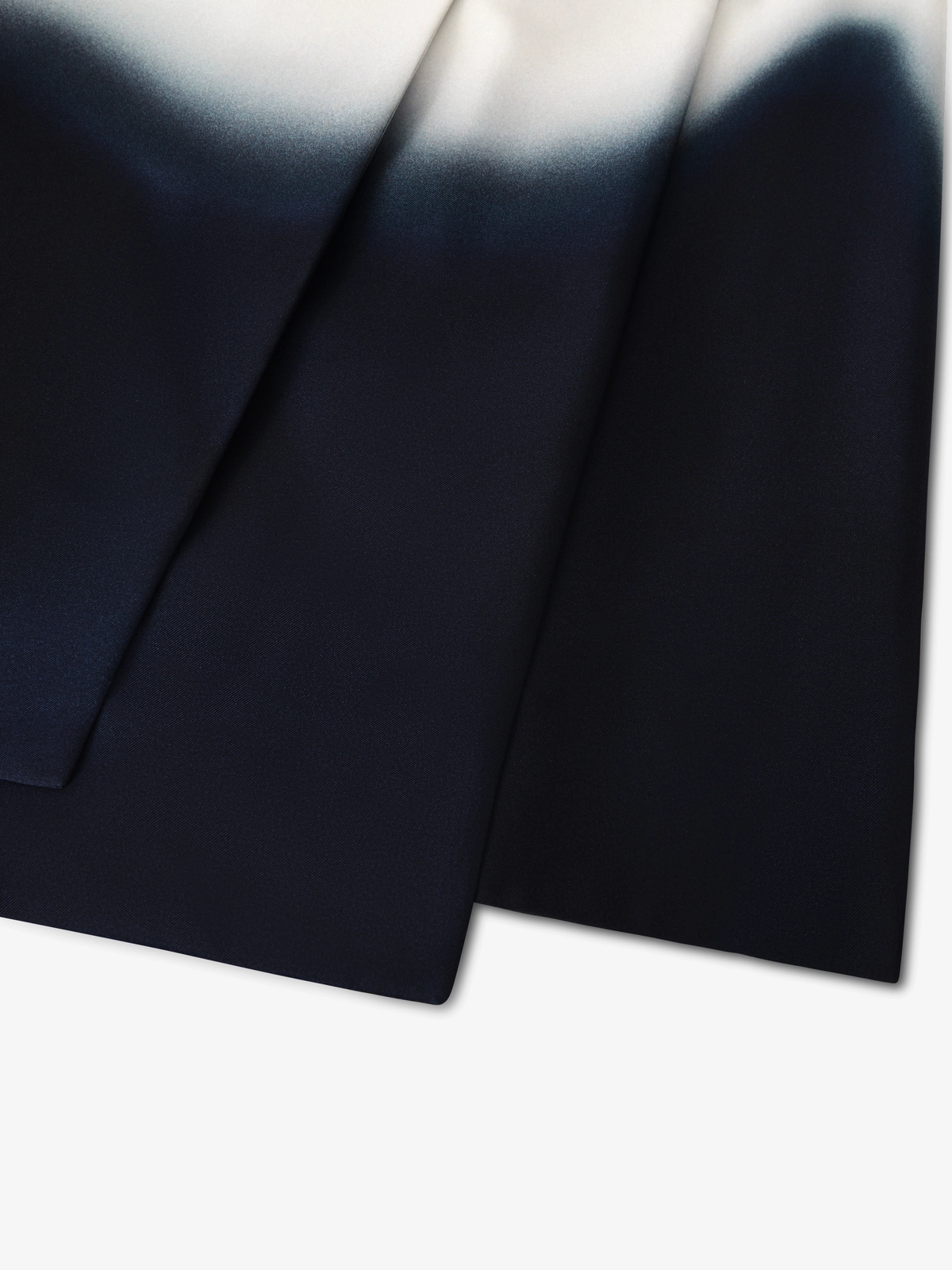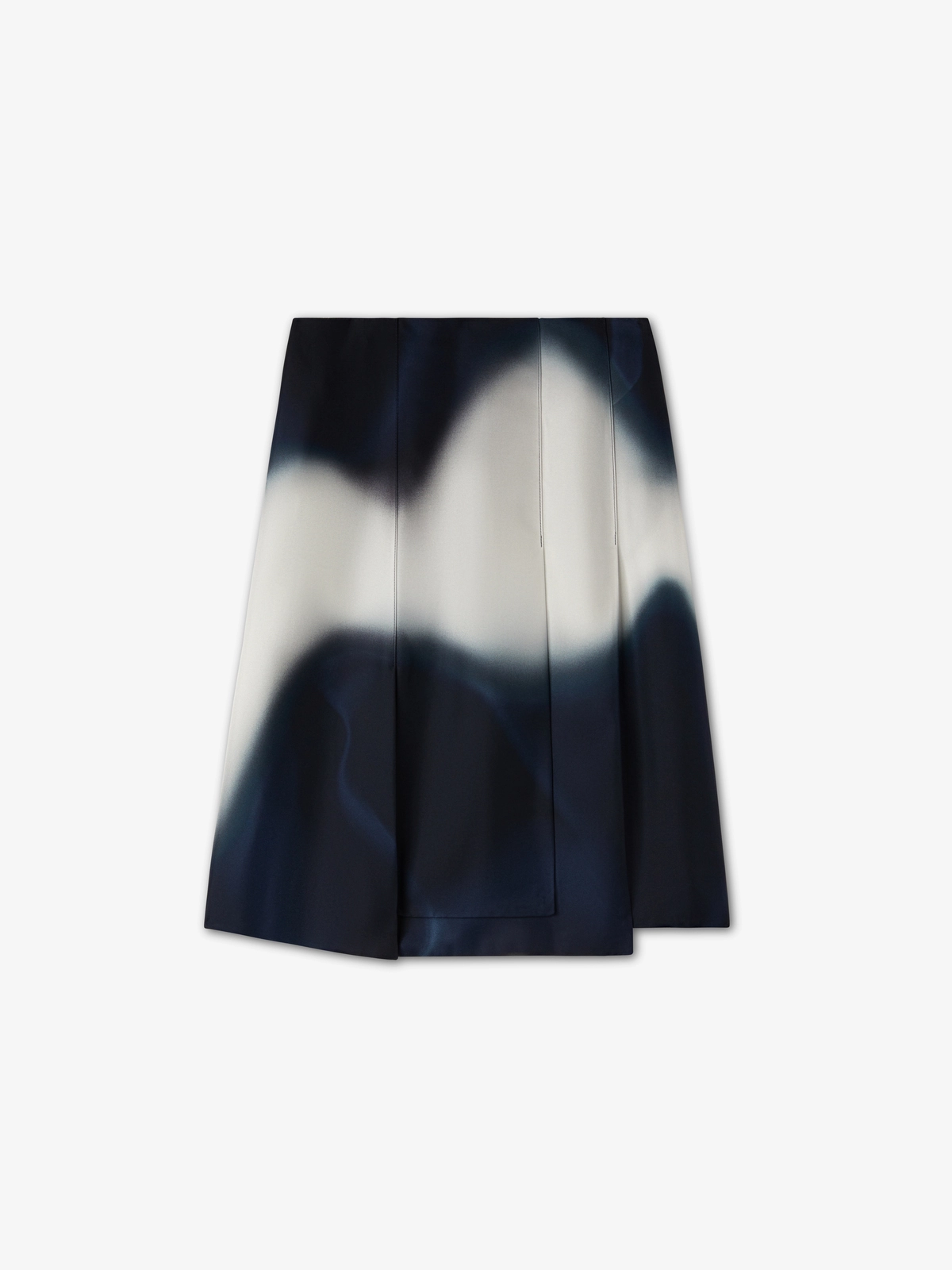 PRINTED SILK TWILL MULTILAYERED SKIRT IN MIDNIGHT BLUE