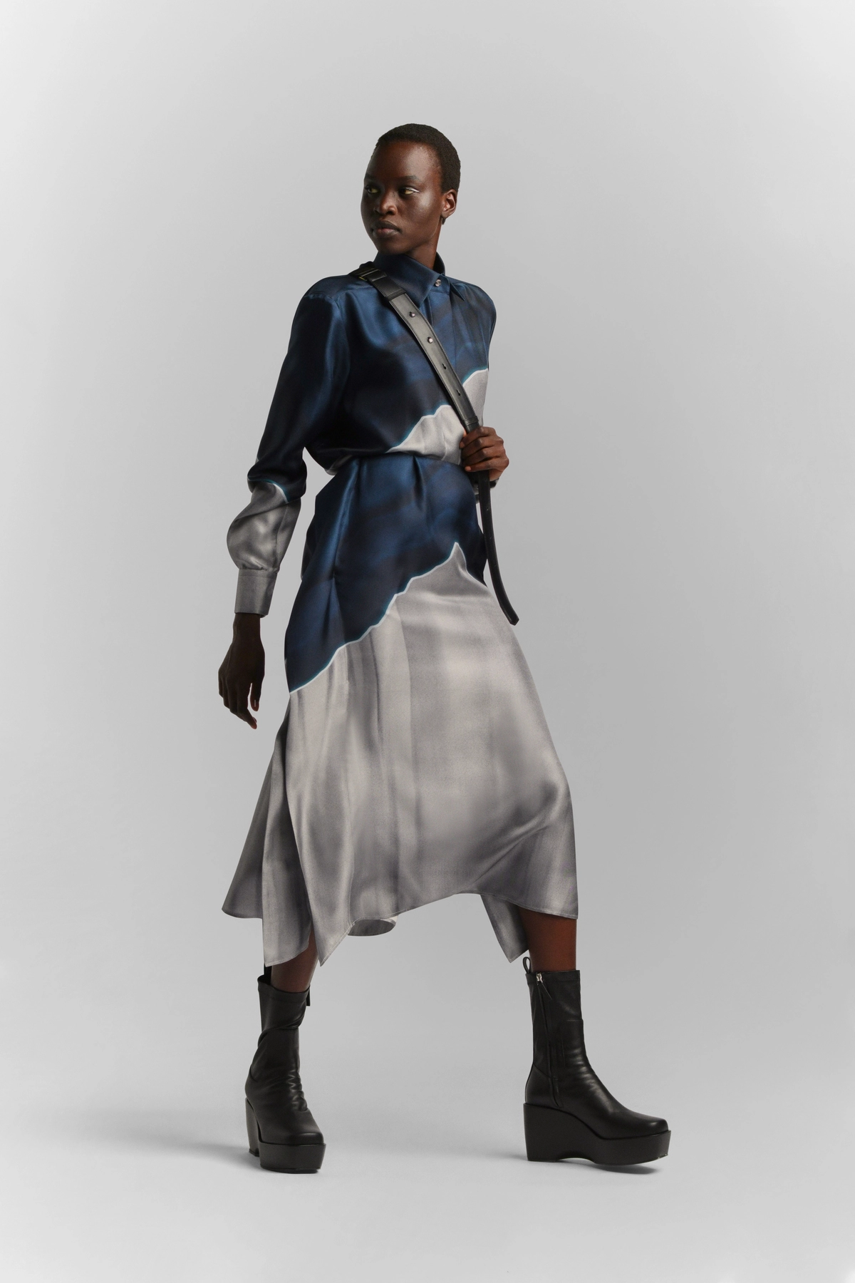 This Long sleeves shirt has a slight boxy fit and is made from a silk twill with an exclusive placed abstract print.