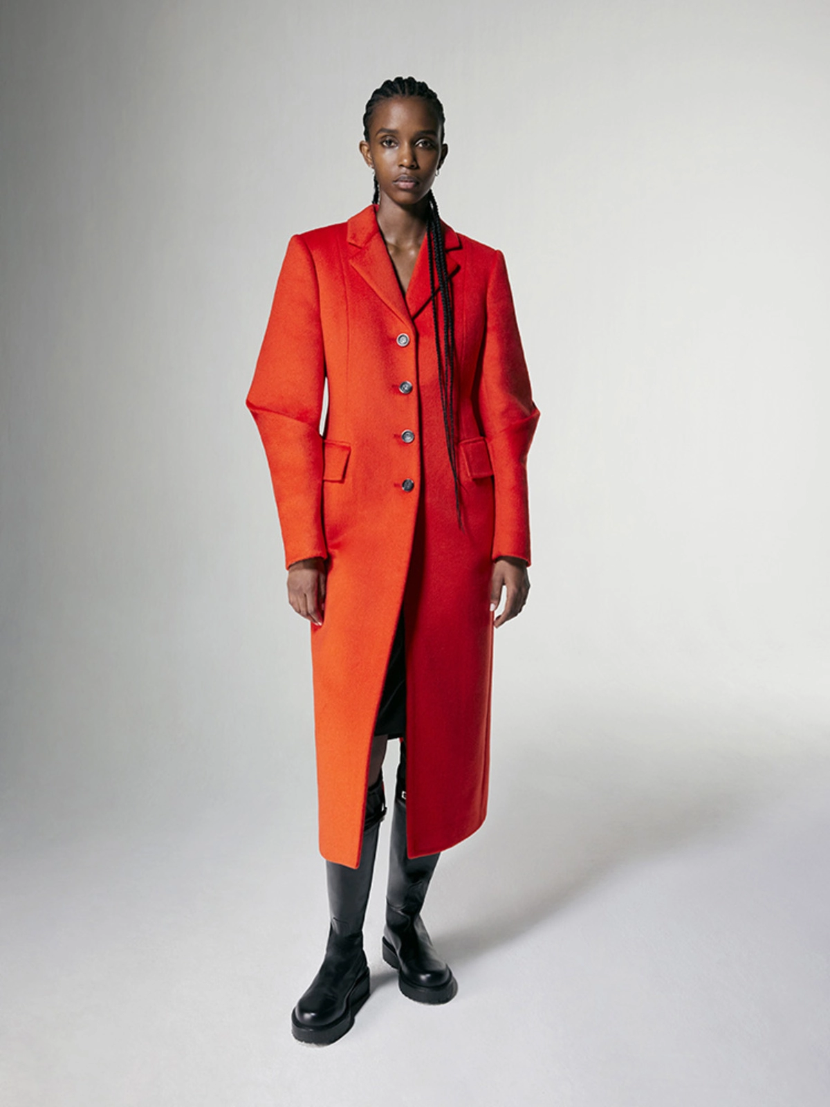 CASHMERE-BLEND COAT IN ORANGE/MINK CAMEL