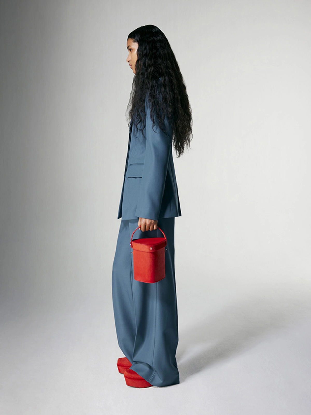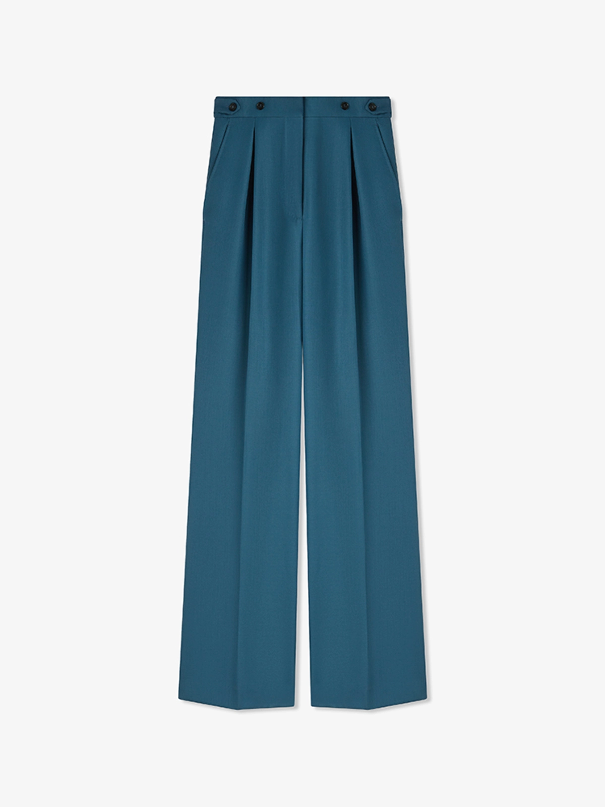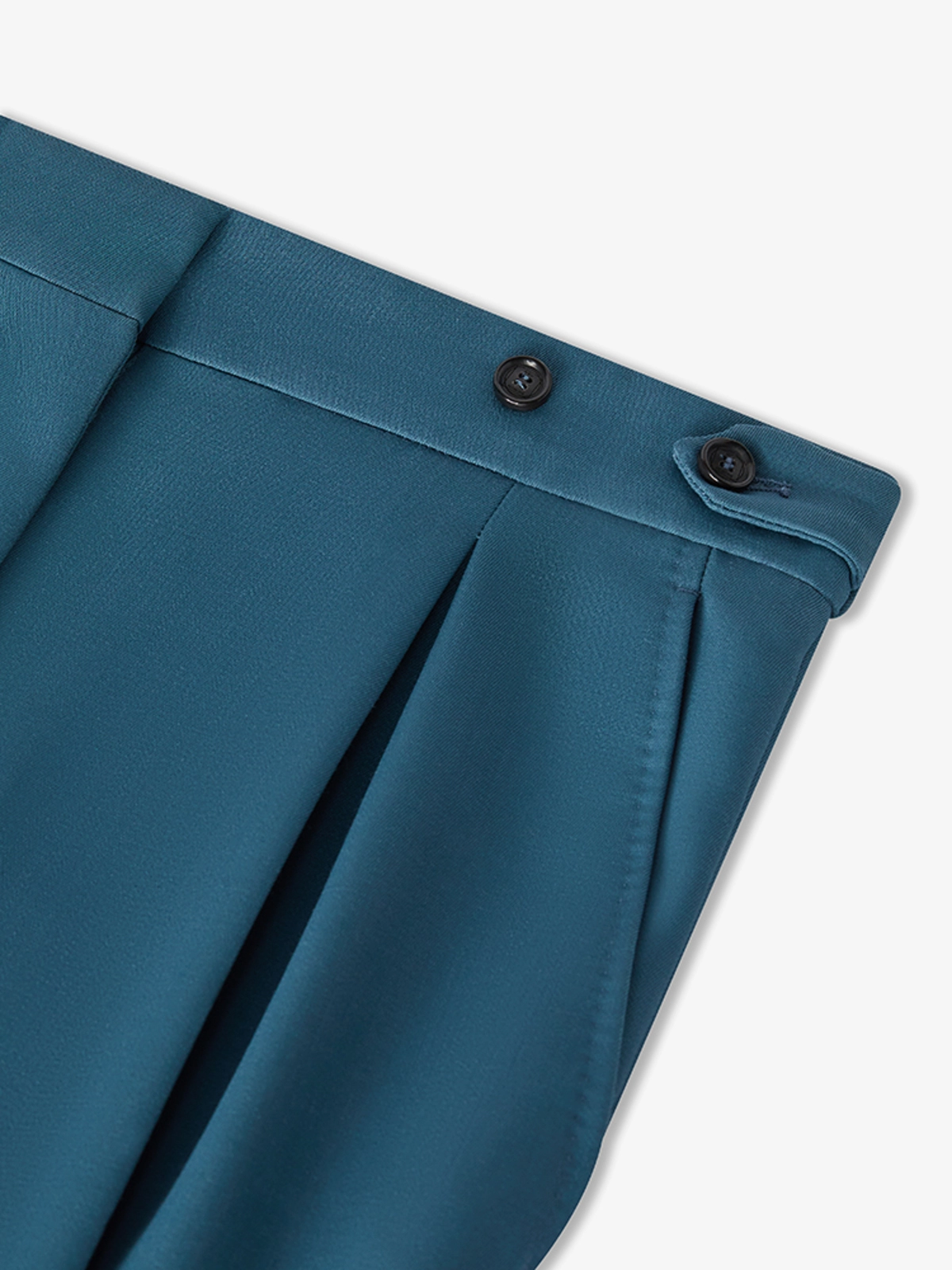 Medium-fit, front-pleat wool-mohair trousers with waist adjusters and back belt loop details.