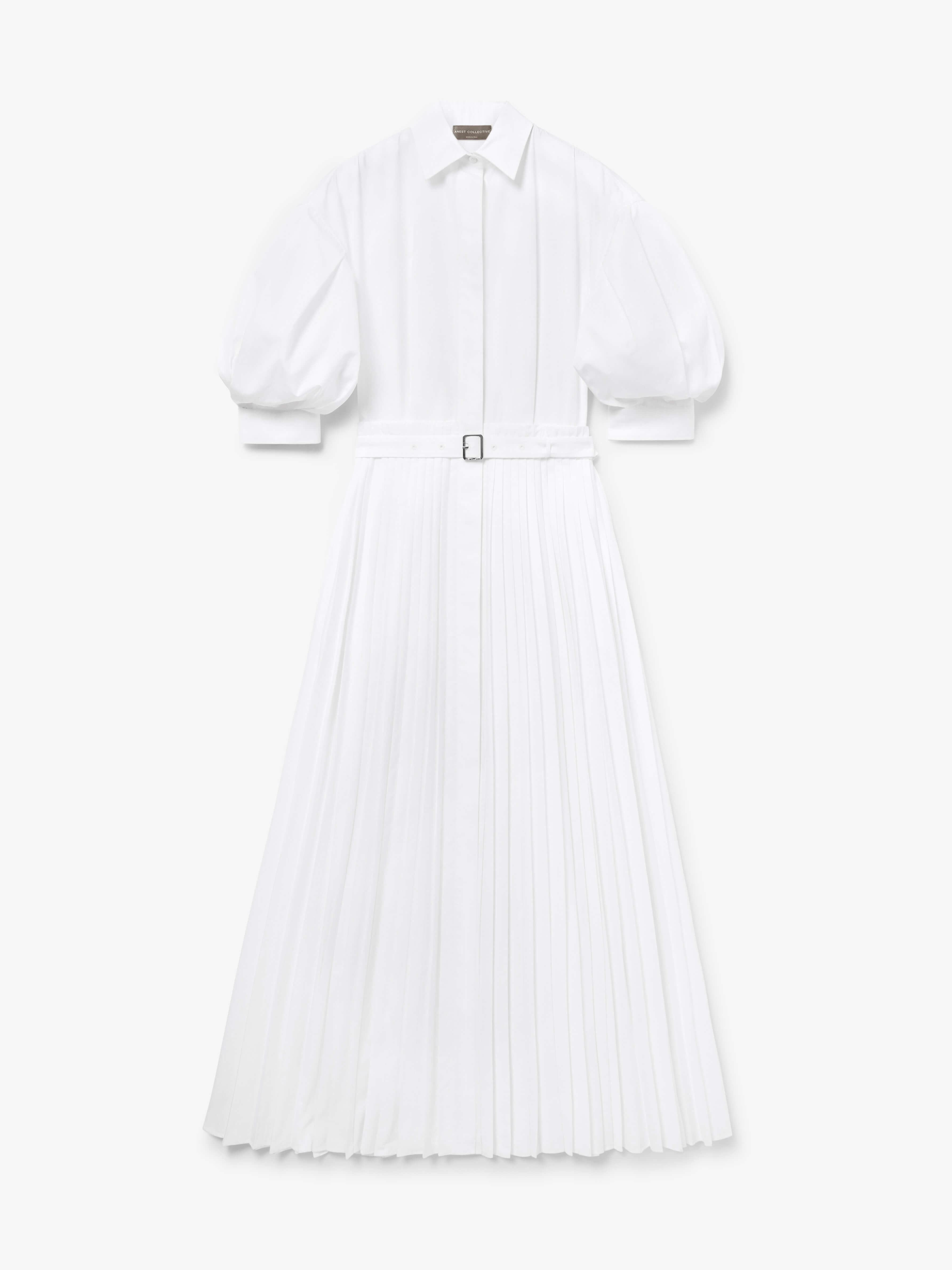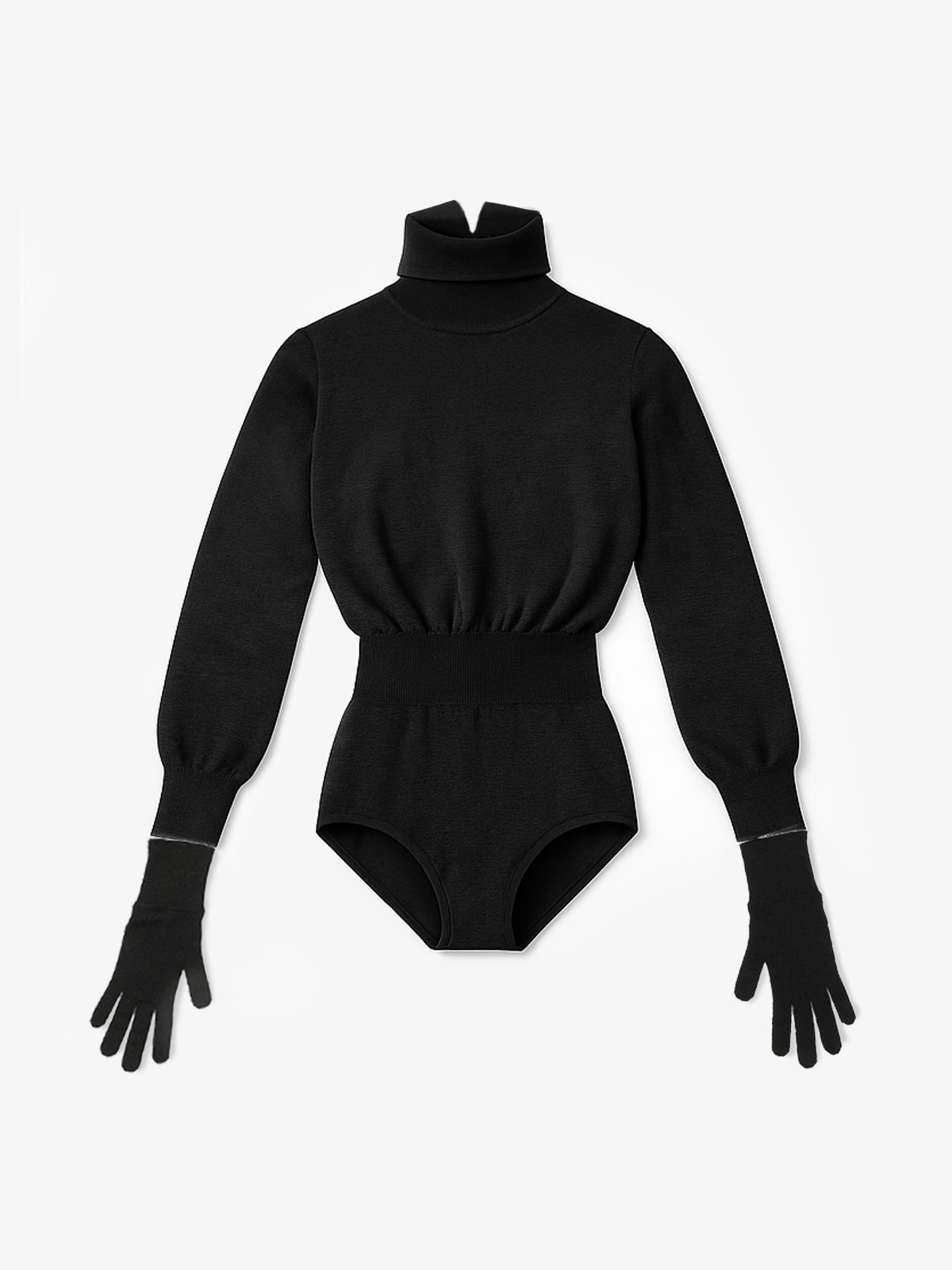 图中艺术家身着:白色褶裥衬衫长裙 / 黑色羊毛桑蚕丝连体衣