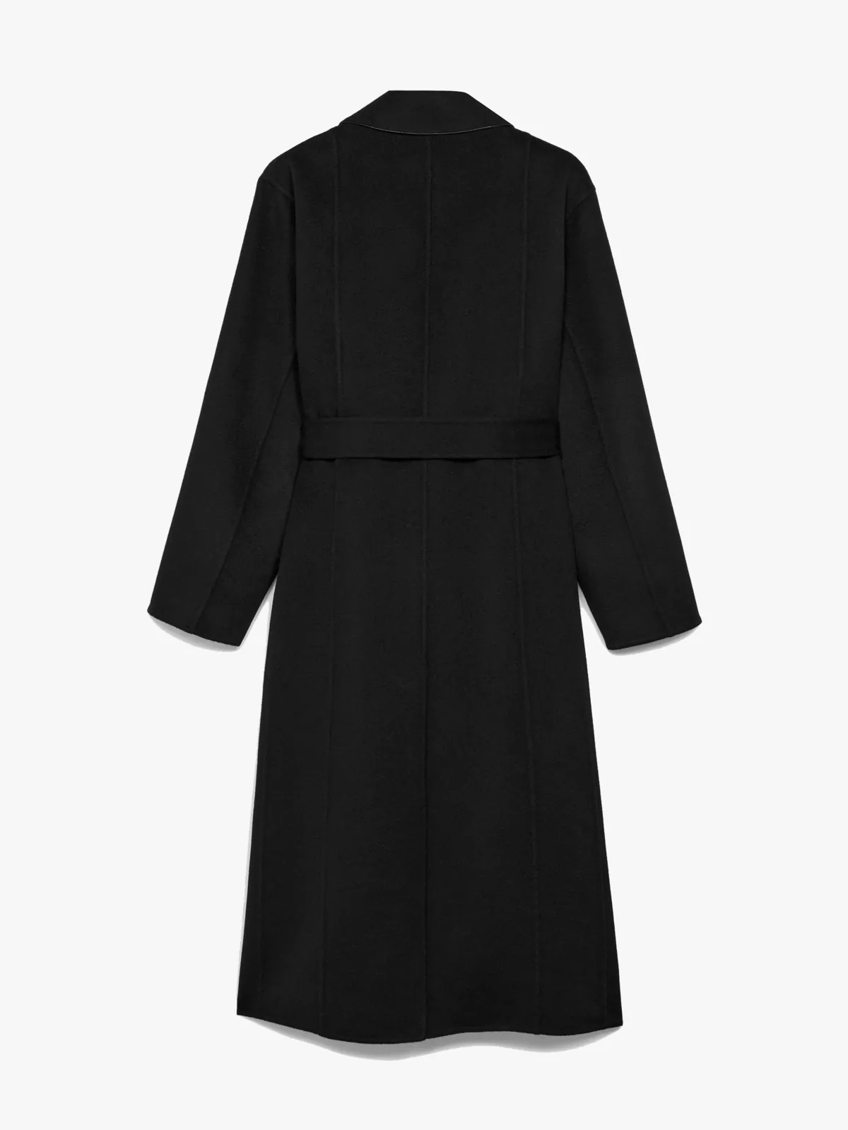 这款大衣在意大利由优质的双面羊绒面料制成。黑色的皮领和敞开的前襟衬托出完美的层次感,两边的侧开叉形成优雅的褶皱。它的特点是黑色皮革补丁口袋,配以腰带收紧整体装束。