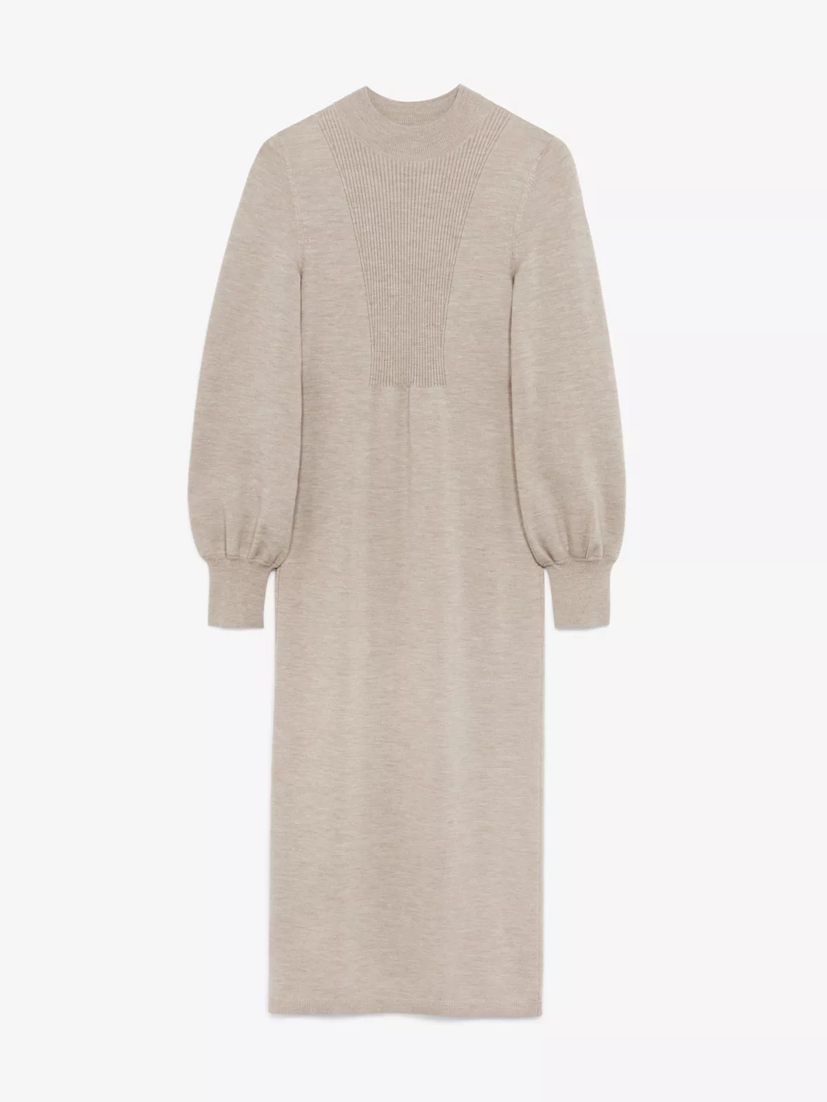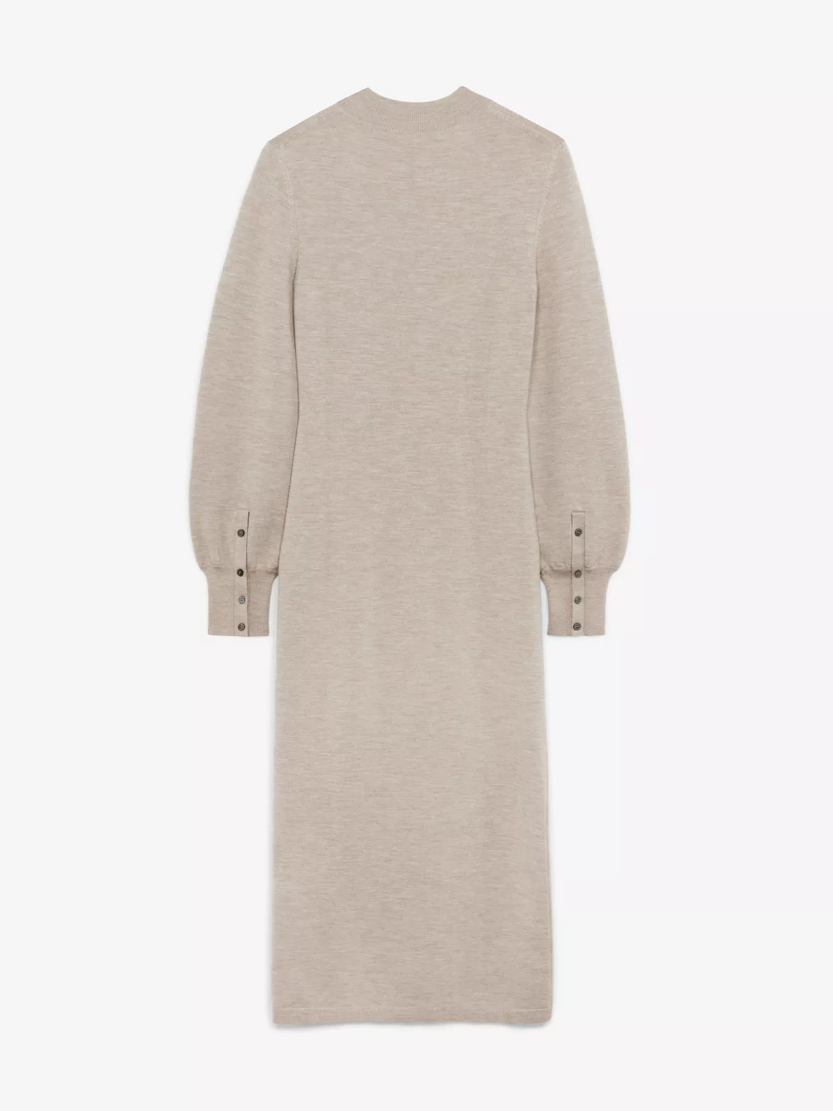 -浅褐色 -62%羊毛; 27%桑蚕丝; 9%尼龙; 2%弹性纤维 -铅笔连身裙 -小高领 -泡泡袖 -意大利制造