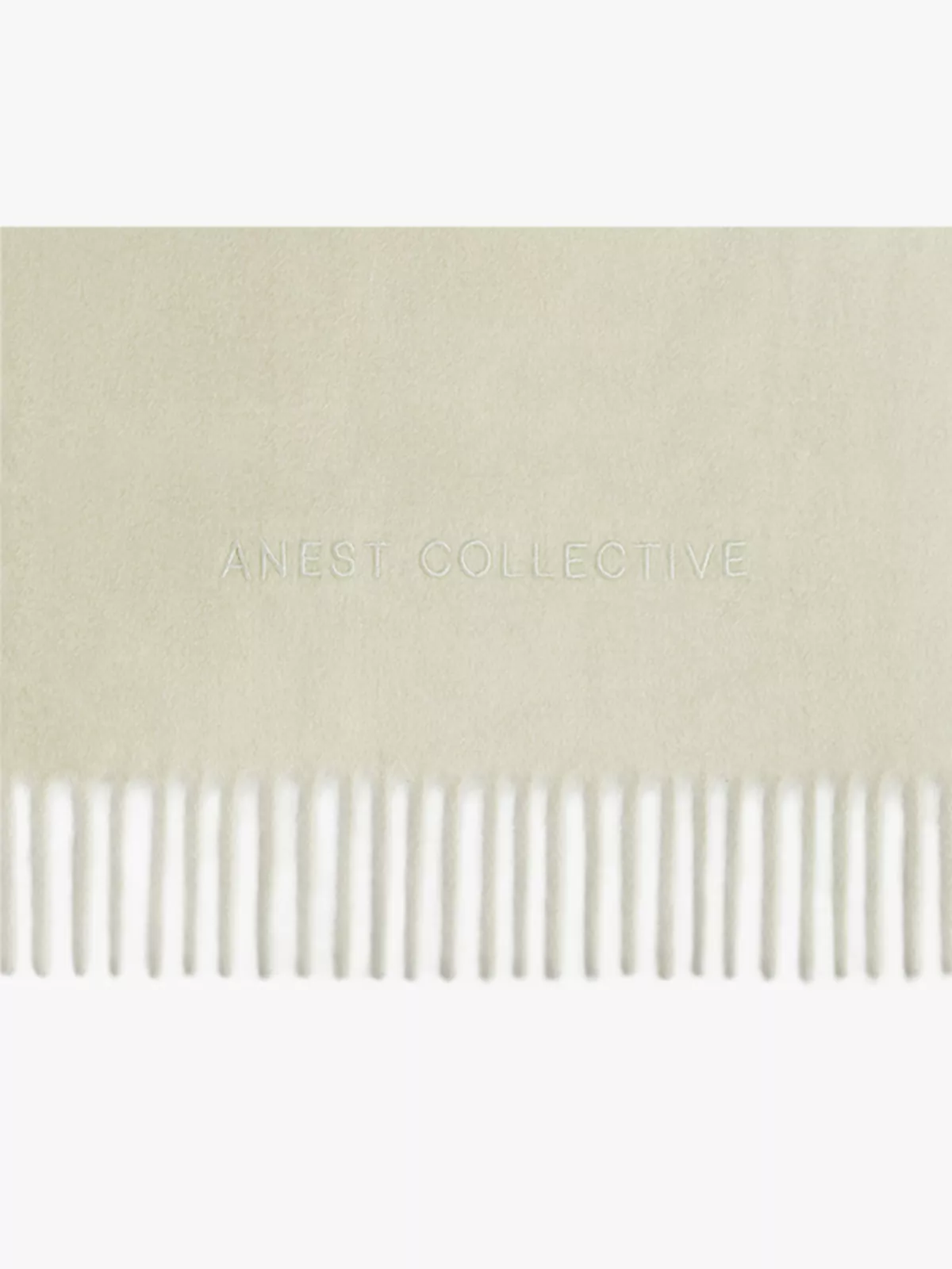 -乳白色 -100%羊绒 -同色系ANEST COLLECTIVE品牌Logo -底部流苏设计 -意大利制造