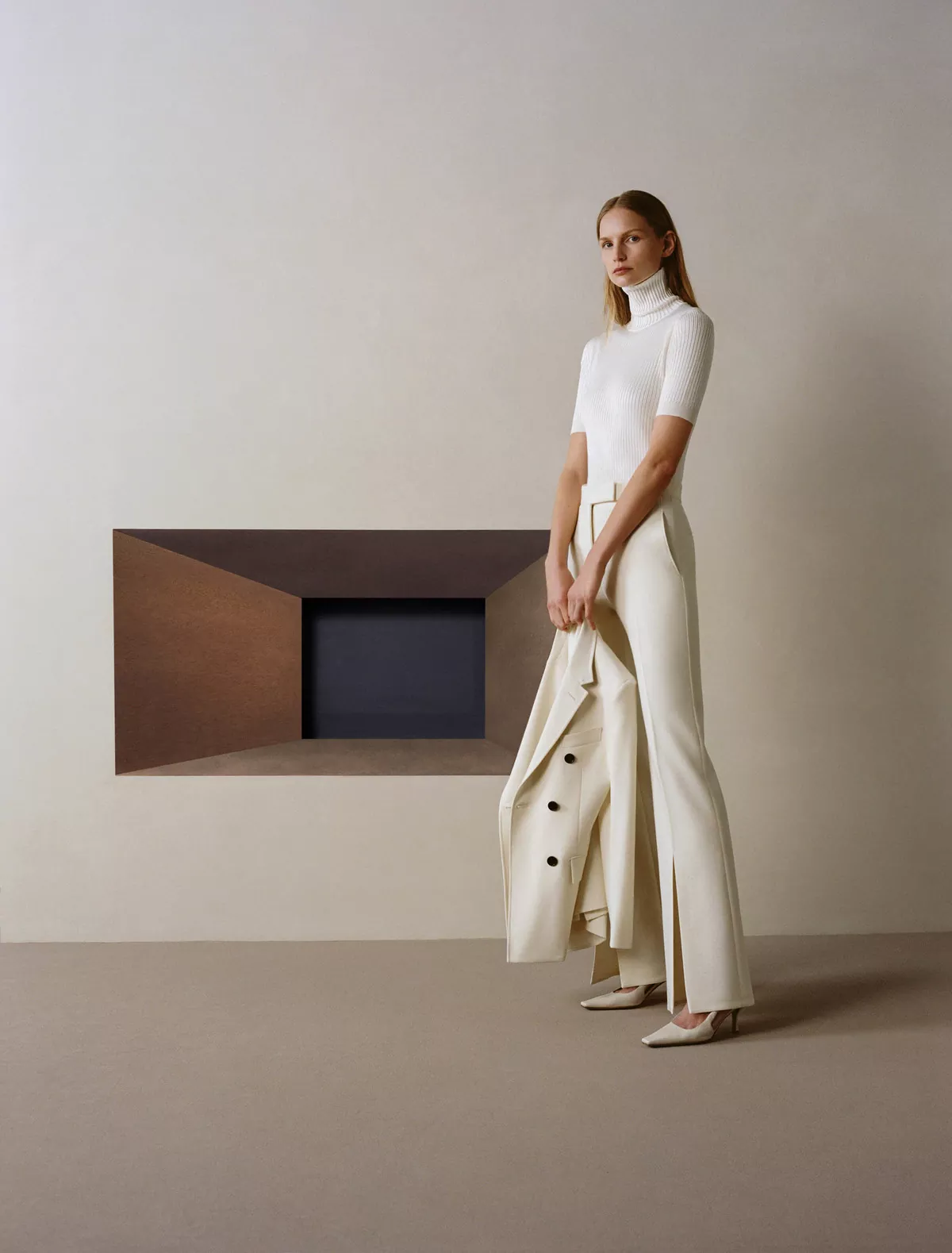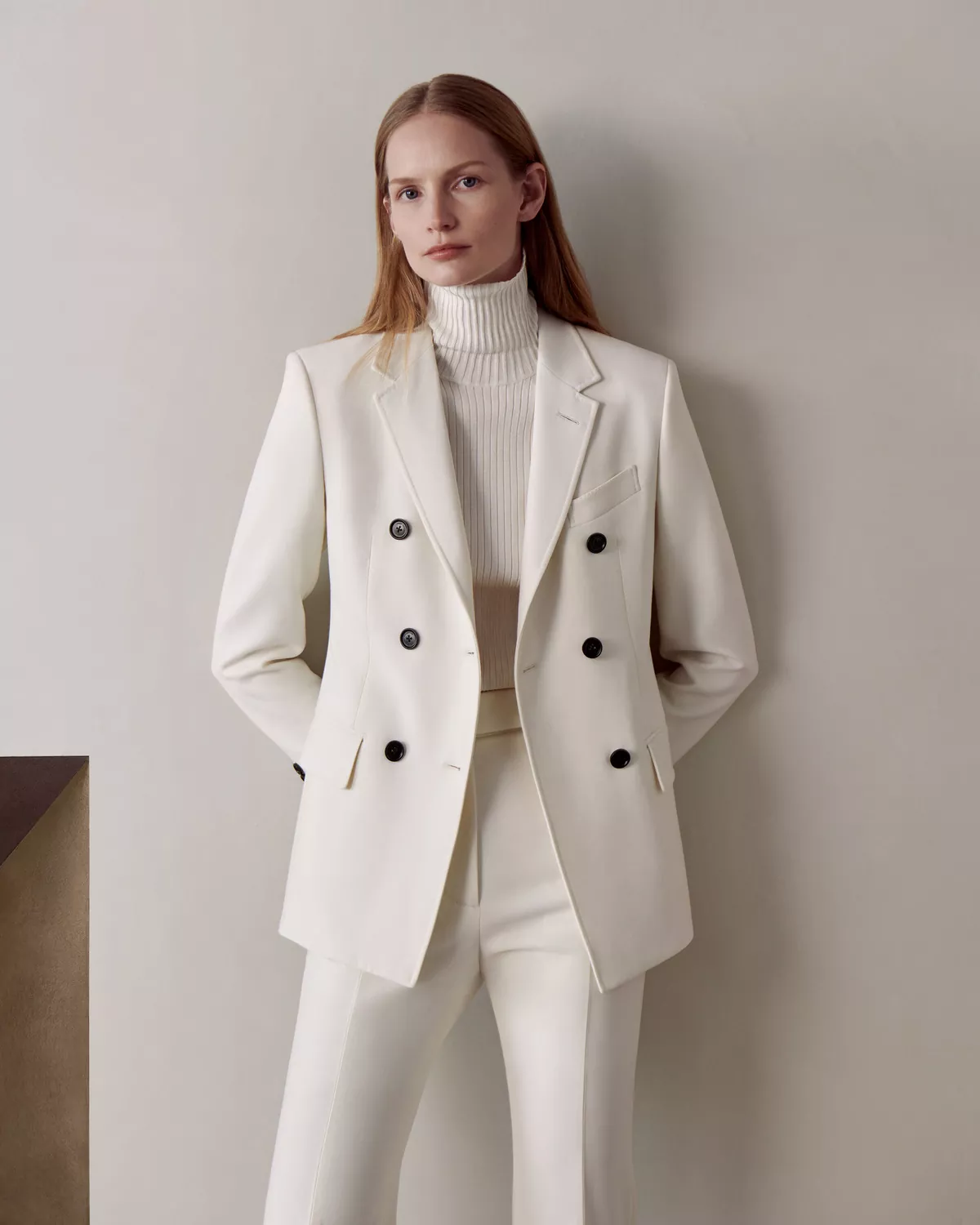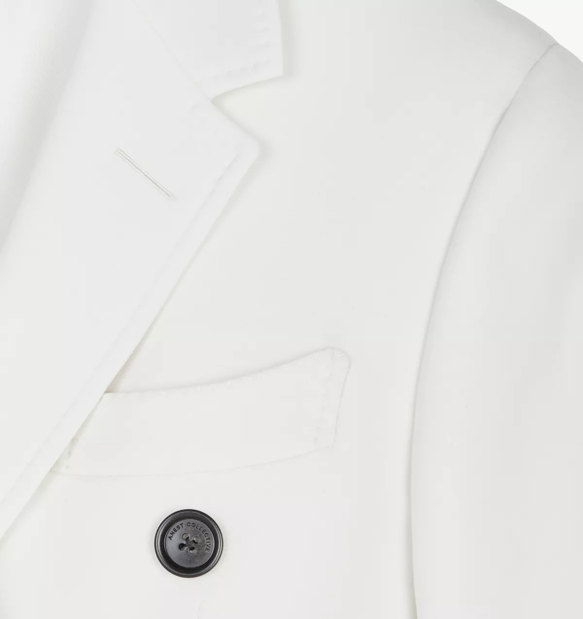 -象牙白 -面料:93%羊毛;4%弹性纤维;3%锦纶 -里料:100%铜氨纤维 -全毛衬结构 -ANEST COLLECTIVE LOGO 客制化牛角扣 -Travetta 手工缝制品牌标签 -意大利制造