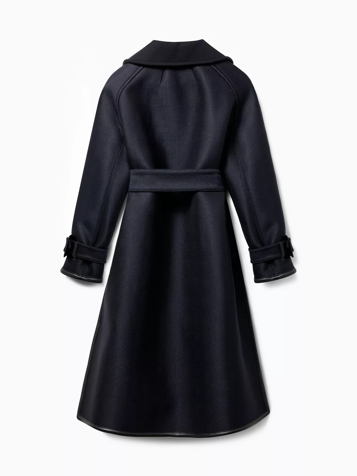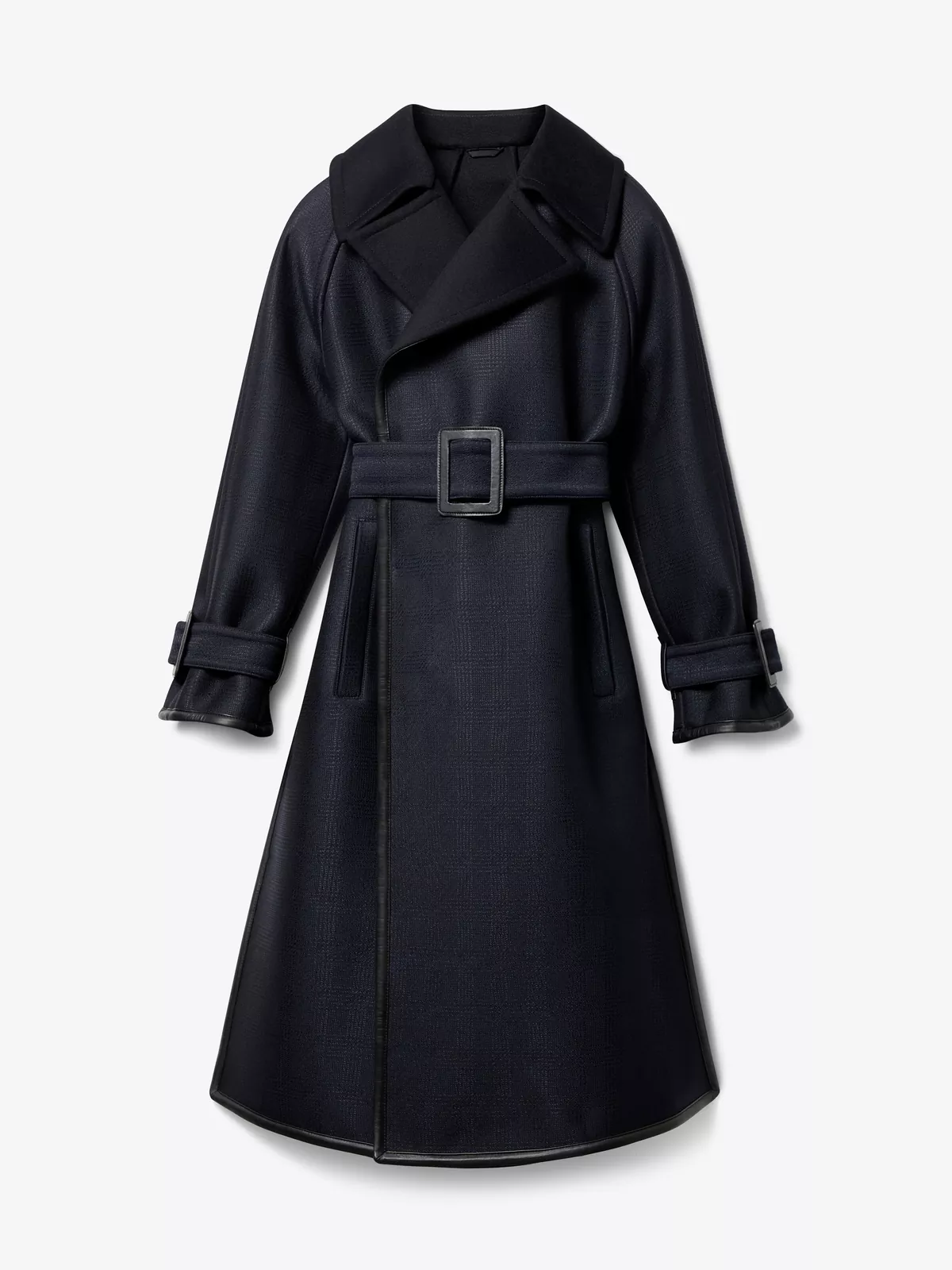 这款风衣采用双面羊毛混纺面料在意大利精心制作而成,配有可拆卸的款型腰带,隐藏式纽扣,皮革袖口装饰和低调的侧边口袋。