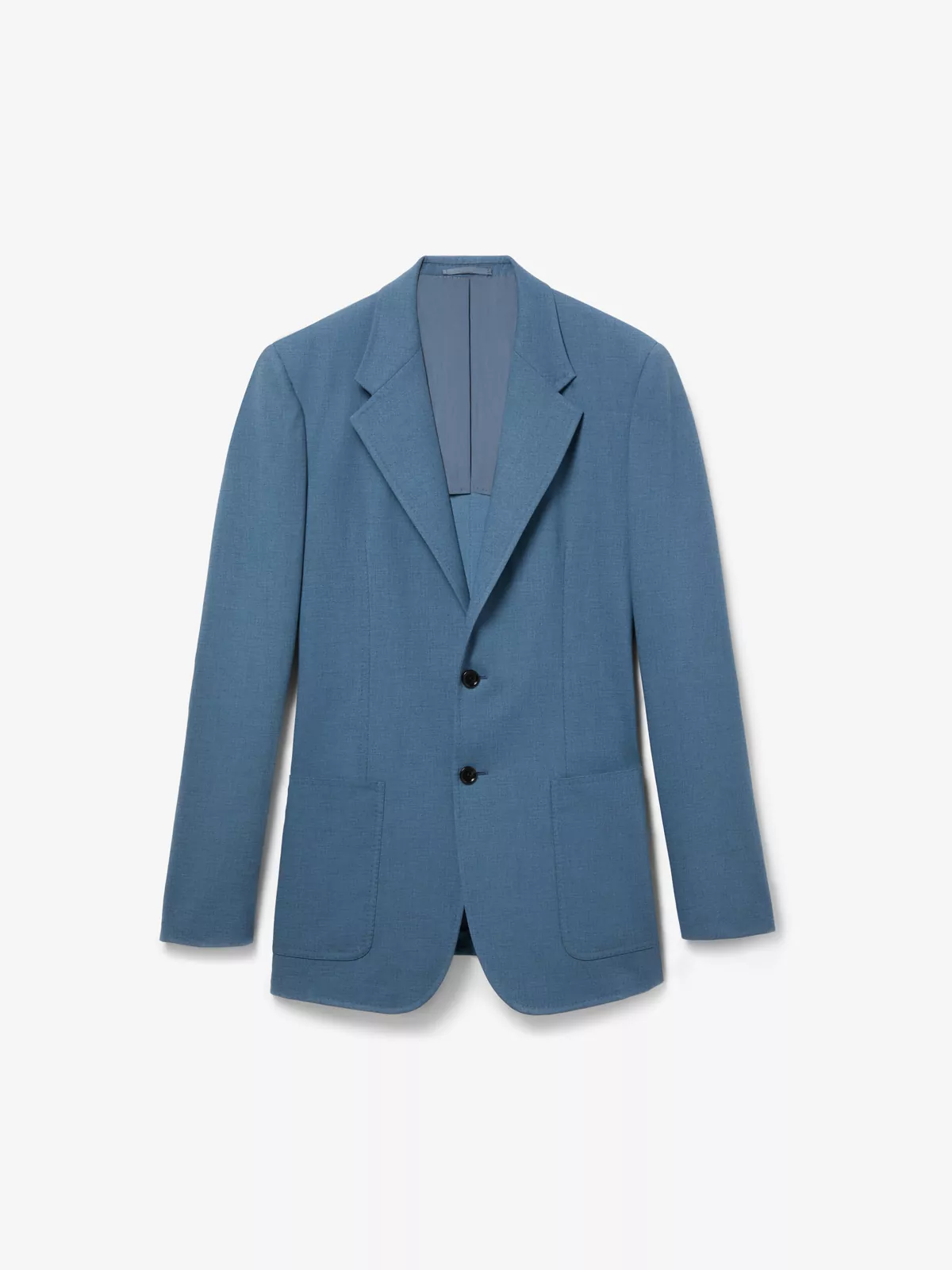 -90%棉;10%羊绒 -烟雾蓝 -单排扣 -平驳领 -ANEST Logo客制化牛角扣 -意大利制造